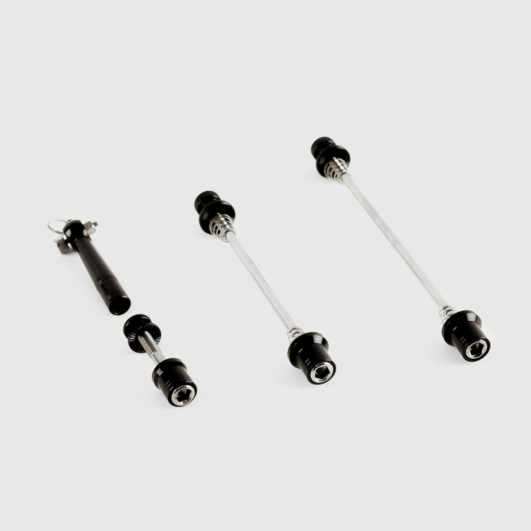 Designed to secure your wheels and saddle by locking them onto your bicycle frame, these components are a great way to protect your bike and save the hassle of using a cable or multiple locks every time you park.