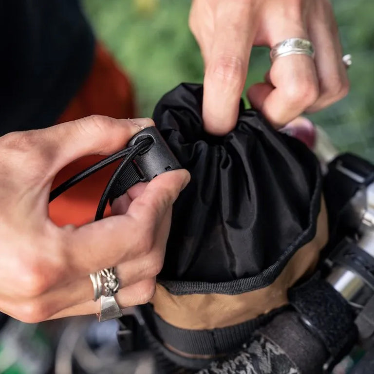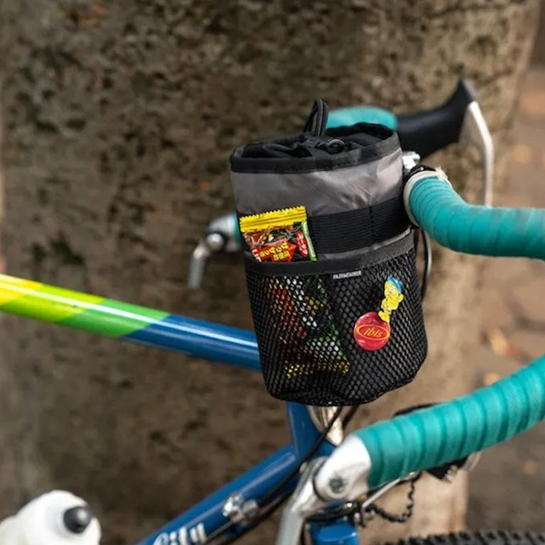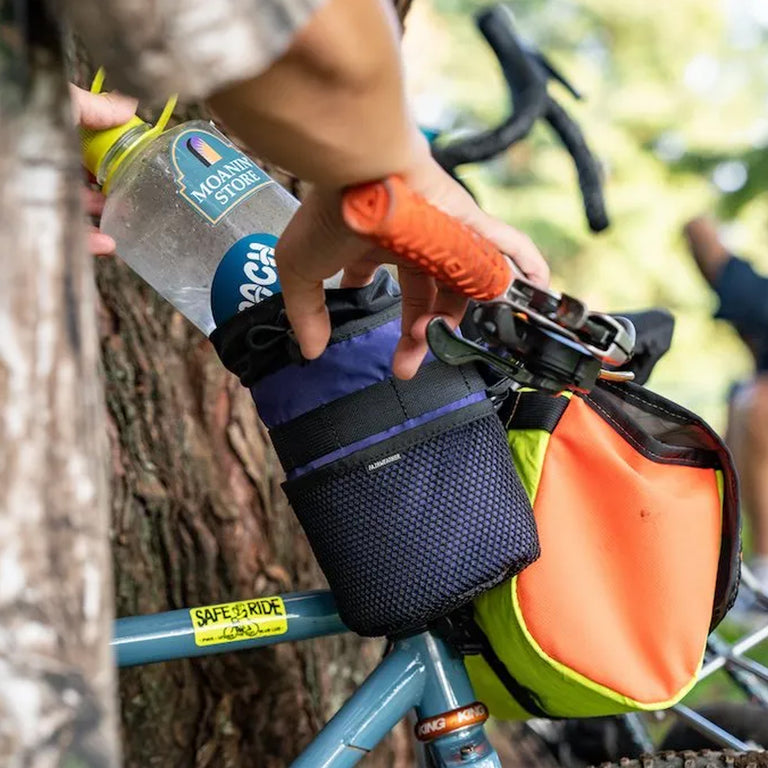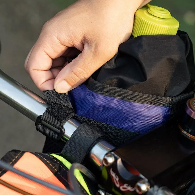 A versatile, easy-access handlebar bag—perfect for storing items like snacks, a camera, or even a 1L Nalgene bottle.