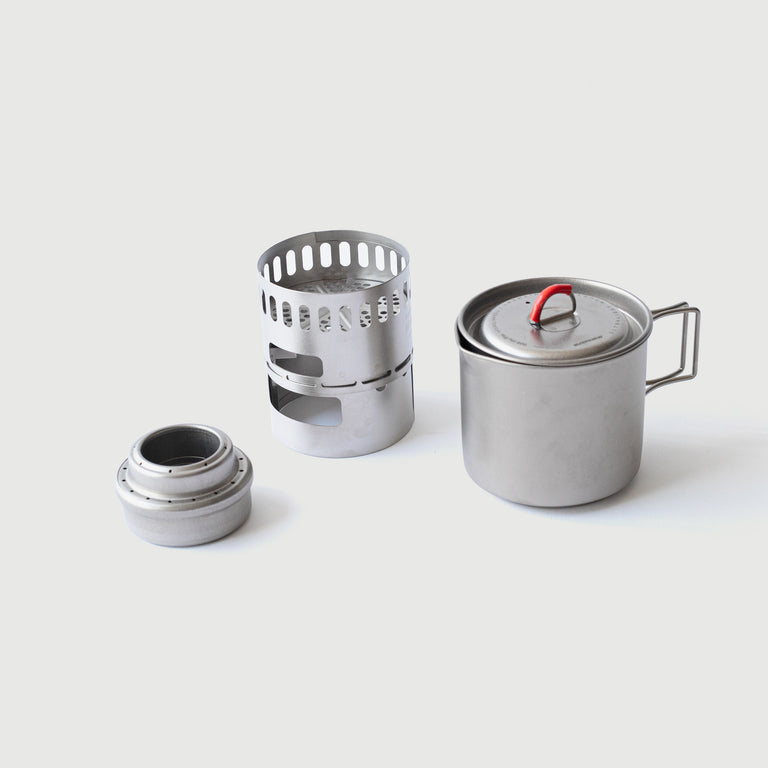 This Ti Stove DX Set is designed for boiling water and is easy to fuel.