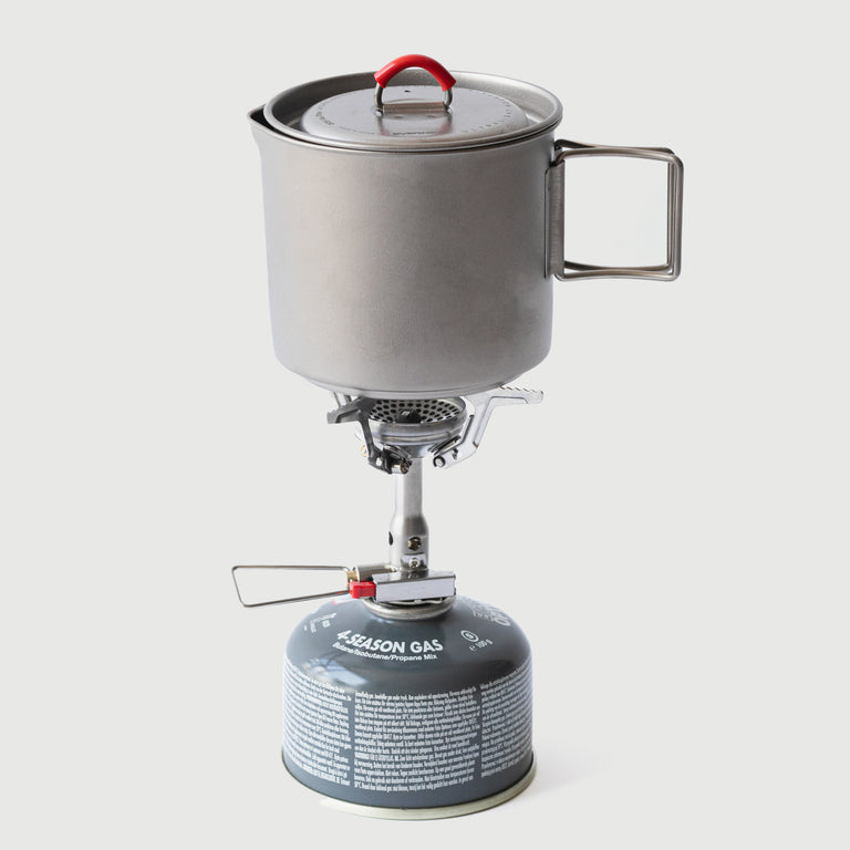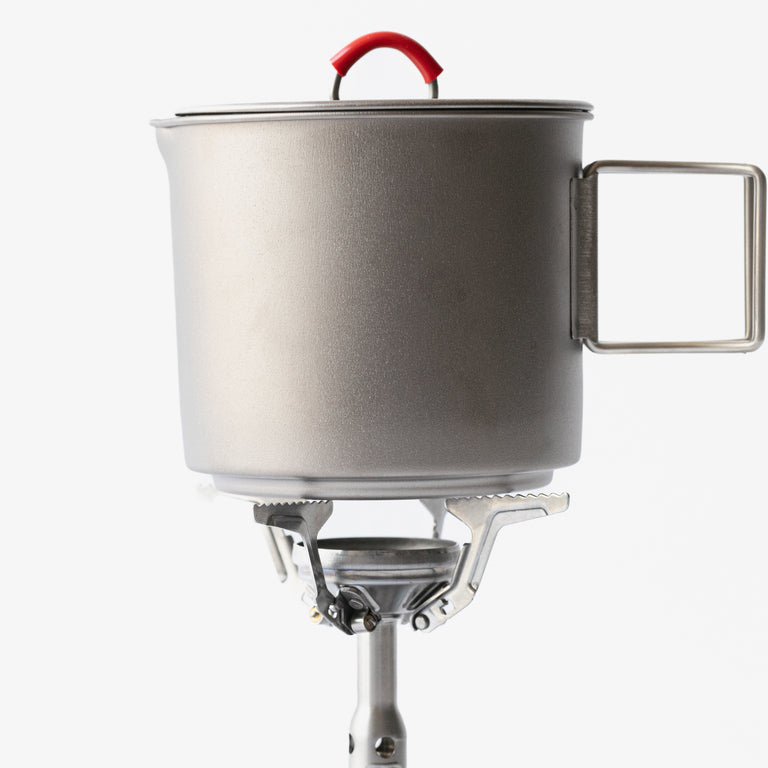 The Ti Mug Pot 500 Stove Set combines a lightweight stove and cookset into one convenient package.