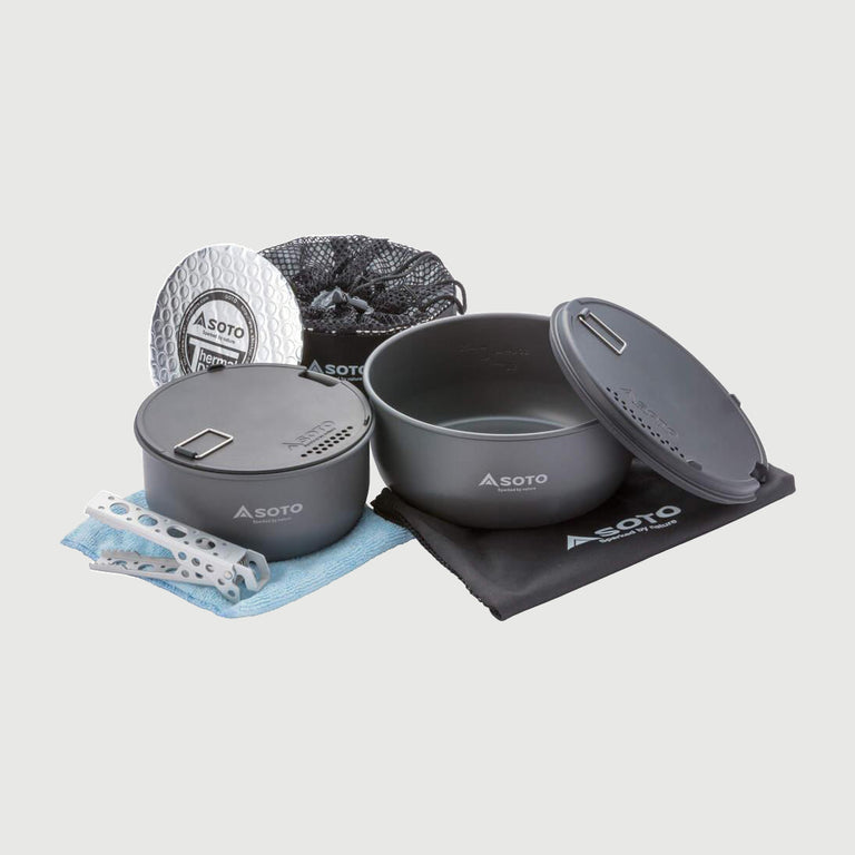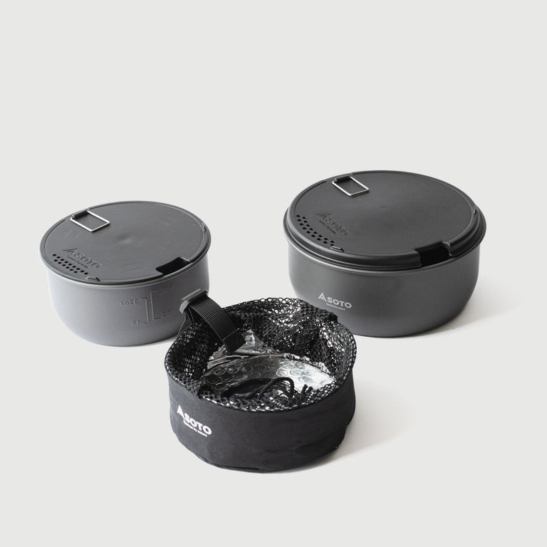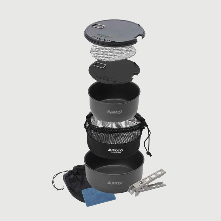 The Navigator Cook Set is a lightweight and compact cookware option suitable for both solo and group use.