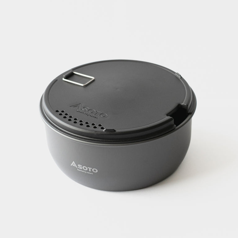 Versatile pot with spout for easy use with noodles and rice, suitable for delicate pours, lightweight and compact for hiking.
