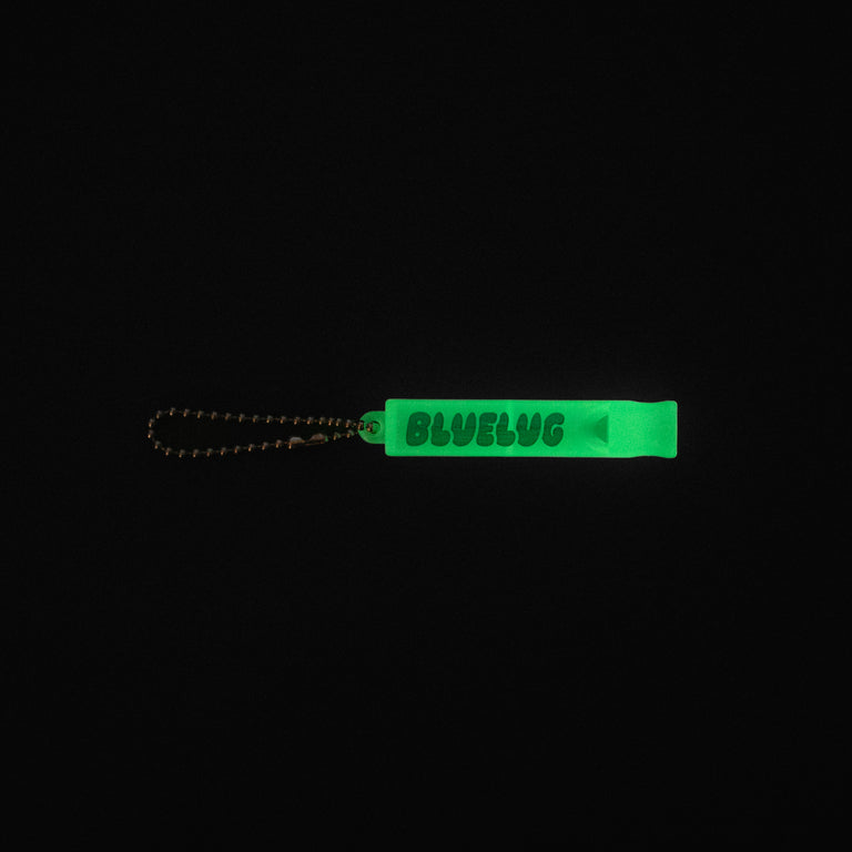 A glow-in-the-dark whistle for outdoor adventures, perfect for signalling and easy to spot at night.