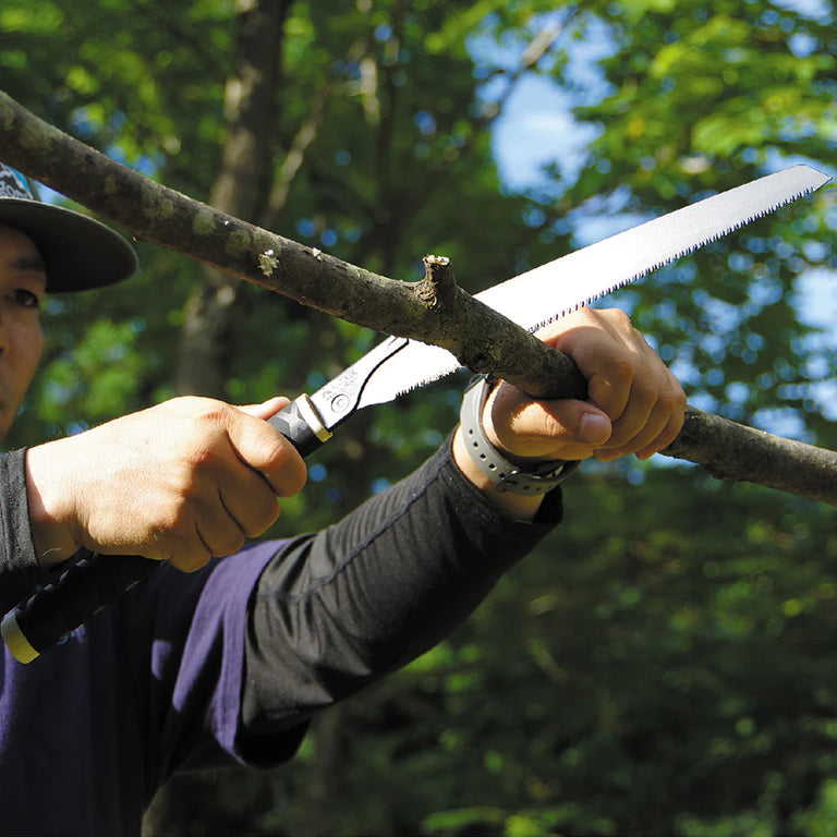 This ultra-light 180g Folding Saw with a 240mm blade easily cuts thick firewood and branches, offering better leverage for above-eye-level cuts.