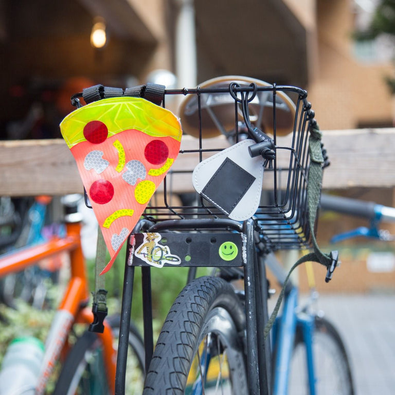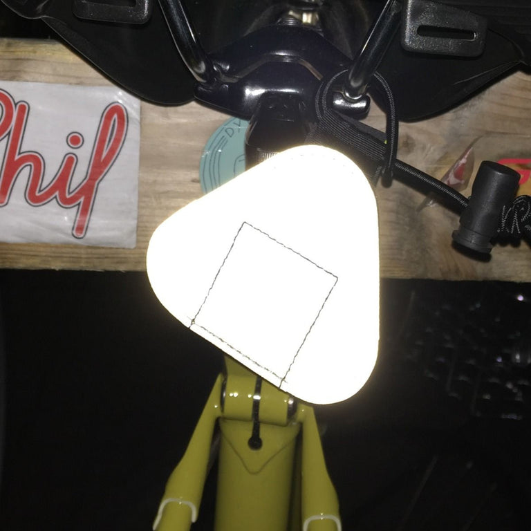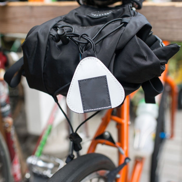 A fun, rice ball-shaped reflector with strong reflection, easily attachable to saddle rails or bags for a cute, functional bike accessory.