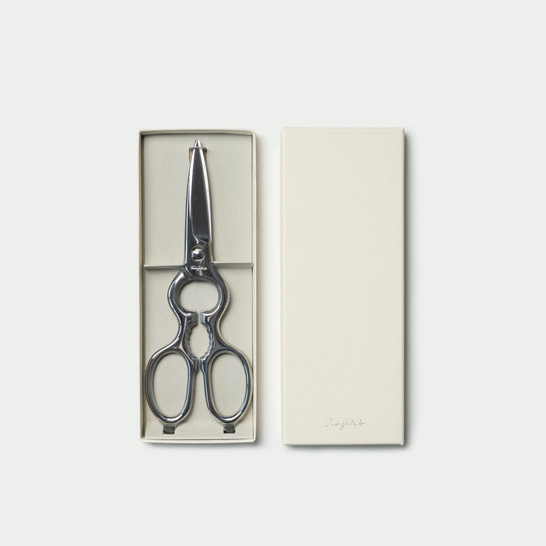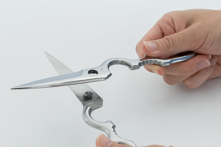 These stainless-steel Tajika Kitchen Scissors have a bottle and can opener function. The scissors can be separated, making them easier to clean.
