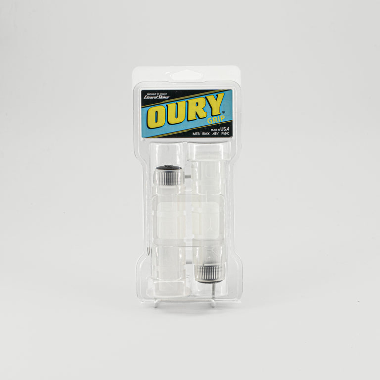 Oury's classic Mountain Grips with revival clear colour produced by Blue Lug.