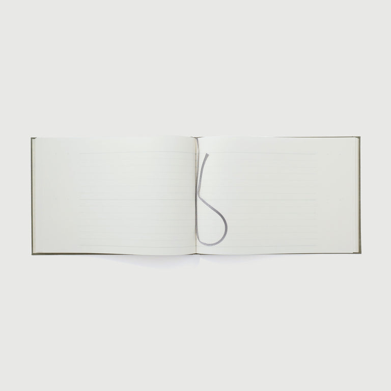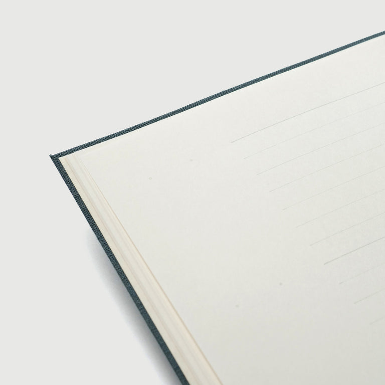A very simple, well-made notebook with a linen cover, case bound pages and a foil-stamped spine.