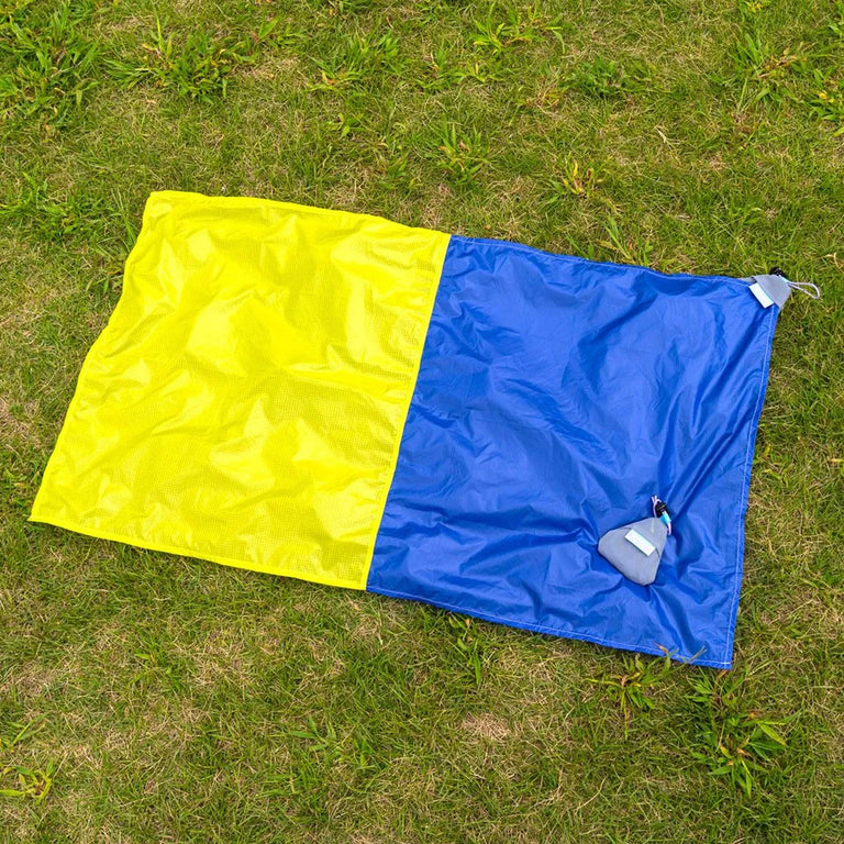 Compact picnic sheet made of lightweight Airlight ripstop nylon.
