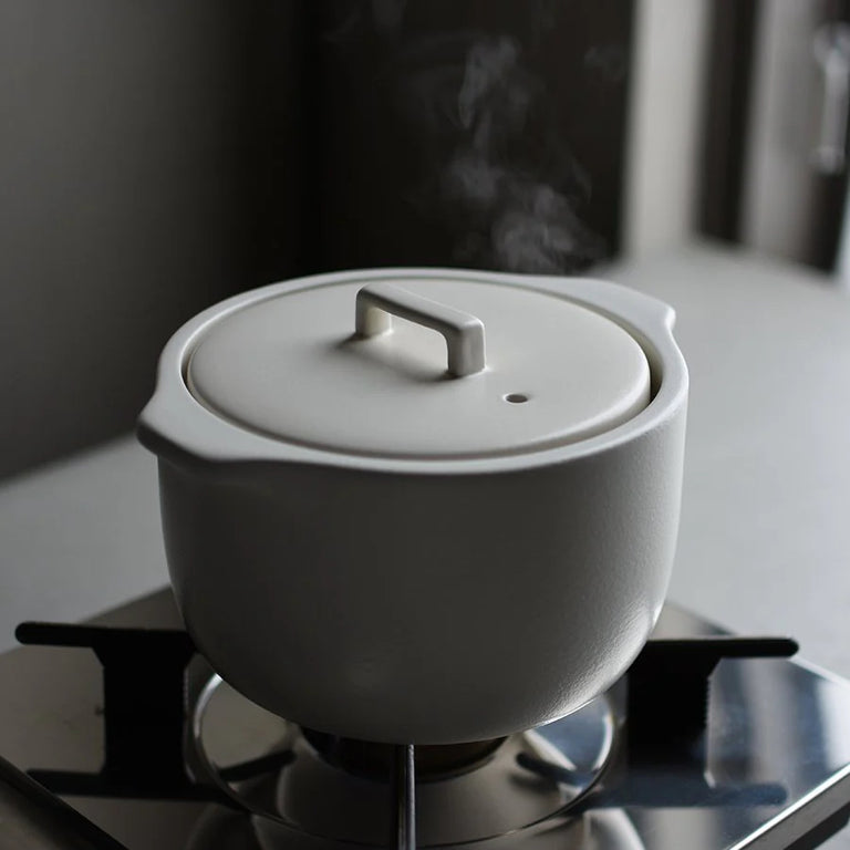Kakomi is designed for use on gas stoves. The rounded shape of the pot creates convection for each grain of rice to be cooked evenly.