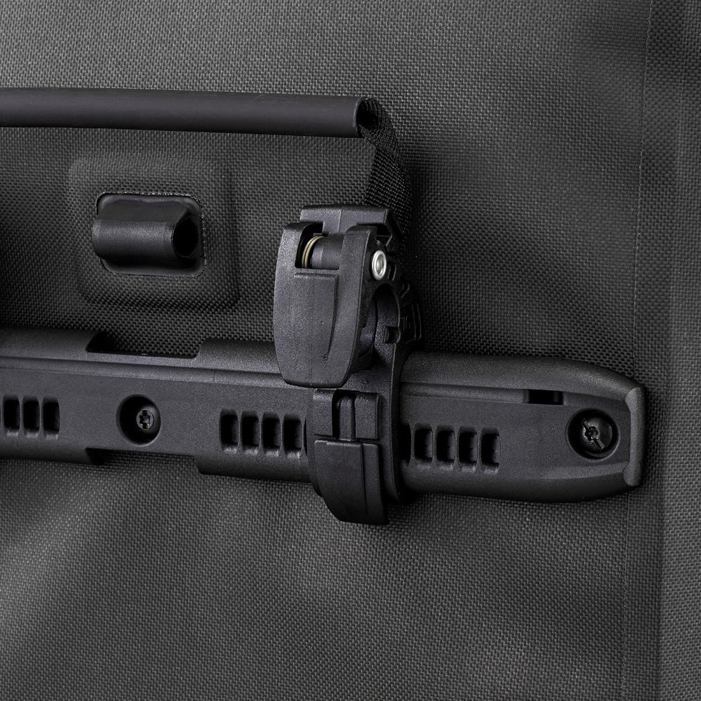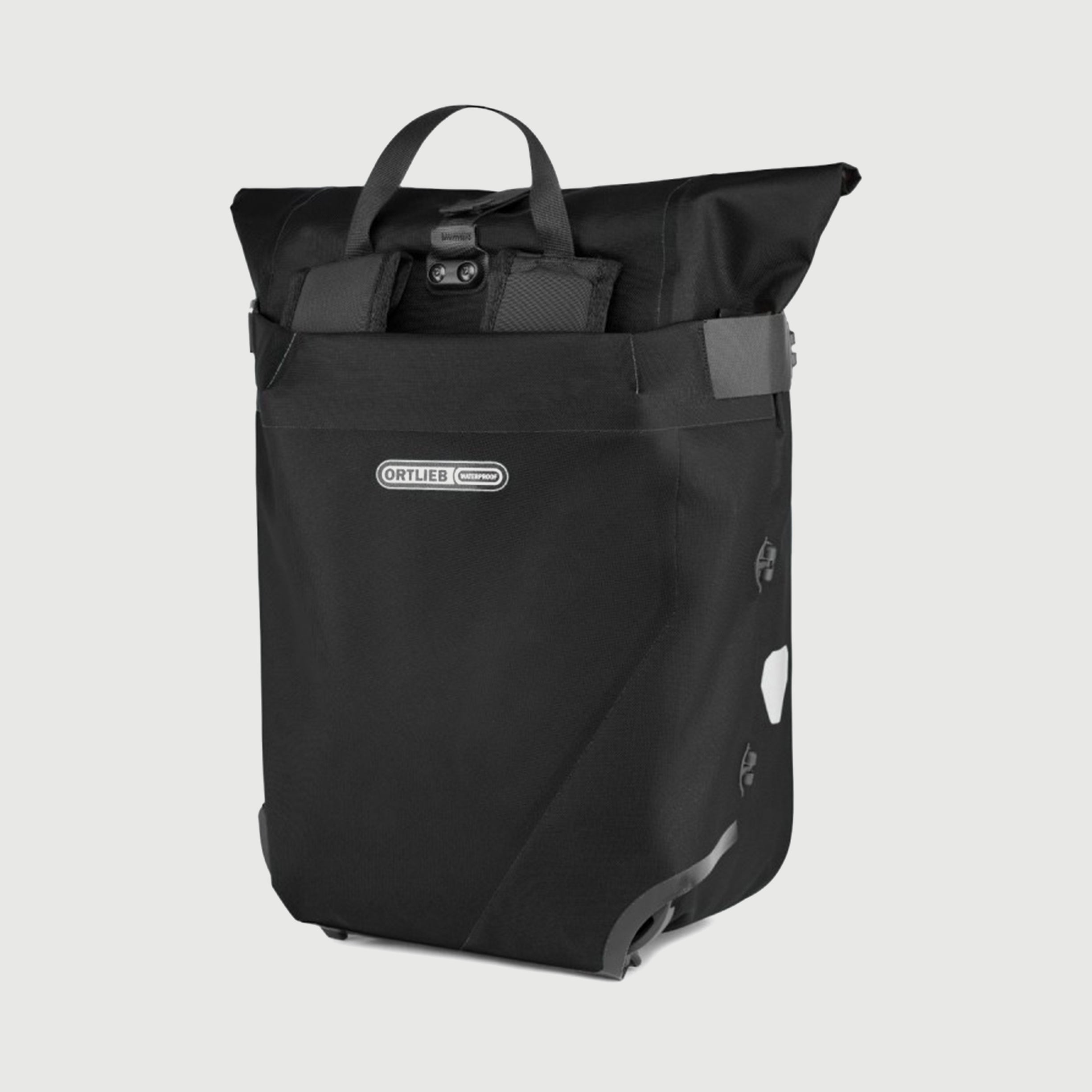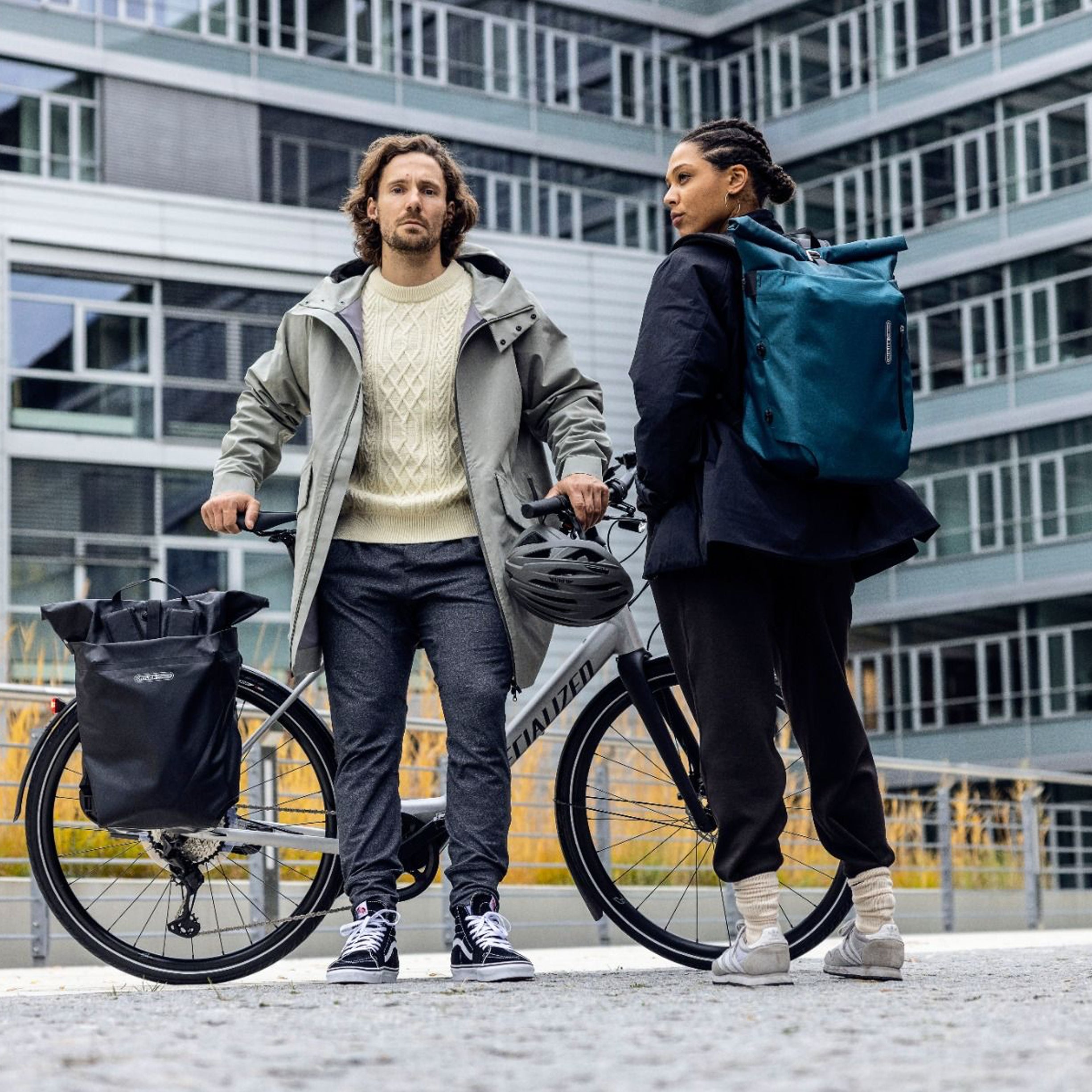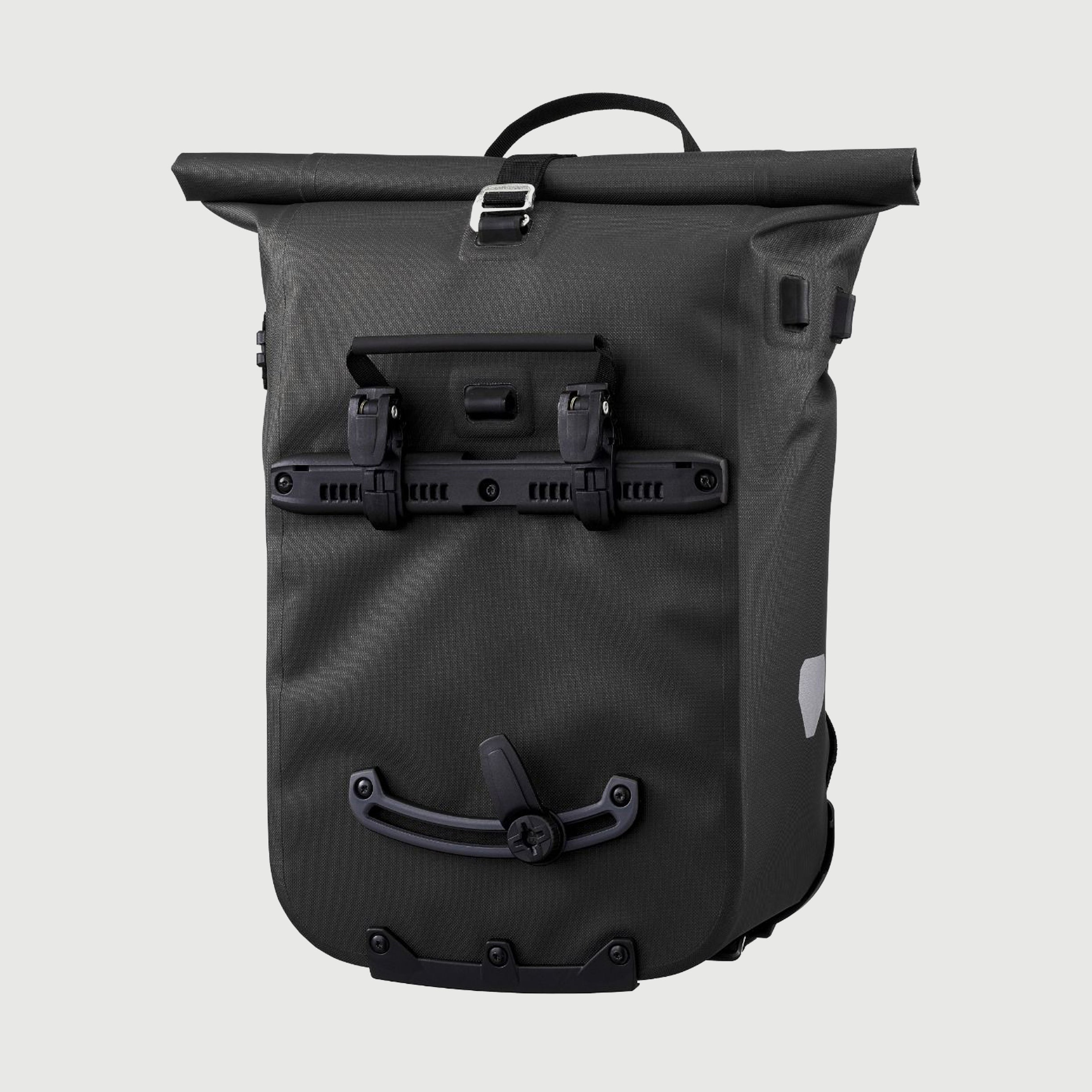 The Vario is a versatile backpack and pannier in one. It has a Quick-Lock fastening system on one side and a comfortable, ergonomic back carrying system on the other. This smart hybrid can be easily transformed by flipping over the flap. The flap also has a pocket for small items like a smartphone, keys or wallet. The Vario is waterproof and sustainably produced.