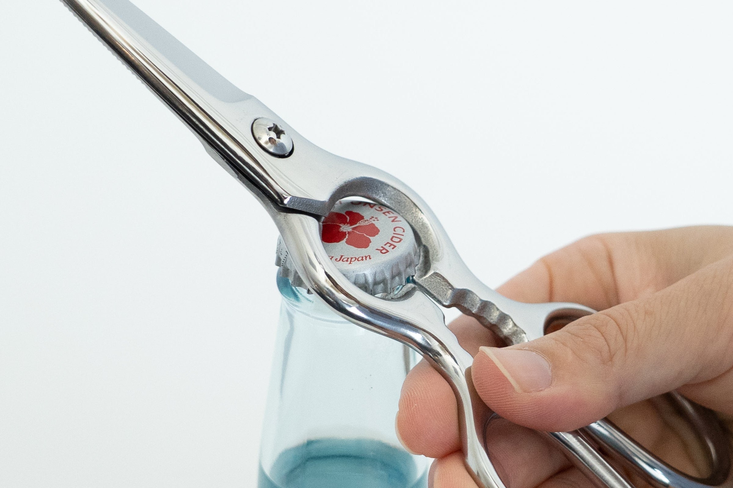 These stainless-steel Tajika Kitchen Scissors have a bottle and can opener function. The scissors can be separated, making them easier to clean.
