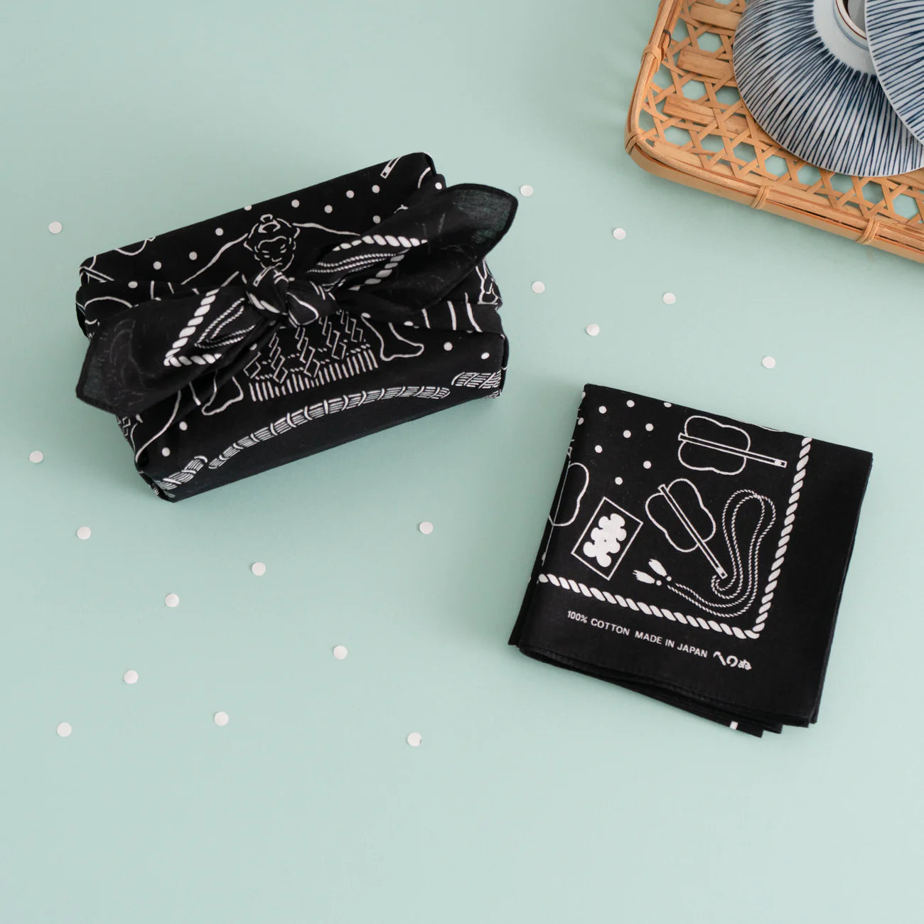 A timeless, versatile, bandana blending western tradition with Japanese textile artistry,. Featuring a classic pattern and natural motifs rooted in WAGARA (Japanese patterns) the bandanna is dyed by hand printing with designs derived from the four seasons, nature, and culture of Japan. Each design in this collection tells a story: