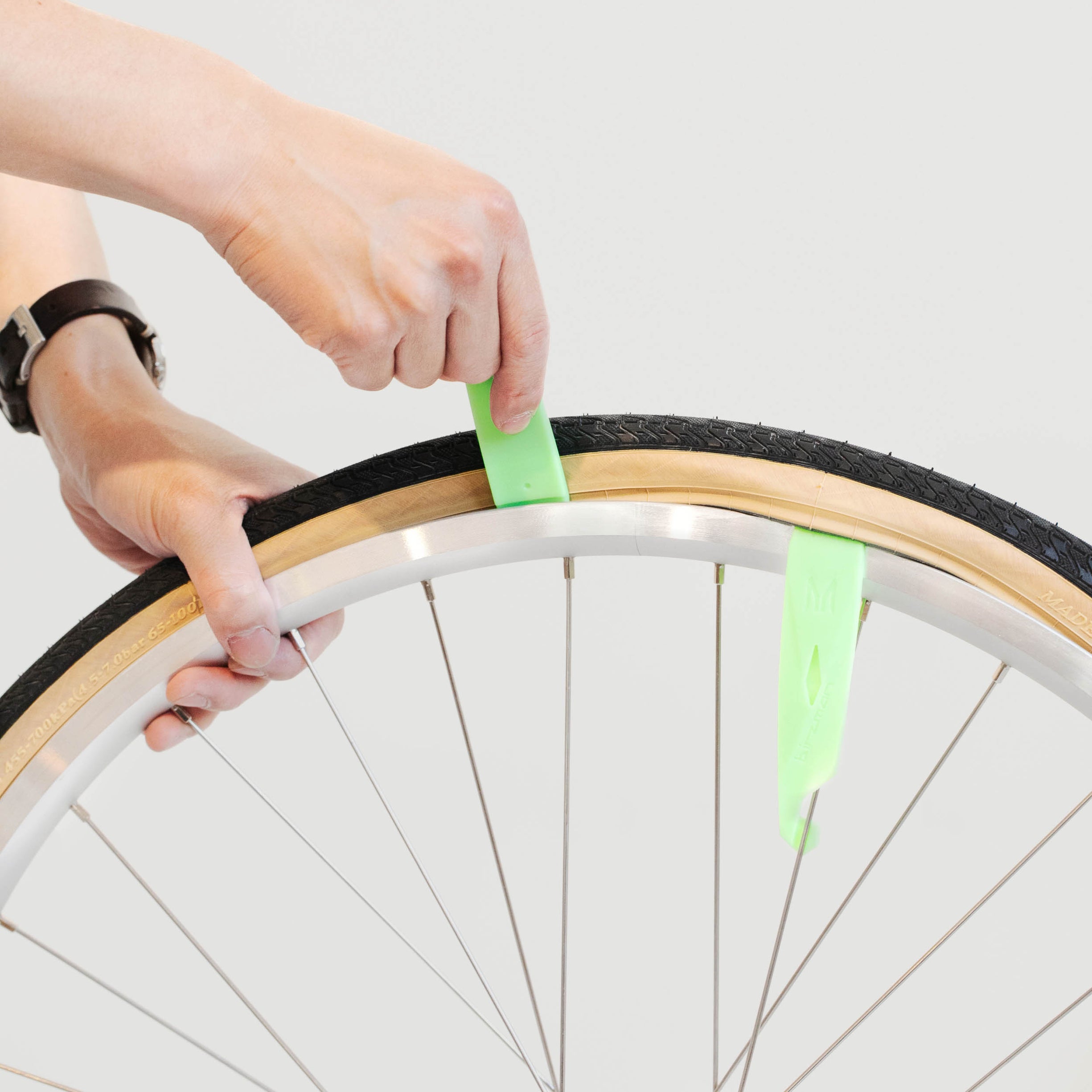The best tyre levers and our go-to in the tokyobike workshop. The Bizman Tyre Lever Set make removing and installing even the toughest tyres light work. The set consists of 3 levers and are integrated with an additional air release function to the back.