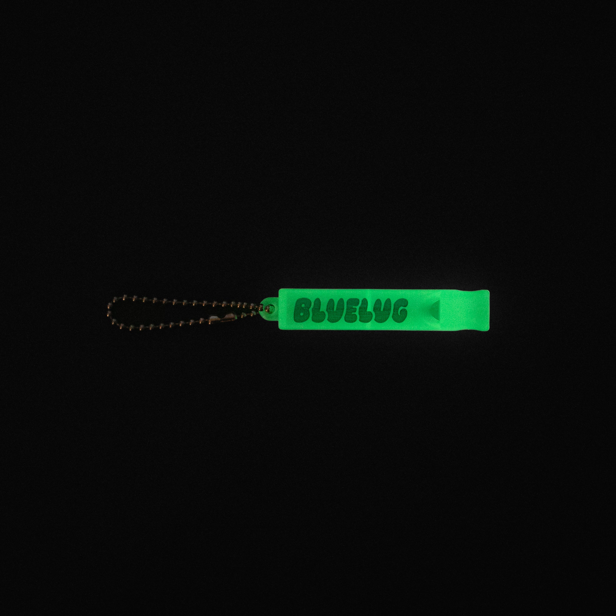 A glow-in-the-dark whistle for outdoor adventures, perfect for signalling and easy to spot at night.