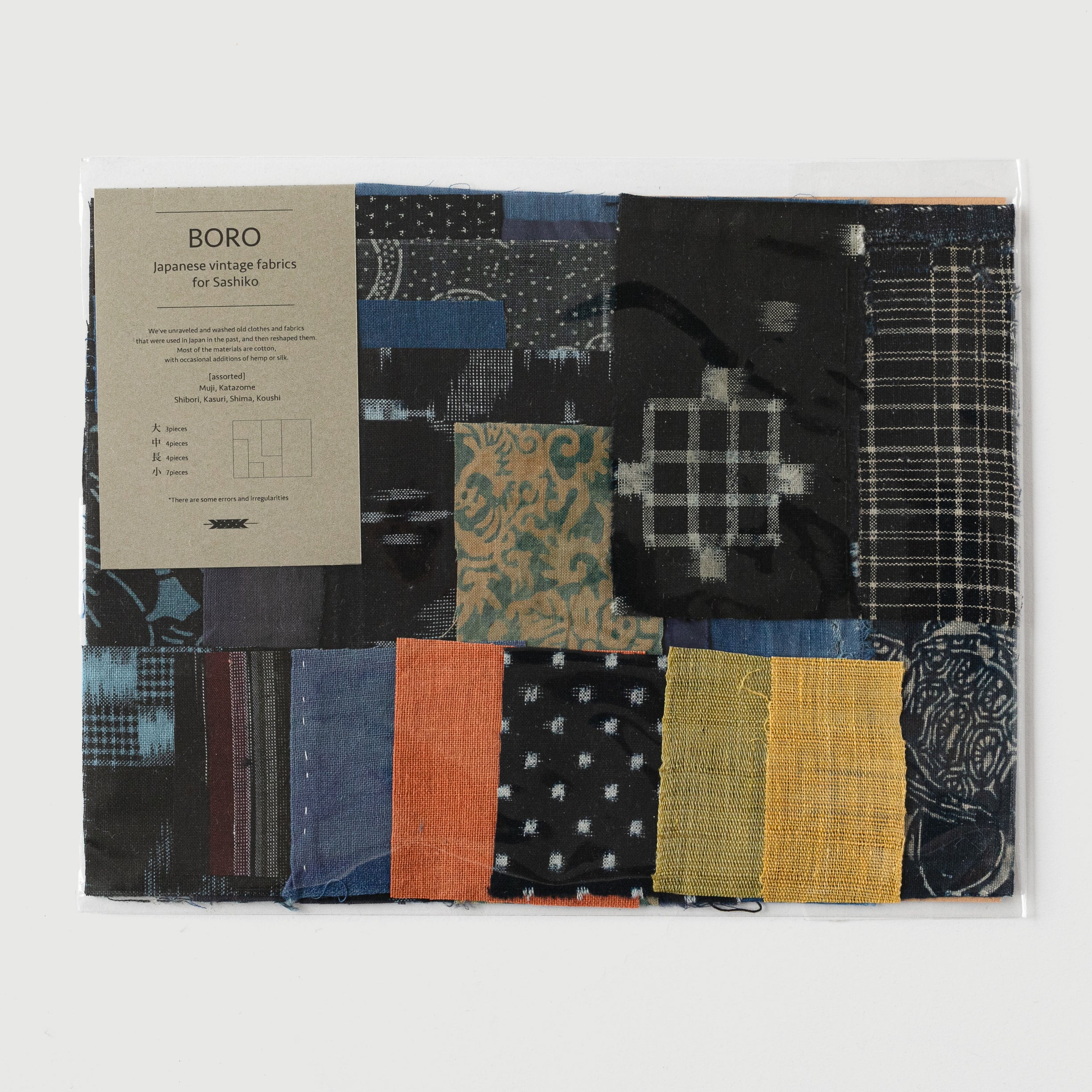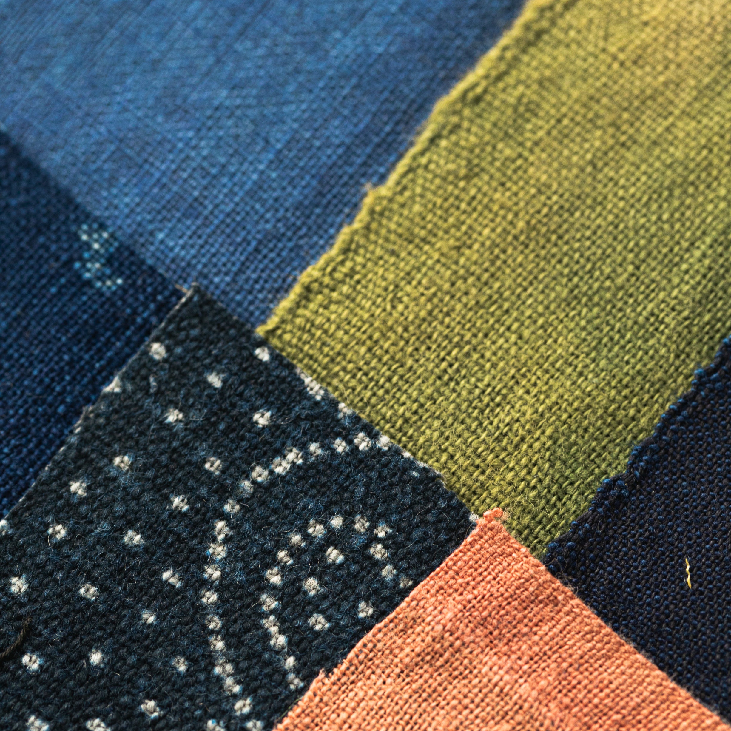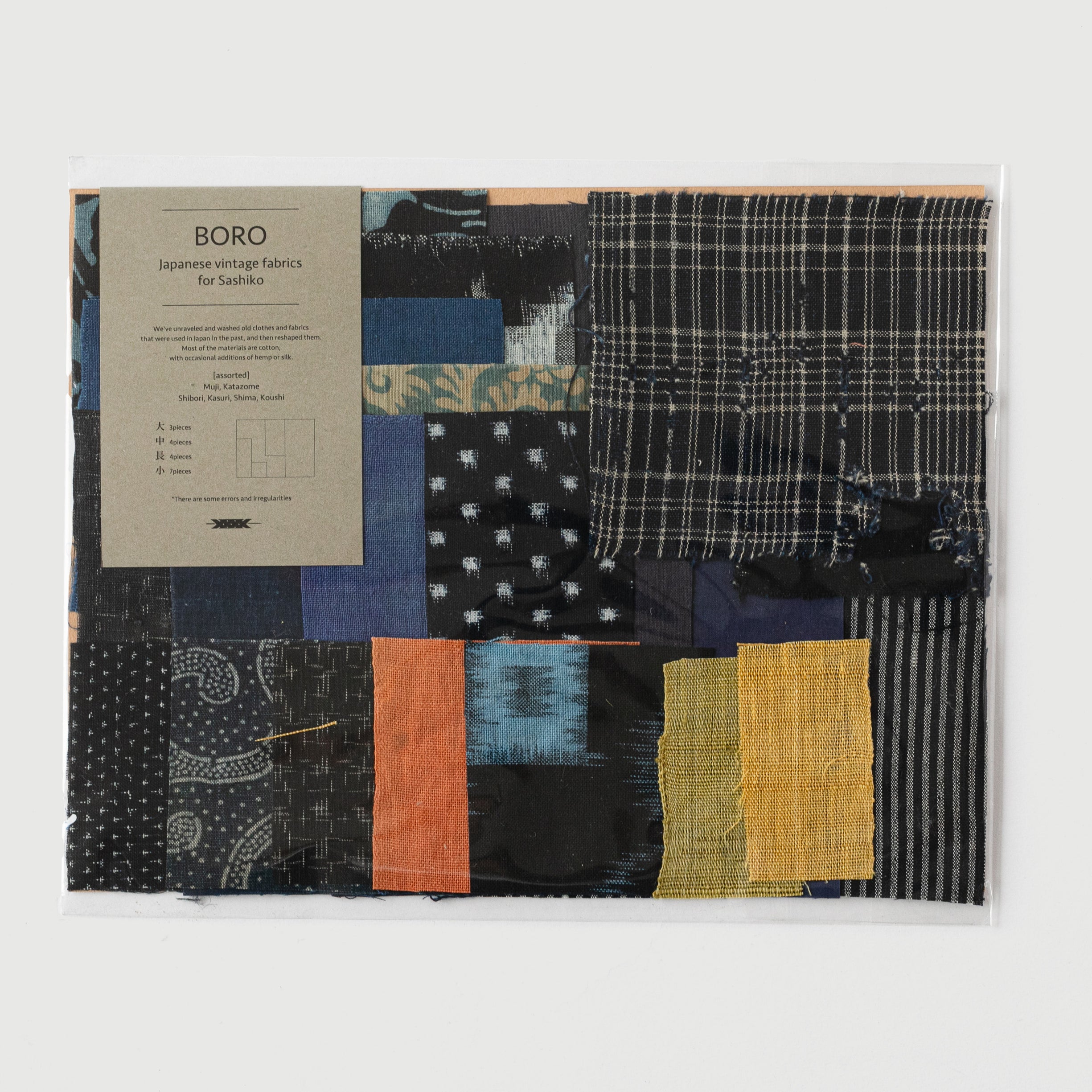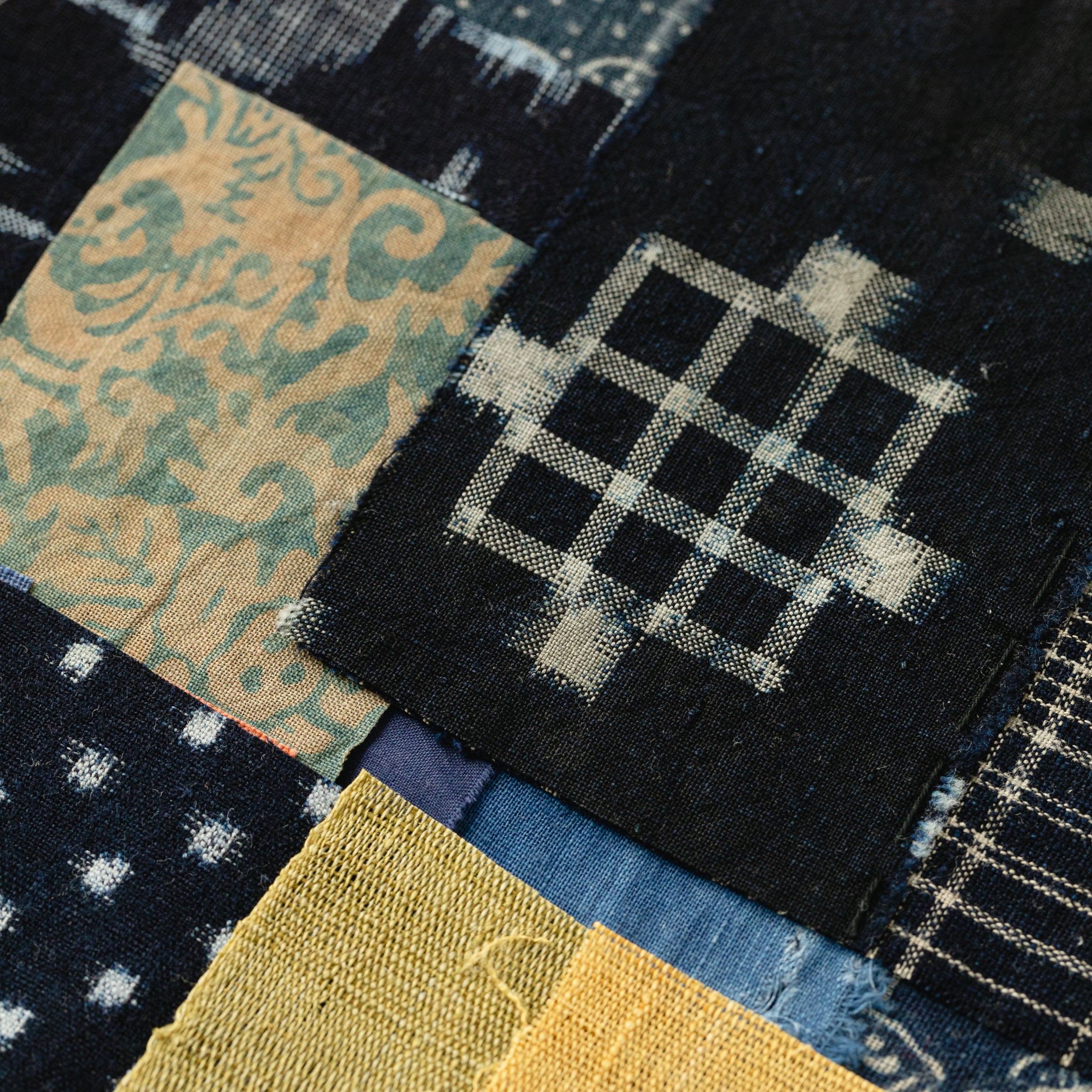 This set of fabric scraps features various sizes of vintage Japanese textiles, each with a unique colour, pattern, and history. Though some pieces may seem too small to use alone, they can be combined or used as patches to create larger, repurposed pieces.