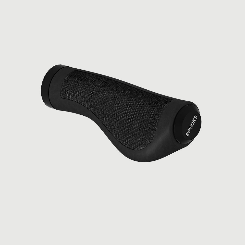 Hardwearing and comfortable, the Brooks Ergonomic Grips are durable and weatherproof rubber handlebar grips with a pleasant touch and feel. The nylon fabric and vertical grooves on the underside provide increased comfort and variable hand positions.