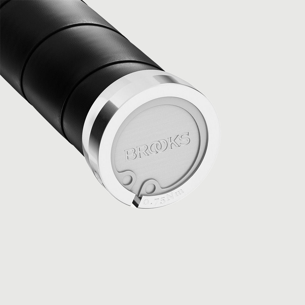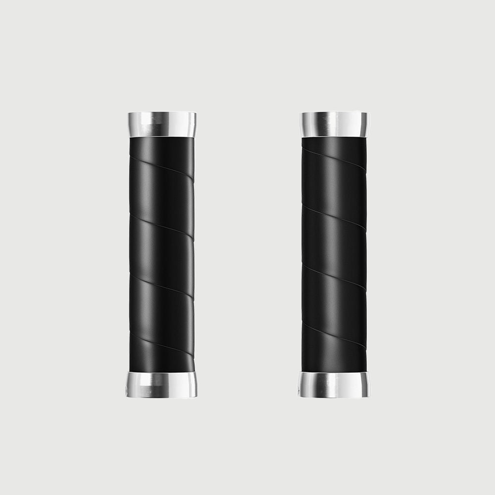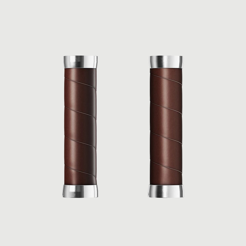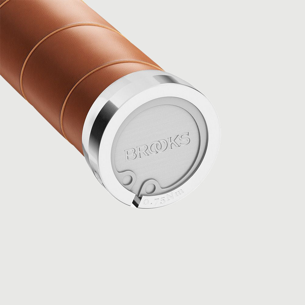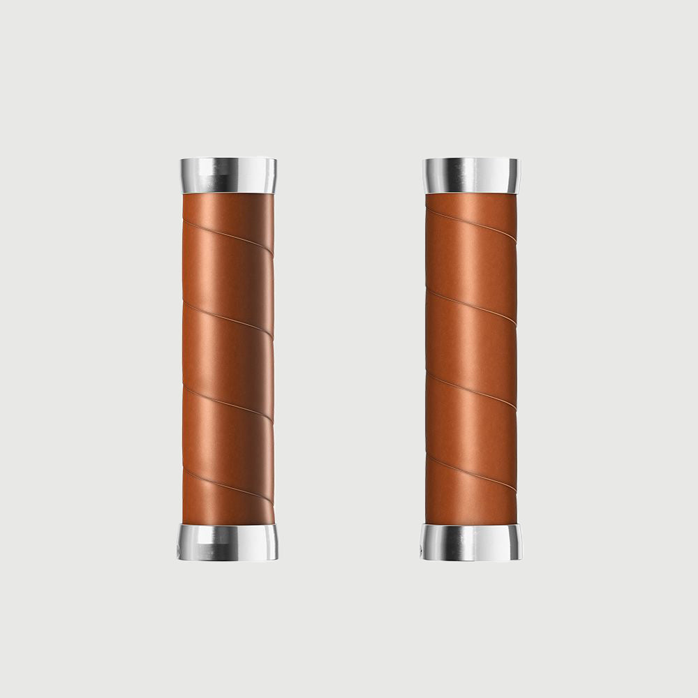 The Brooks England Slender Leather Grips were designed to offer an alternative performance option for the user, while maintaining the standards for sustainability. It features an inner structure of aluminium, around which a vegetable tanned leather tape is wrapped, allowing the user to replace worn parts if necessary.