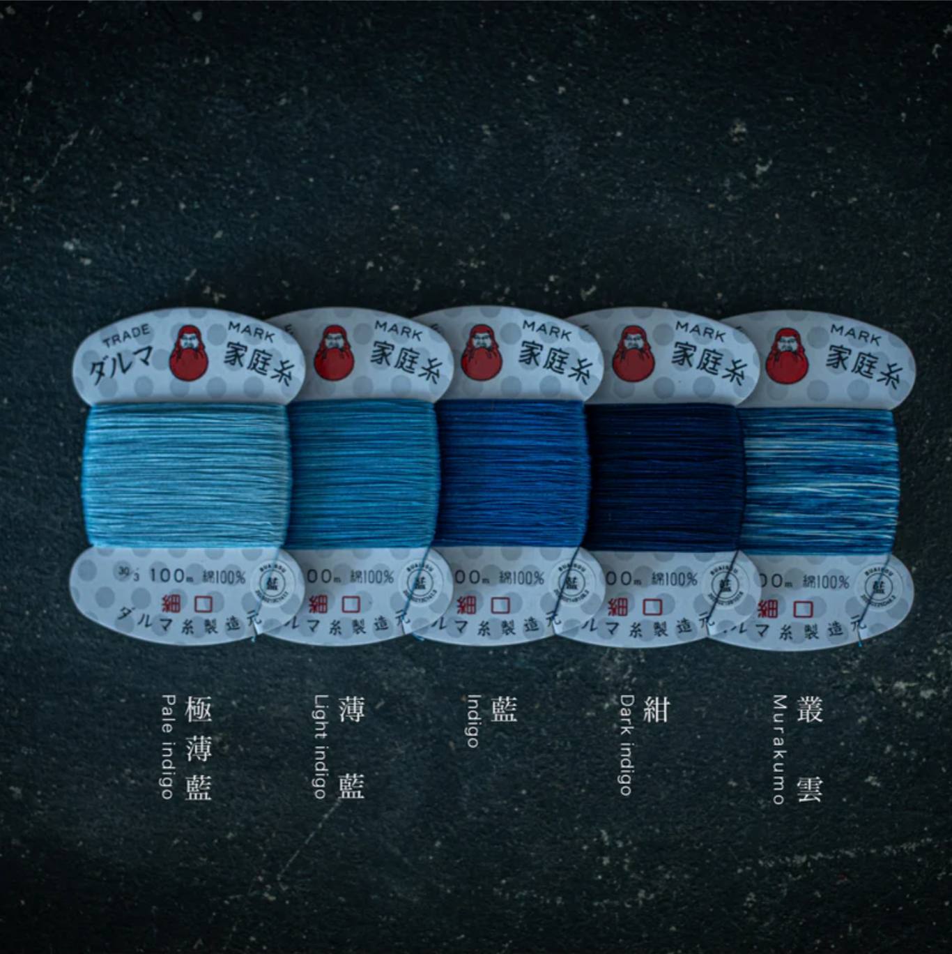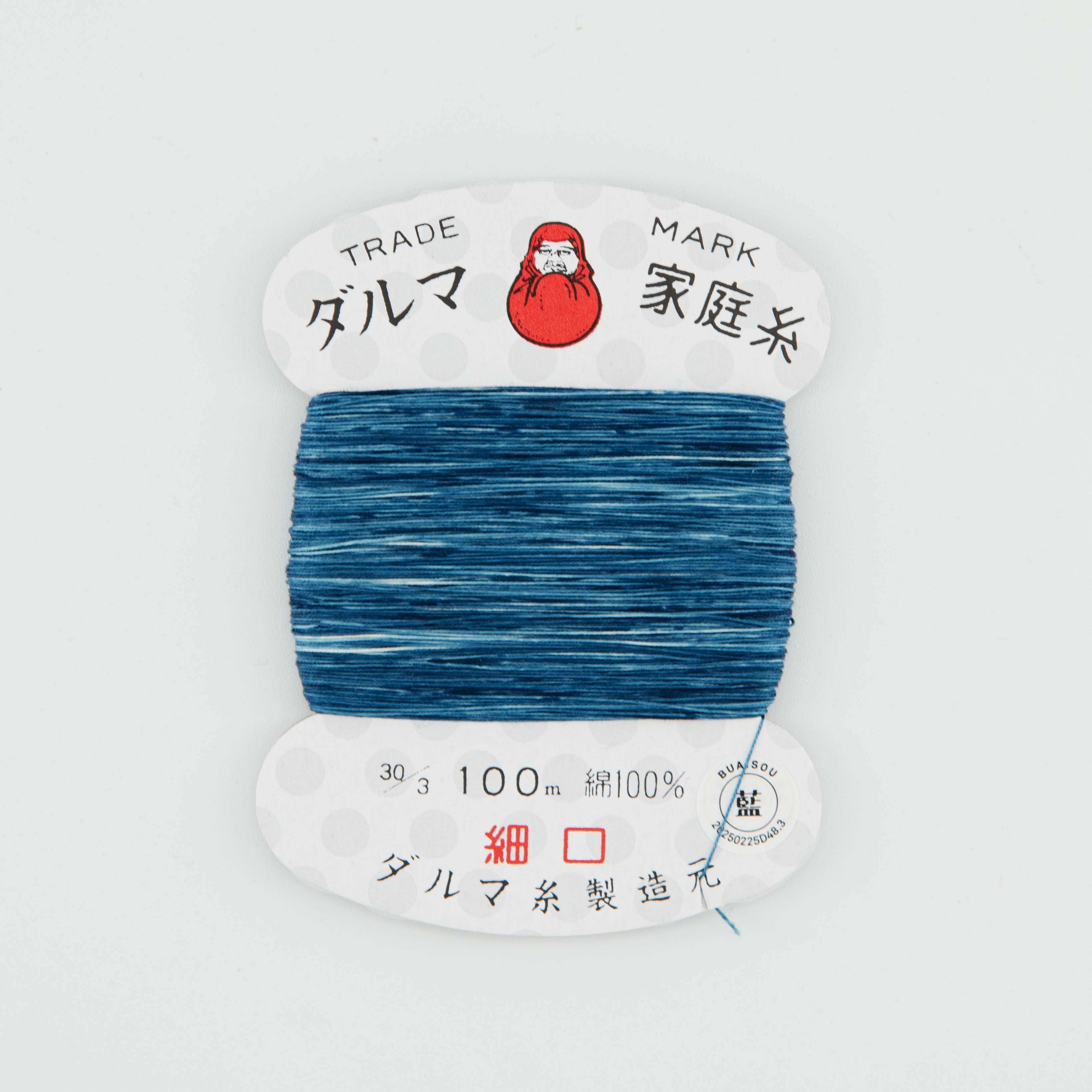 This soft yet durable thread is perfect for sewing buttons on cotton garments as well as for general repairing work. Woven by the heritage Japanese brand Daurma-Ito and hand dyed by BUAISOU. It is suitable for various needlework such as Sashiko detailing, embroidery and adding a beautiful blue edge to stitched clothing.