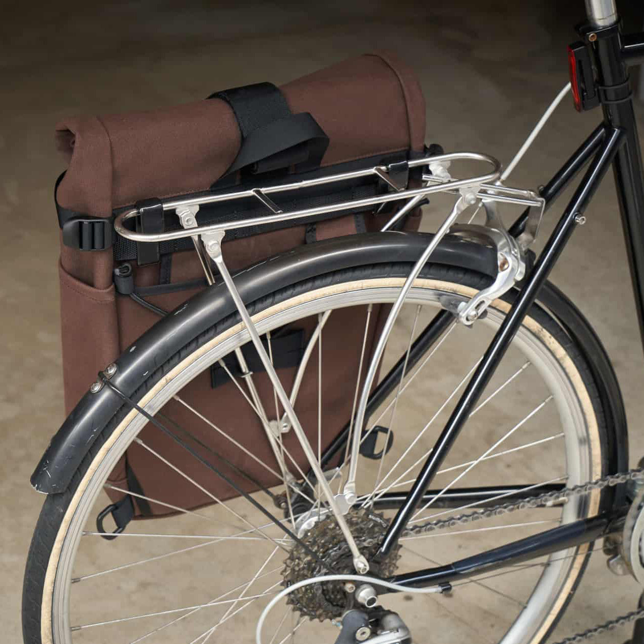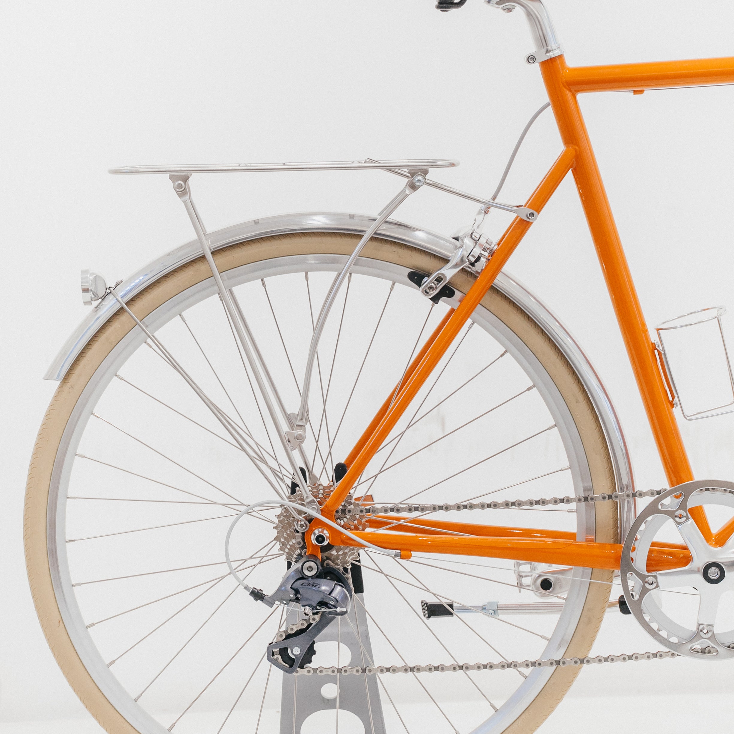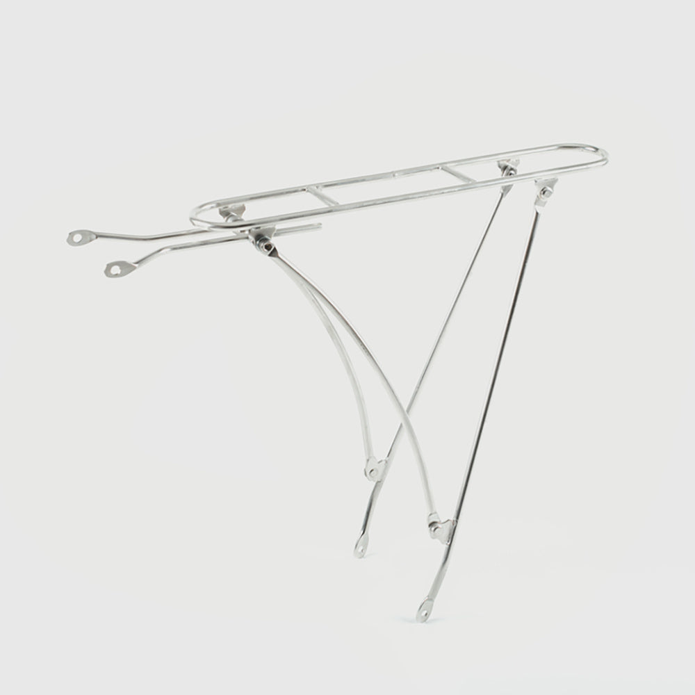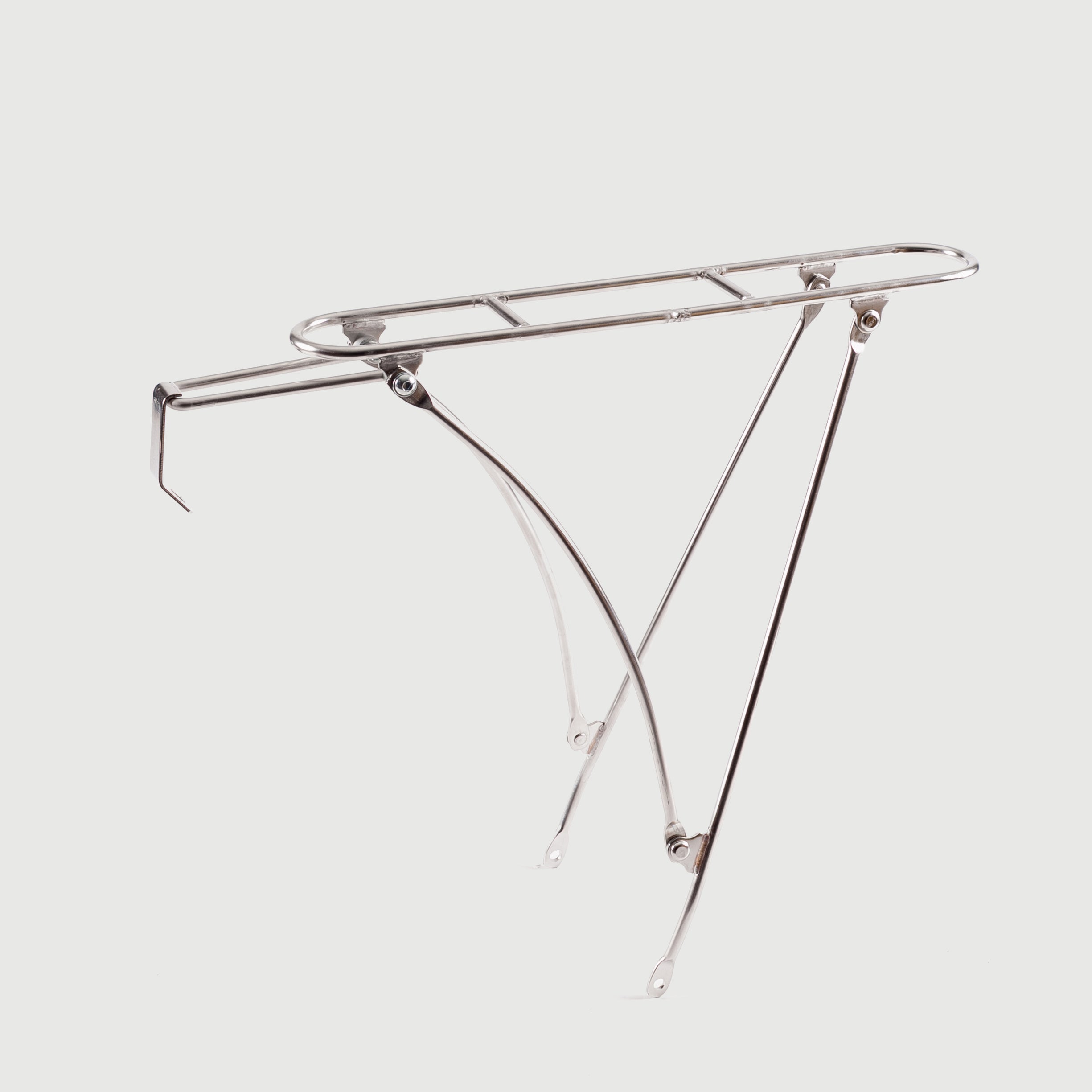 An elegant, slim, stainless steel, rack from Japan. The narrow design means the weight of a pannier bag will remain close to the bike thereby improving balance. The stainless finish makes it durable no matter the weather and its available with either a caliper or rear stay attachment so will fit most bikes.