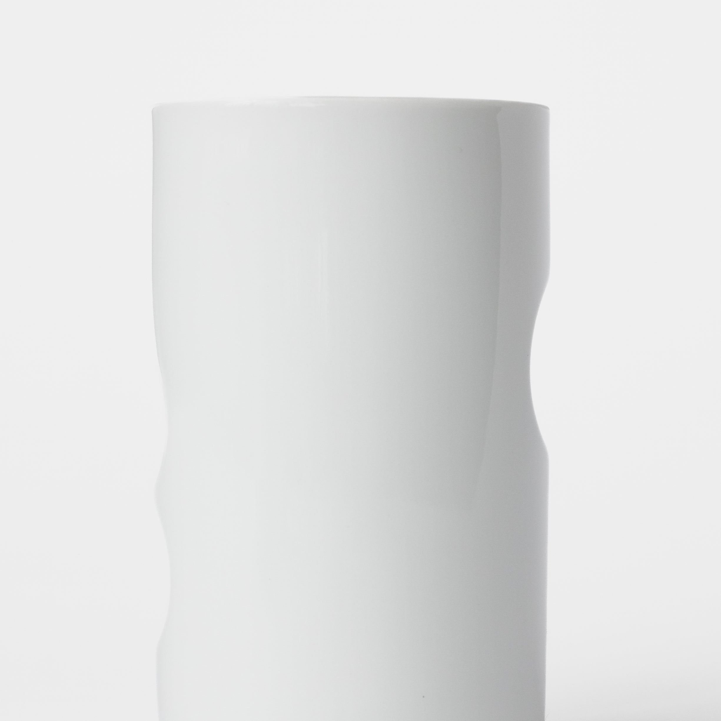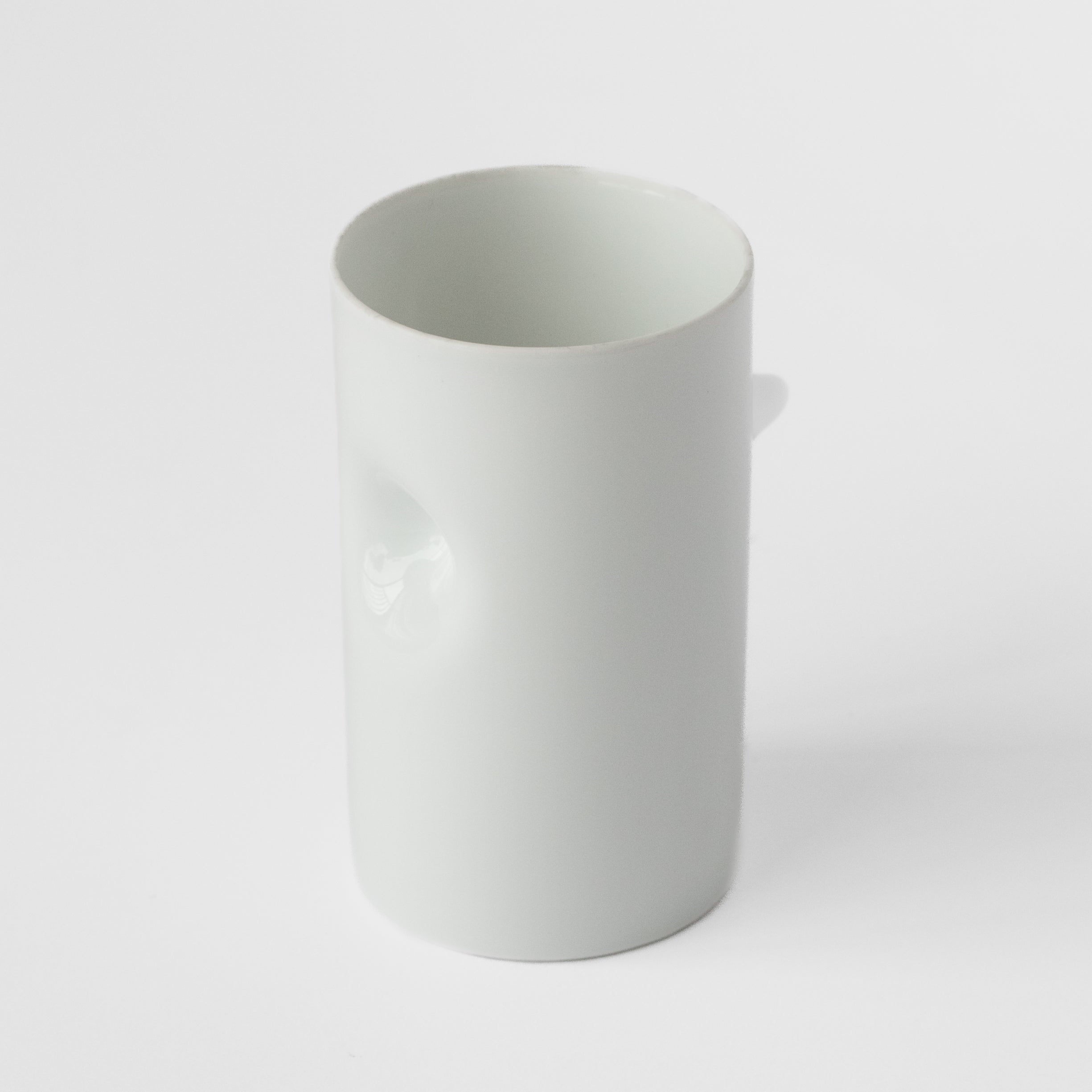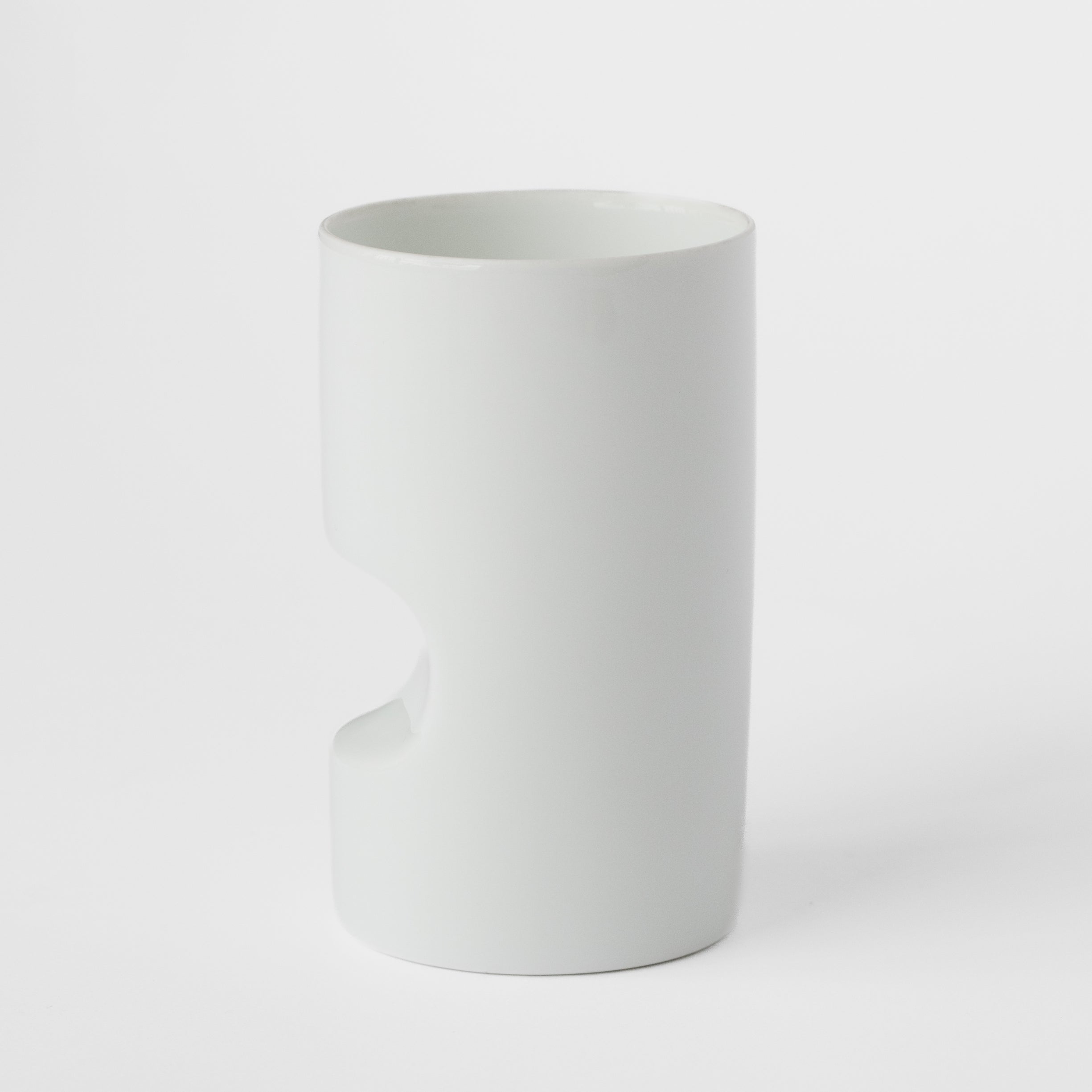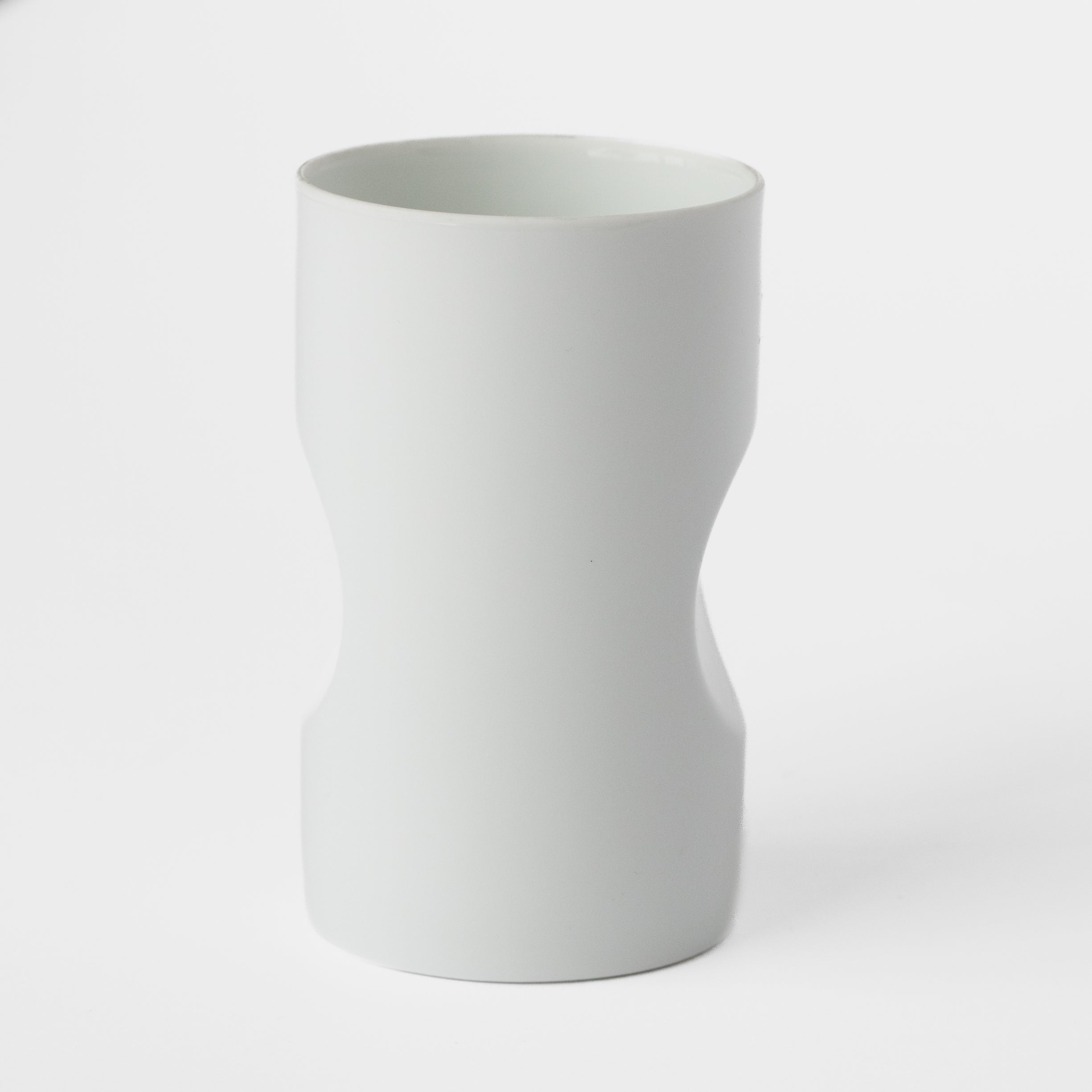 The Fancy Cup, designed by Masahiro Mori in 1969, is a delicate, translucent porcelain tumbler with a smooth finish and a unique shape. It can be used for cold drinks, as a vase, or as a decorative item. The cup comes in six tactile and individual shapes with a surface designed to perfectly fit your fingers. Made of quality, blue-toned porcelain, the tumbler has been in continuous production for over 50 years and in 2006 received the prestigious Good Design Award.