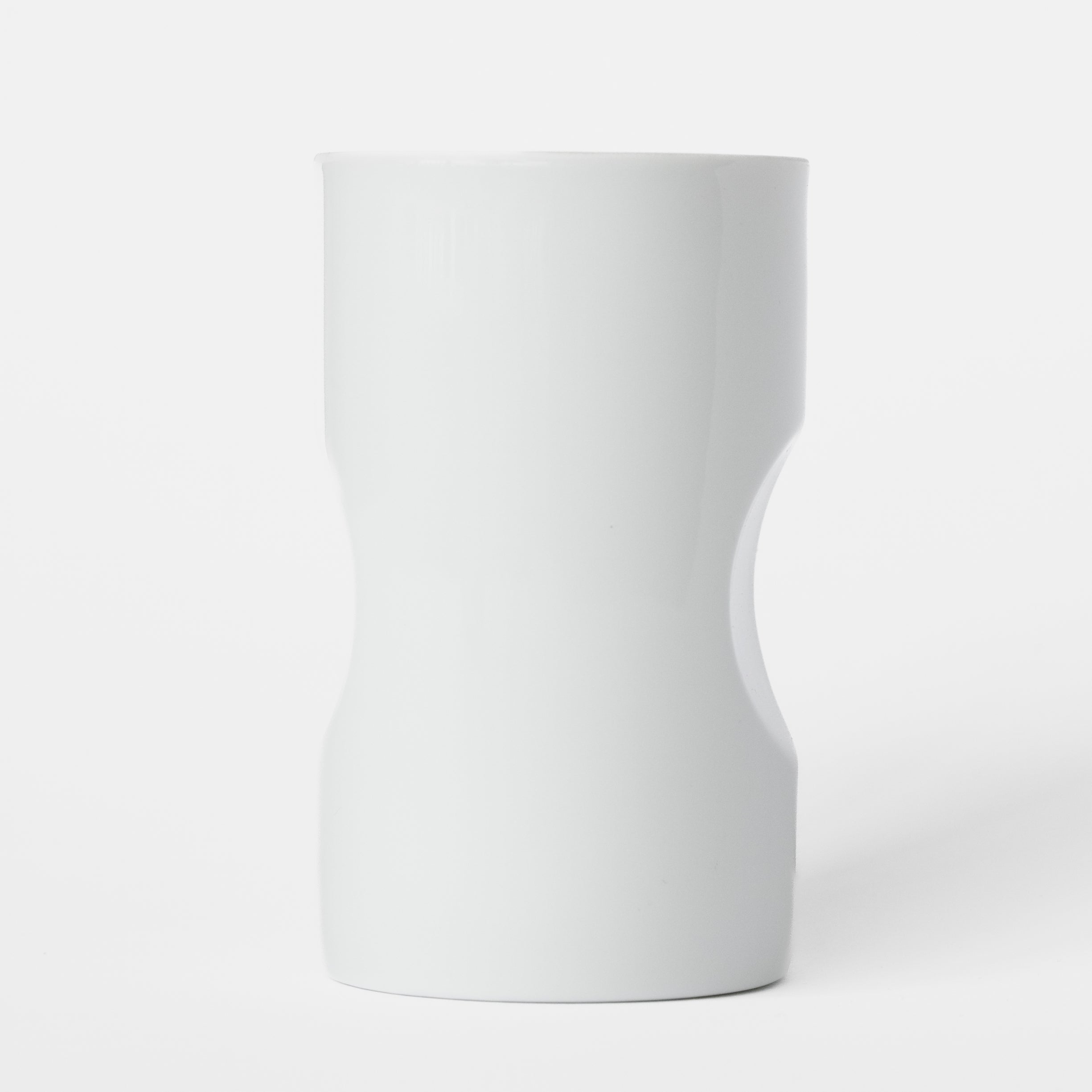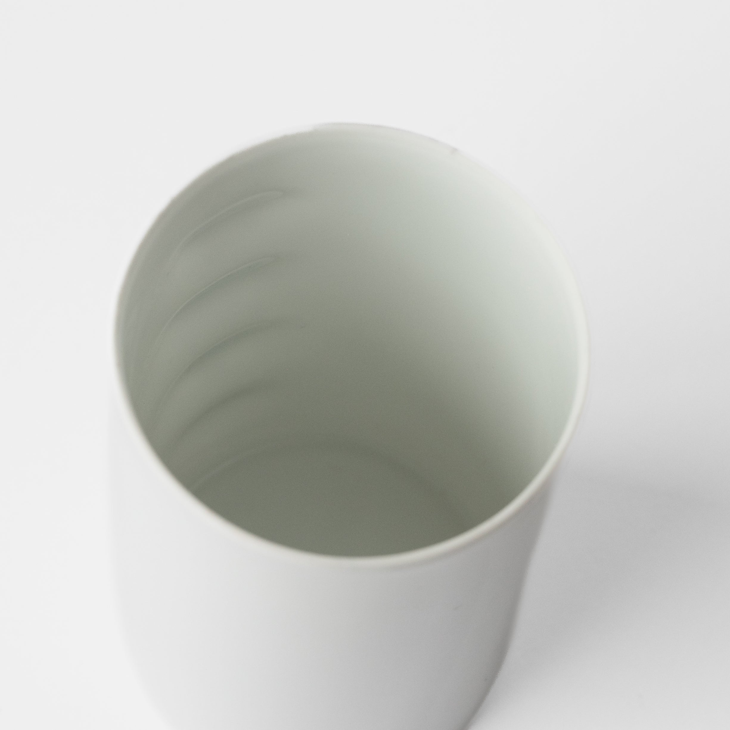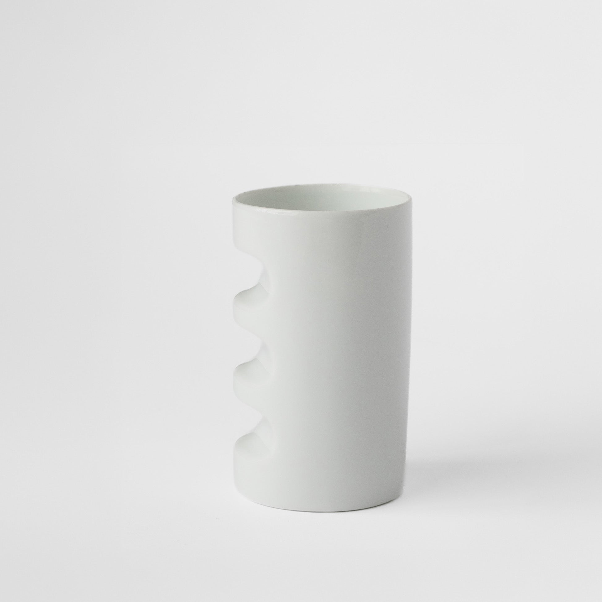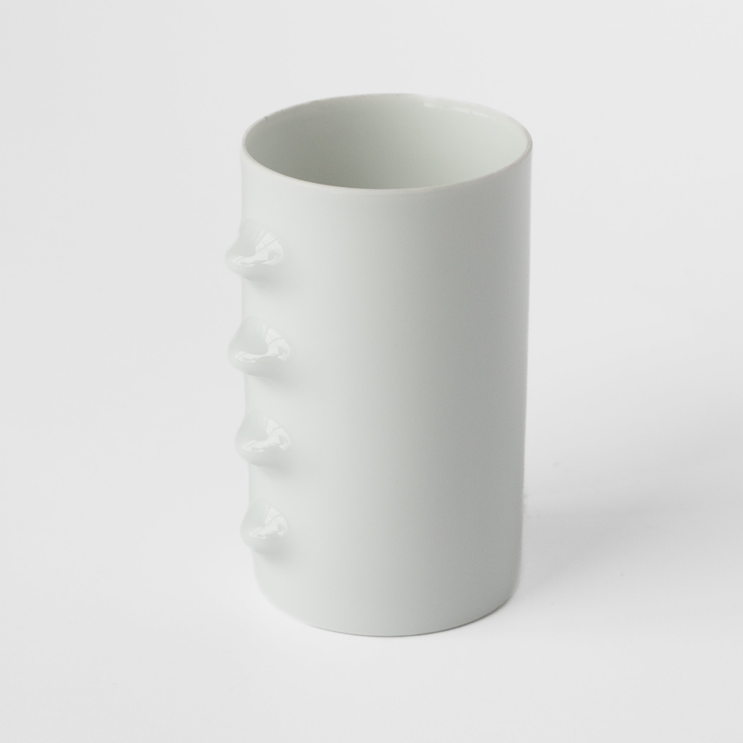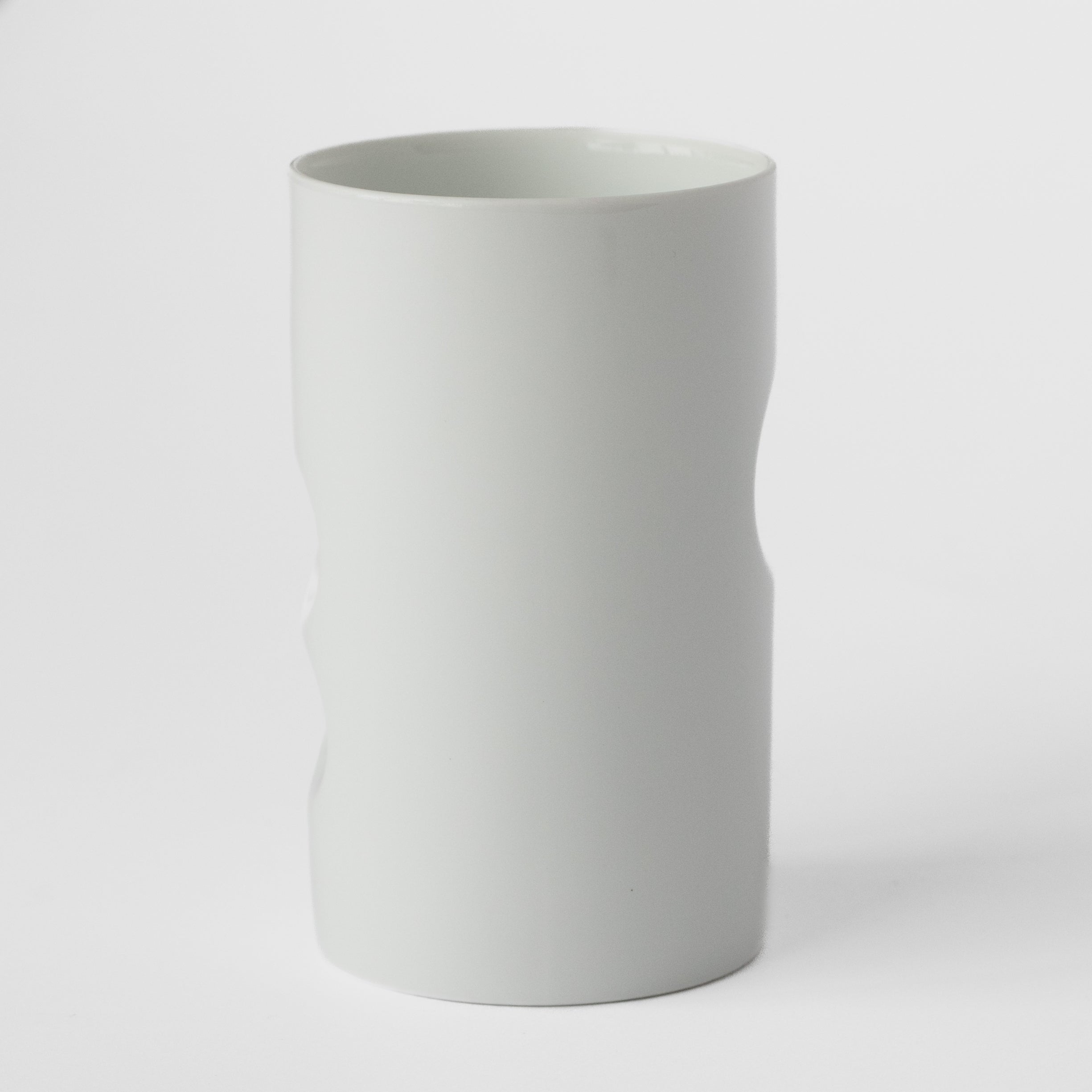 The Fancy Cup, designed by Masahiro Mori in 1969, is a delicate, translucent porcelain tumbler with a smooth finish and a unique shape. It can be used for cold drinks, as a vase, or as a decorative item. The cup comes in six tactile and individual shapes with a surface designed to perfectly fit your fingers. Made of quality, blue-toned porcelain, the tumbler has been in continuous production for over 50 years and in 2006 received the prestigious Good Design Award.
