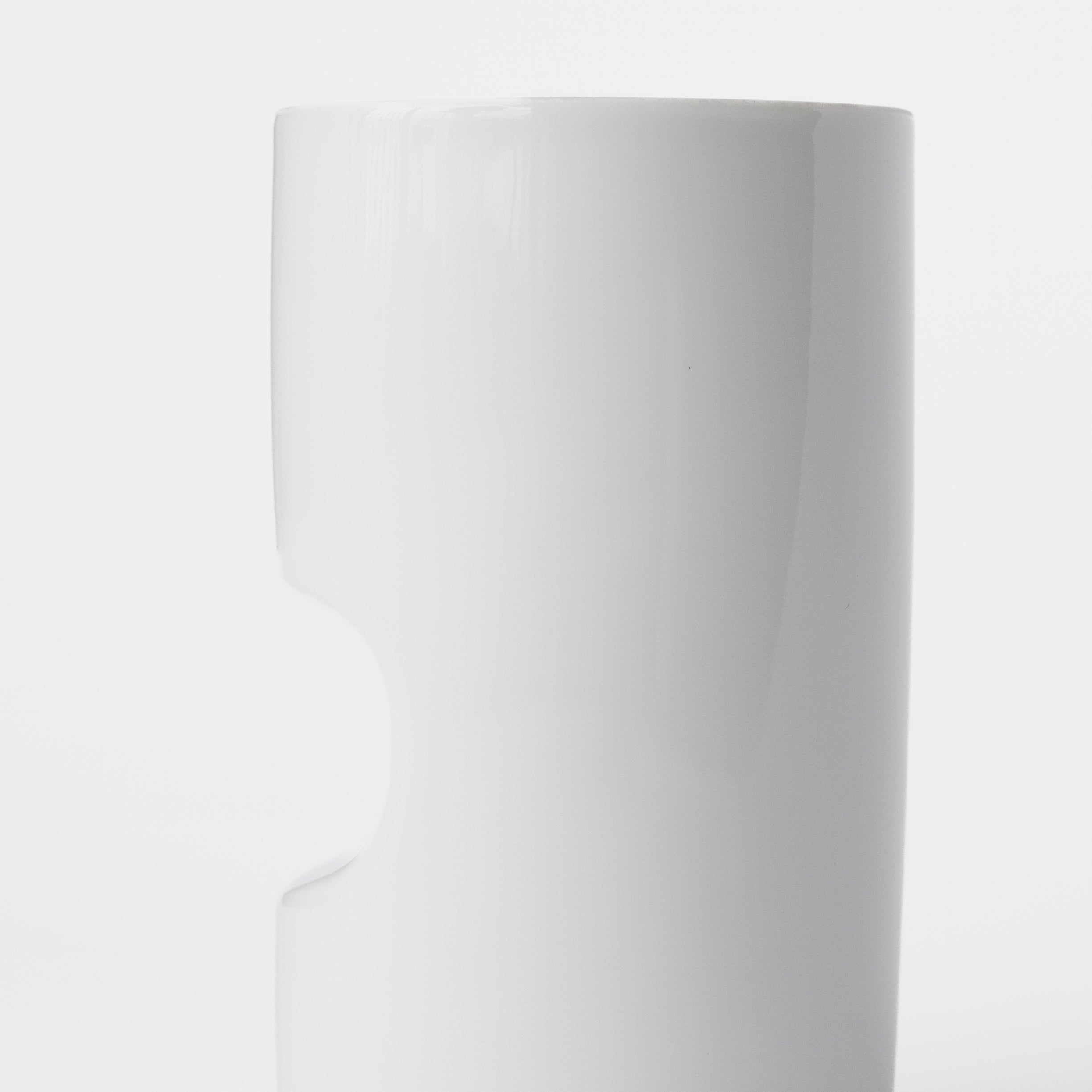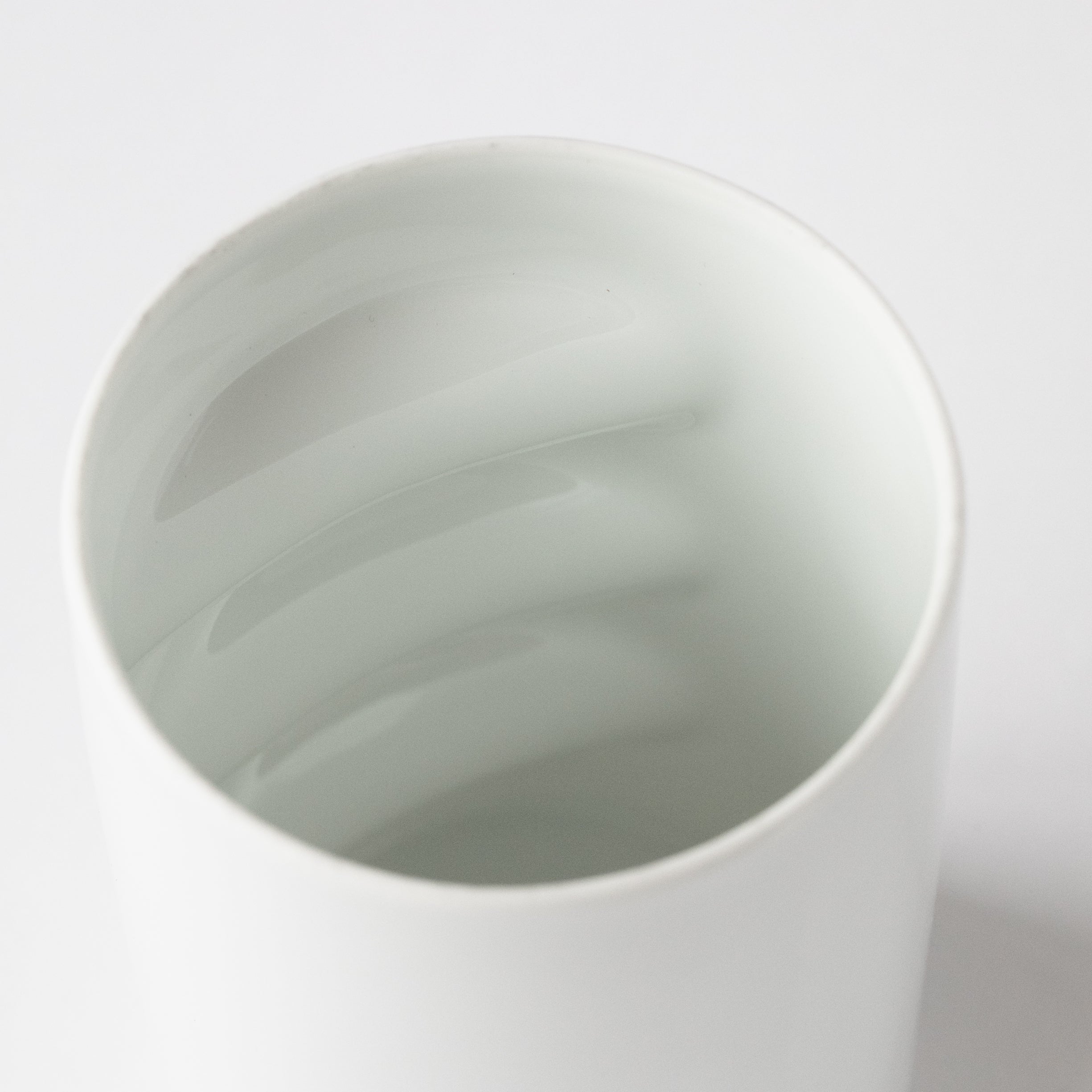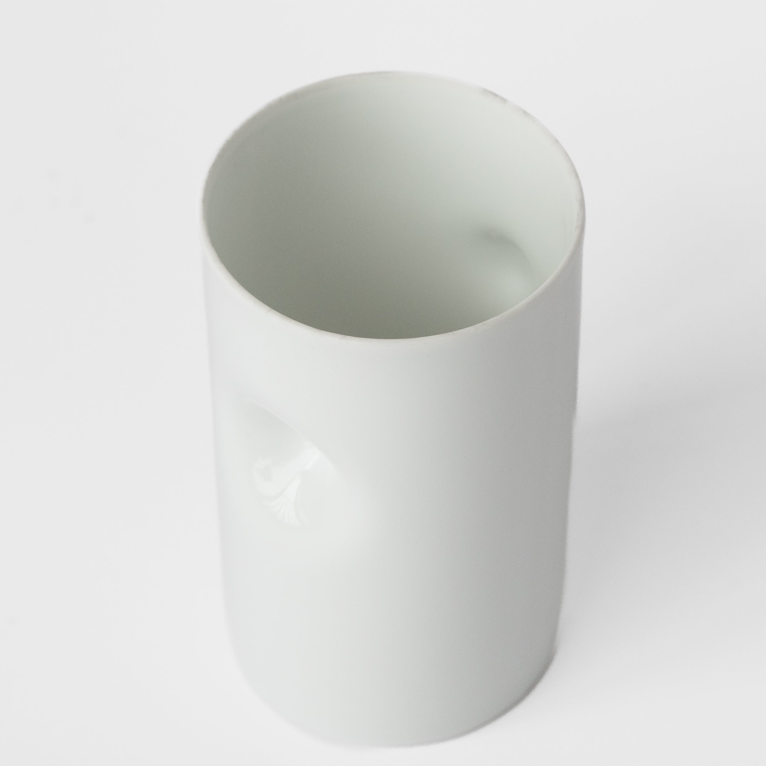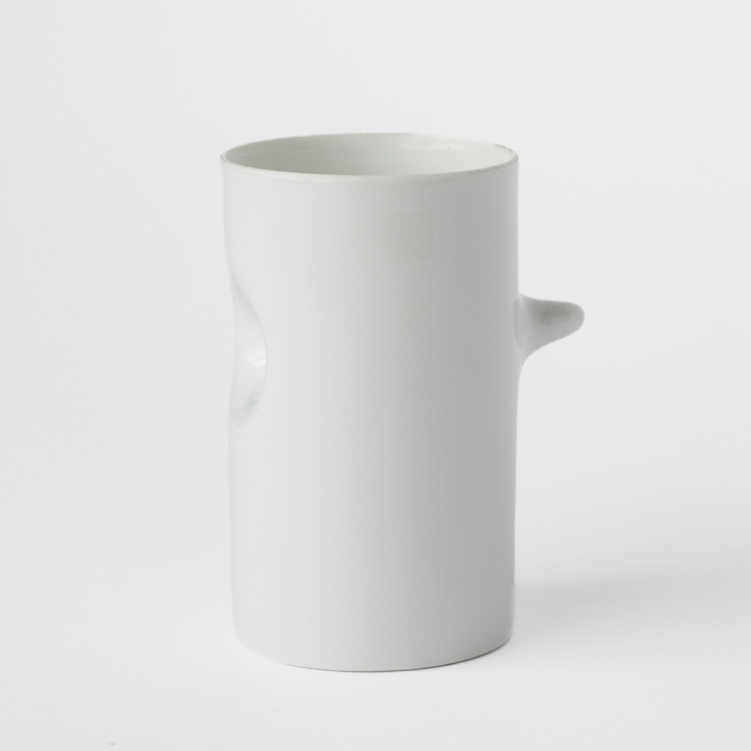 The Fancy Cup, designed by Masahiro Mori in 1969, is a delicate, translucent porcelain tumbler with a smooth finish and a unique shape. It can be used for cold drinks, as a vase, or as a decorative item. The cup comes in six tactile and individual shapes with a surface designed to perfectly fit your fingers. Made of quality, blue-toned porcelain, the tumbler has been in continuous production for over 50 years and in 2006 received the prestigious Good Design Award.