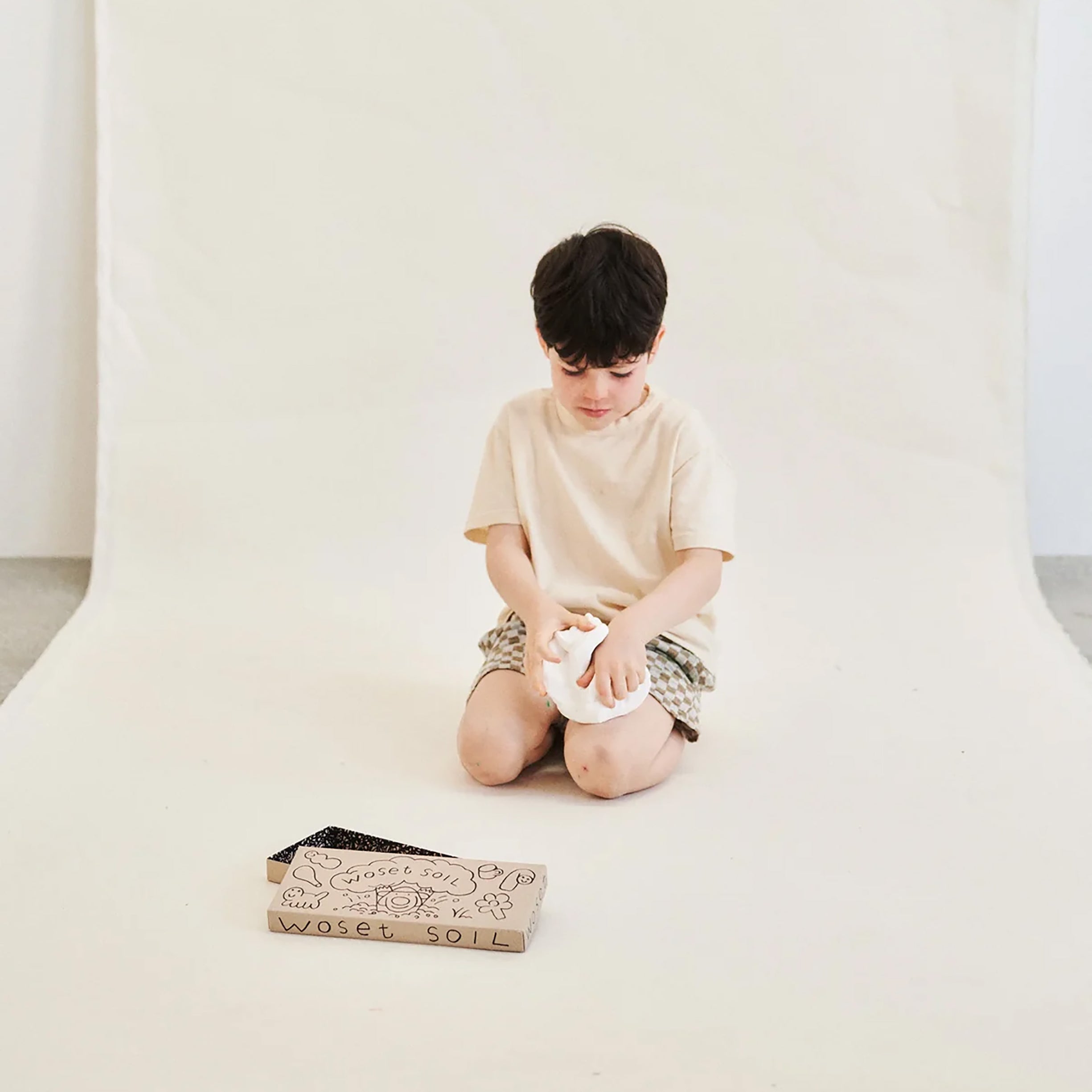 The light, soft and stretchy clay in white is perfect for creations of all kinds and sizes. Non-stick for clean hands and surfaces. The generous volume allows for sharing as well as plenty of solo play. Make art, sculpt shapes, and squeeze it through your fingers. But be warned, it will harden if the soil is left above the surface for too long! Add colour by mixing paint into soft clay.