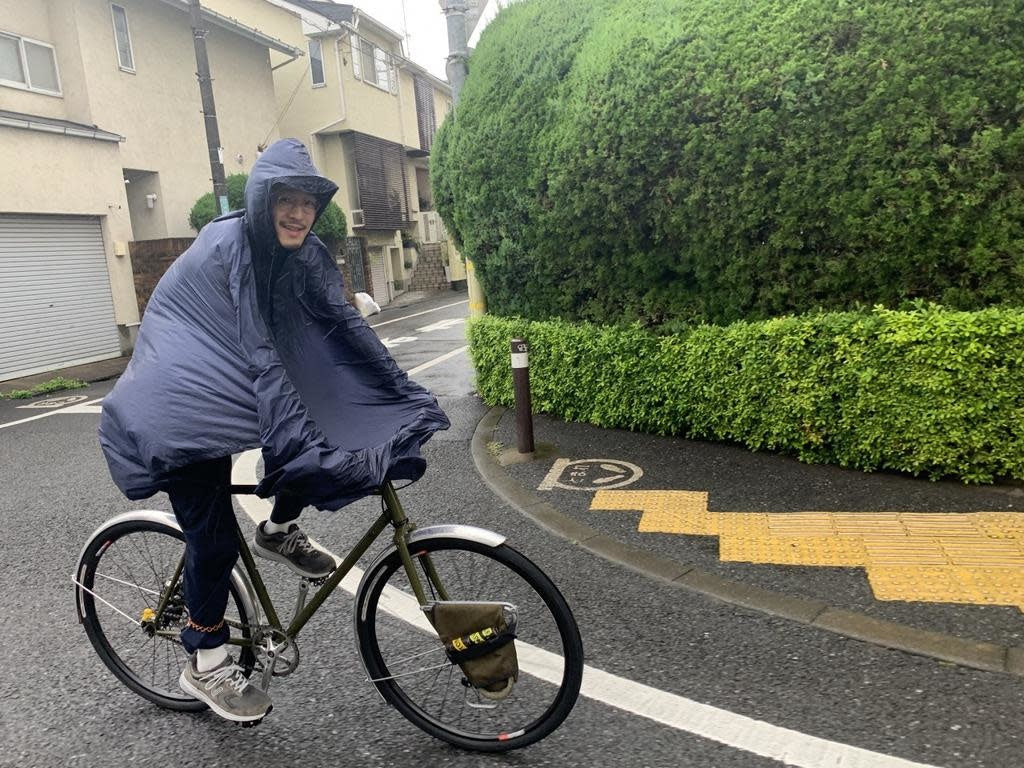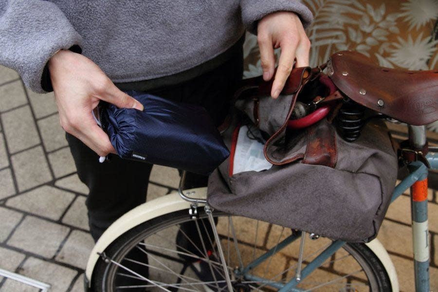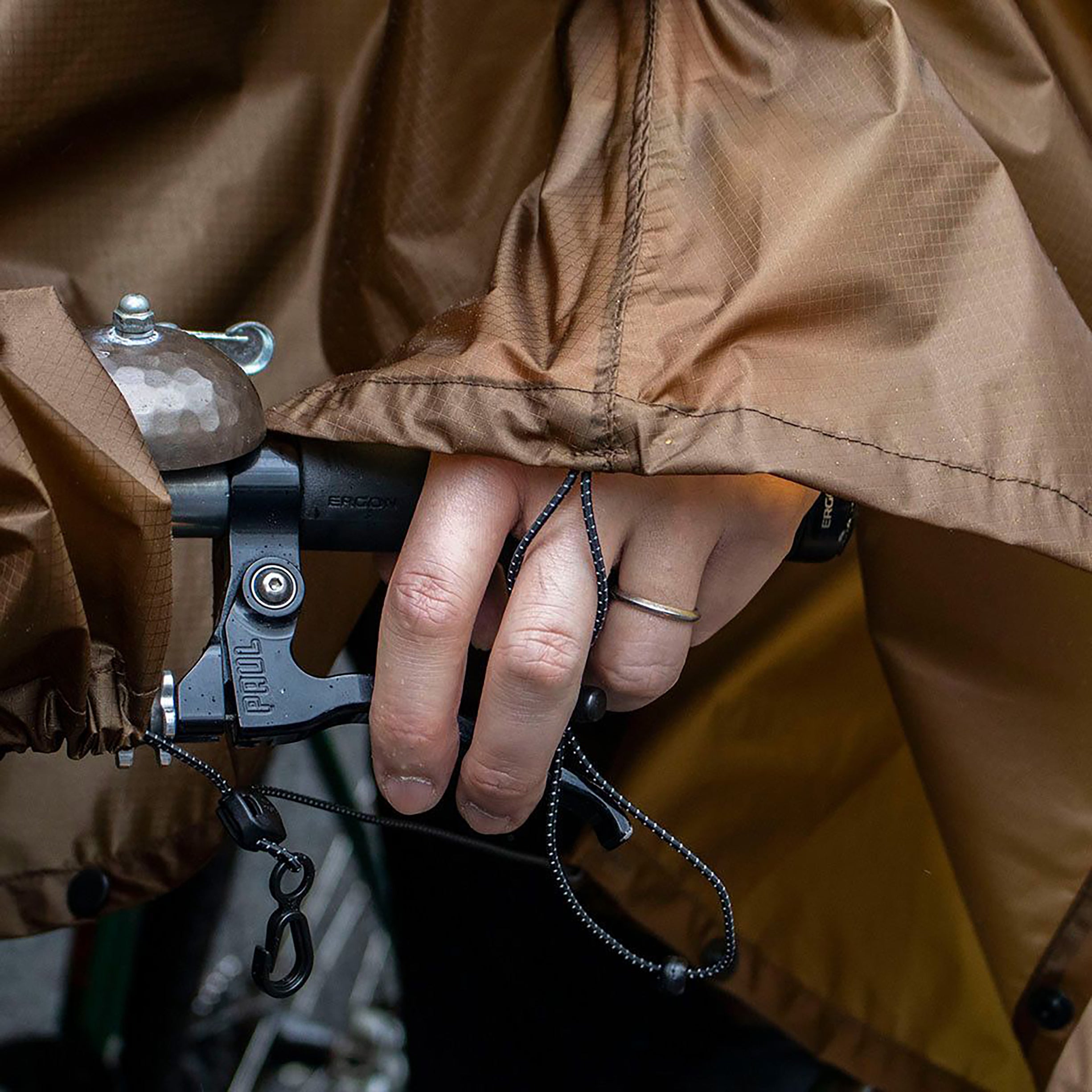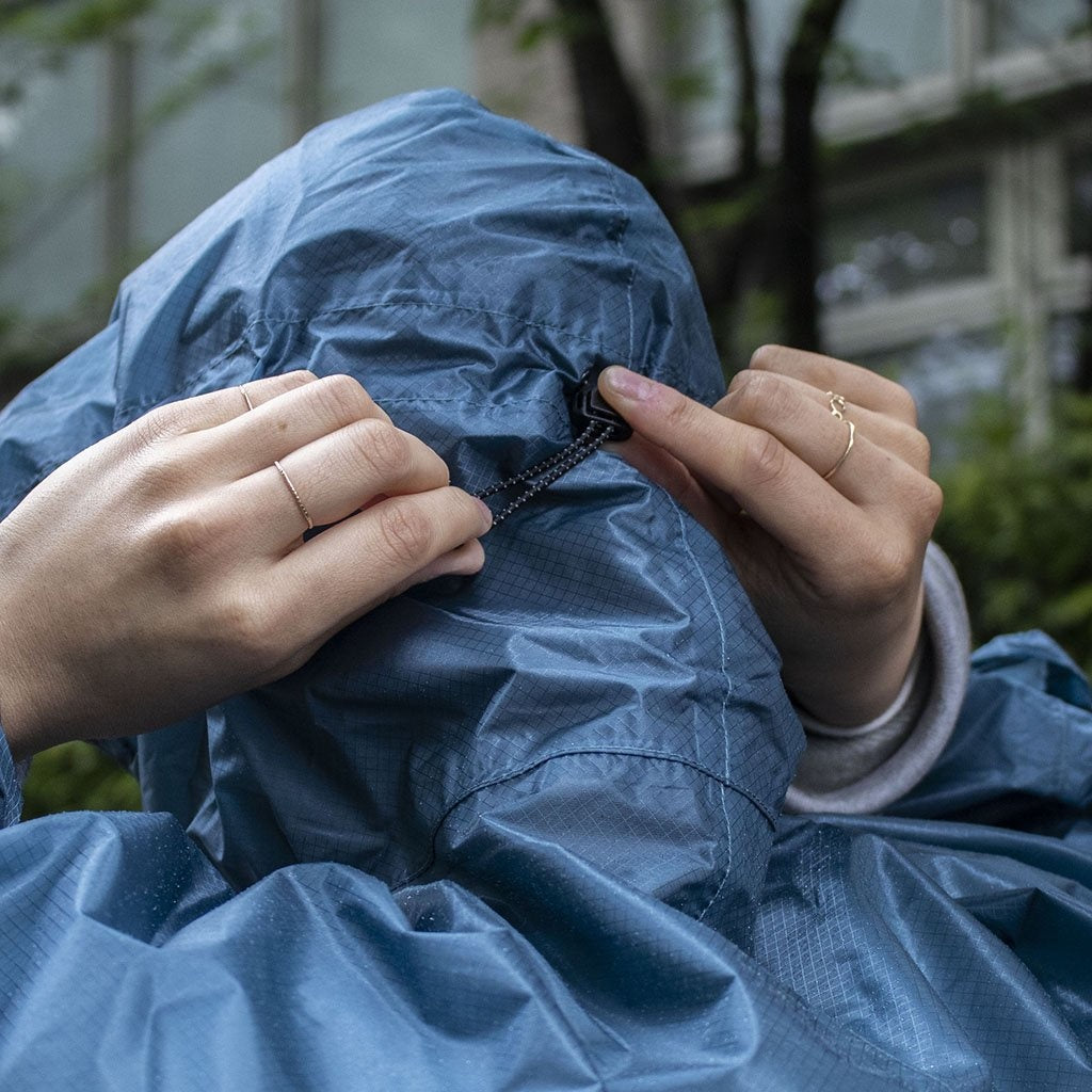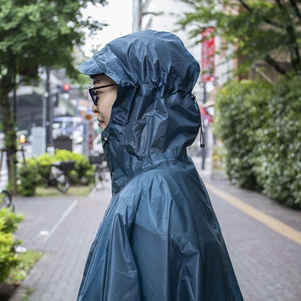 A super light, fully waterproof, packable rain poncho, designed for the committed cyclist by Fairweather, Japan. It features taped seams, an adjustable hood to accommodate your helmet and thumb loops so the poncho can be stretched over your handlebars to protect your arms and legs while riding. No such as bad weather just the wrong clothes as they say.