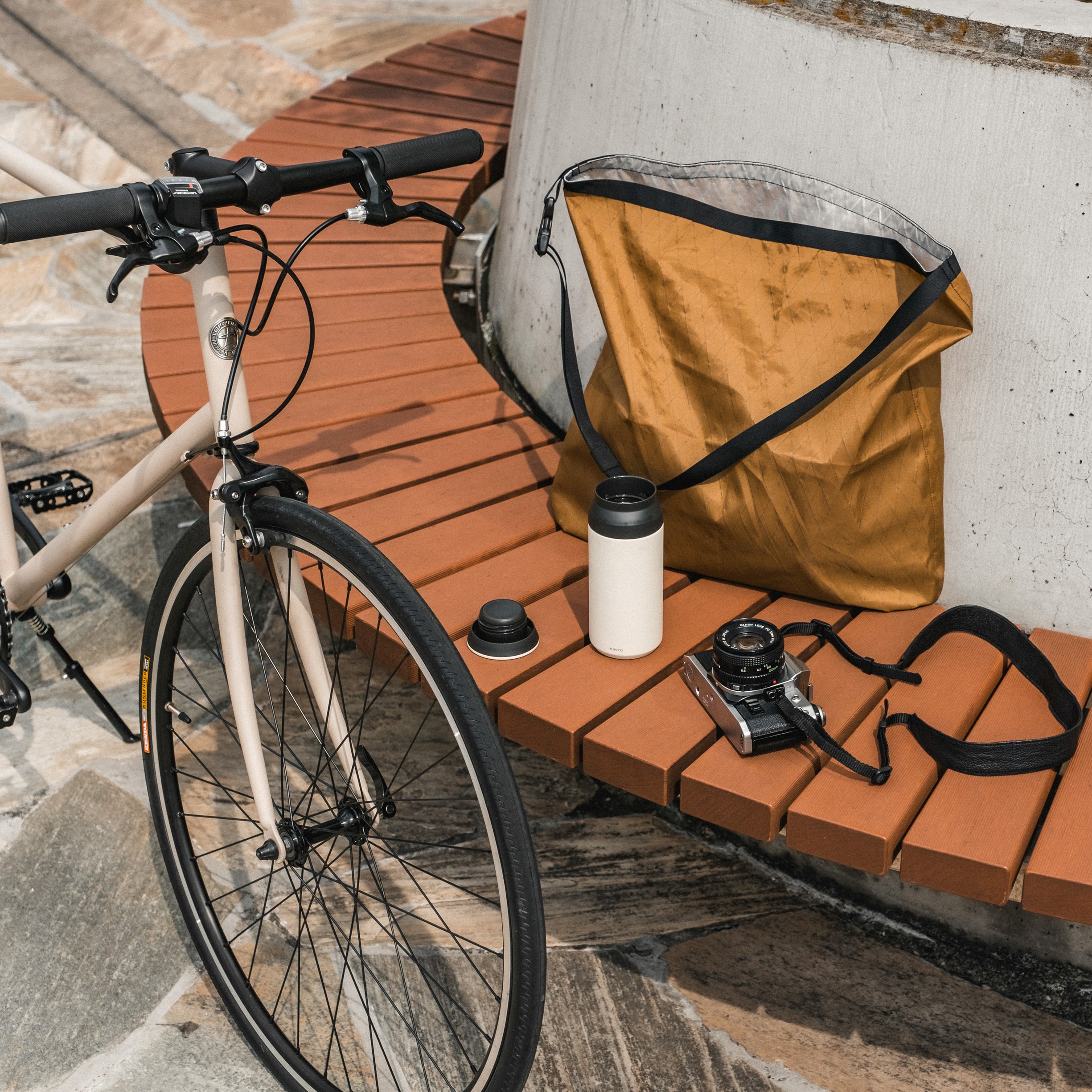 Packable Sacoche from Fairweather, Japan. Waterproof, tough, X-pac fabric and a generous size when unpacked, makes this the perfect travel companion - ready for unexpected shopping stops.