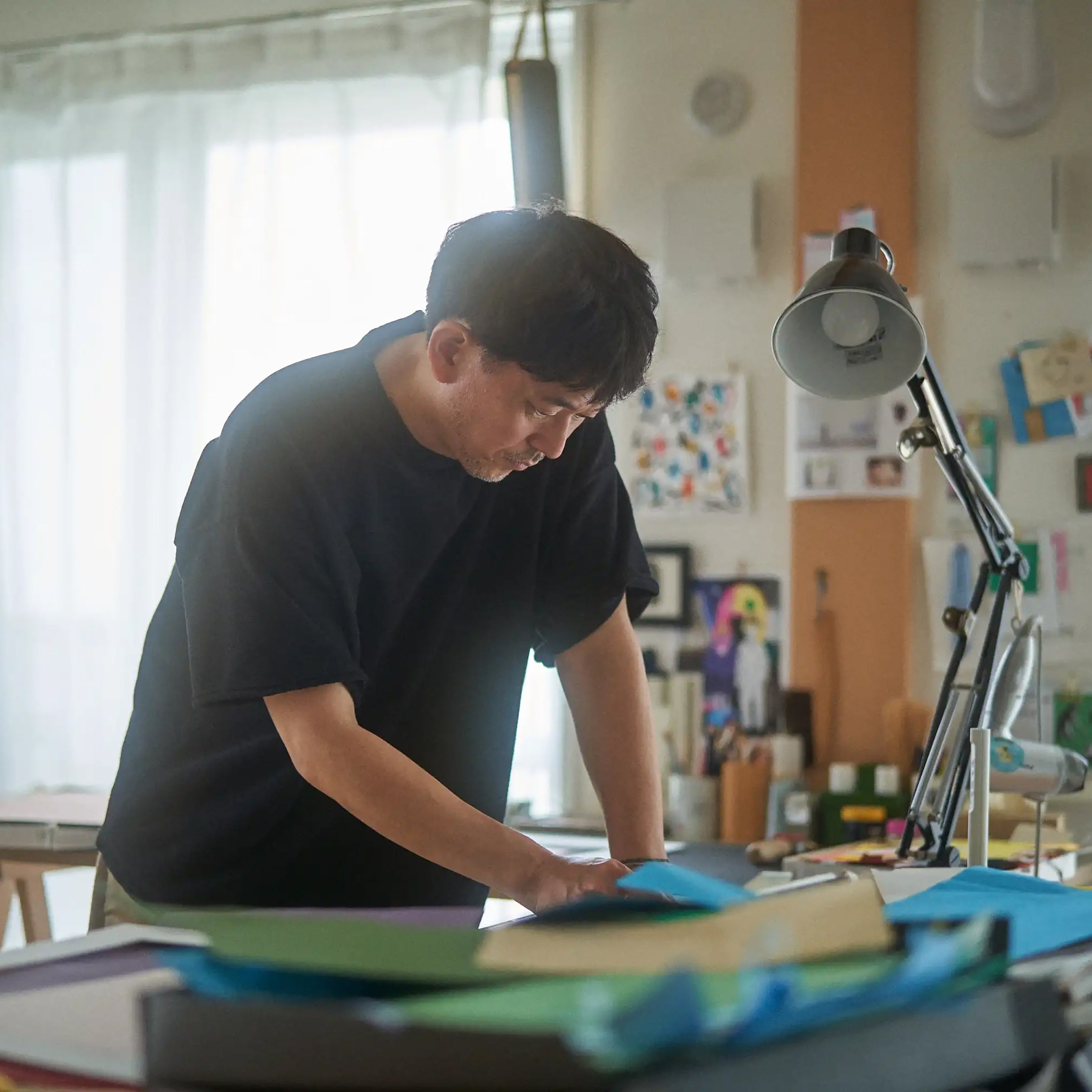 Taku Bannai is a Tokyo based artist creating cut-out works using layers of tanto paper. Playing with colour, texture and weight, the artist prefers to cut freehand, making lines with natural fluctuations, reminiscent of the contours of the landscape.
