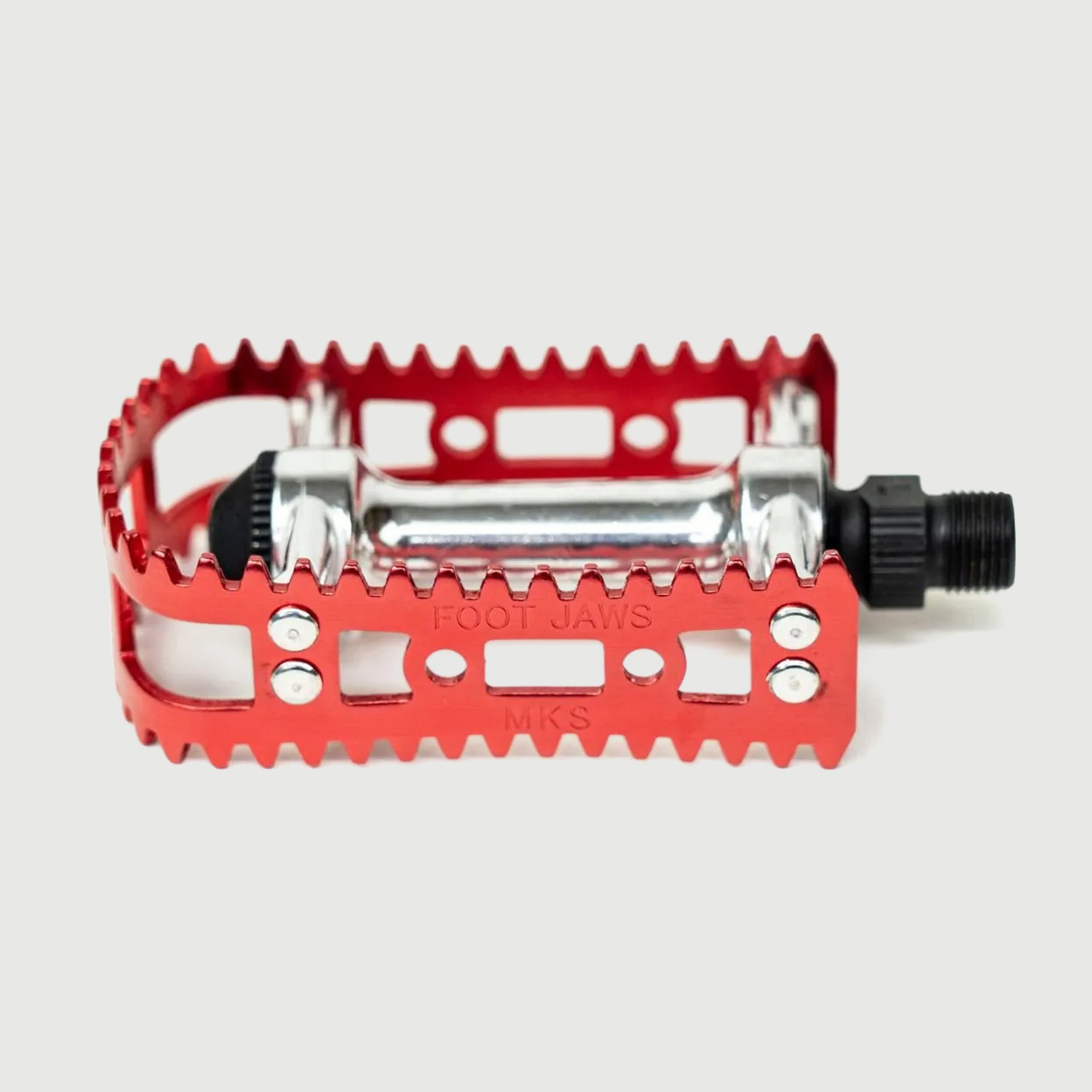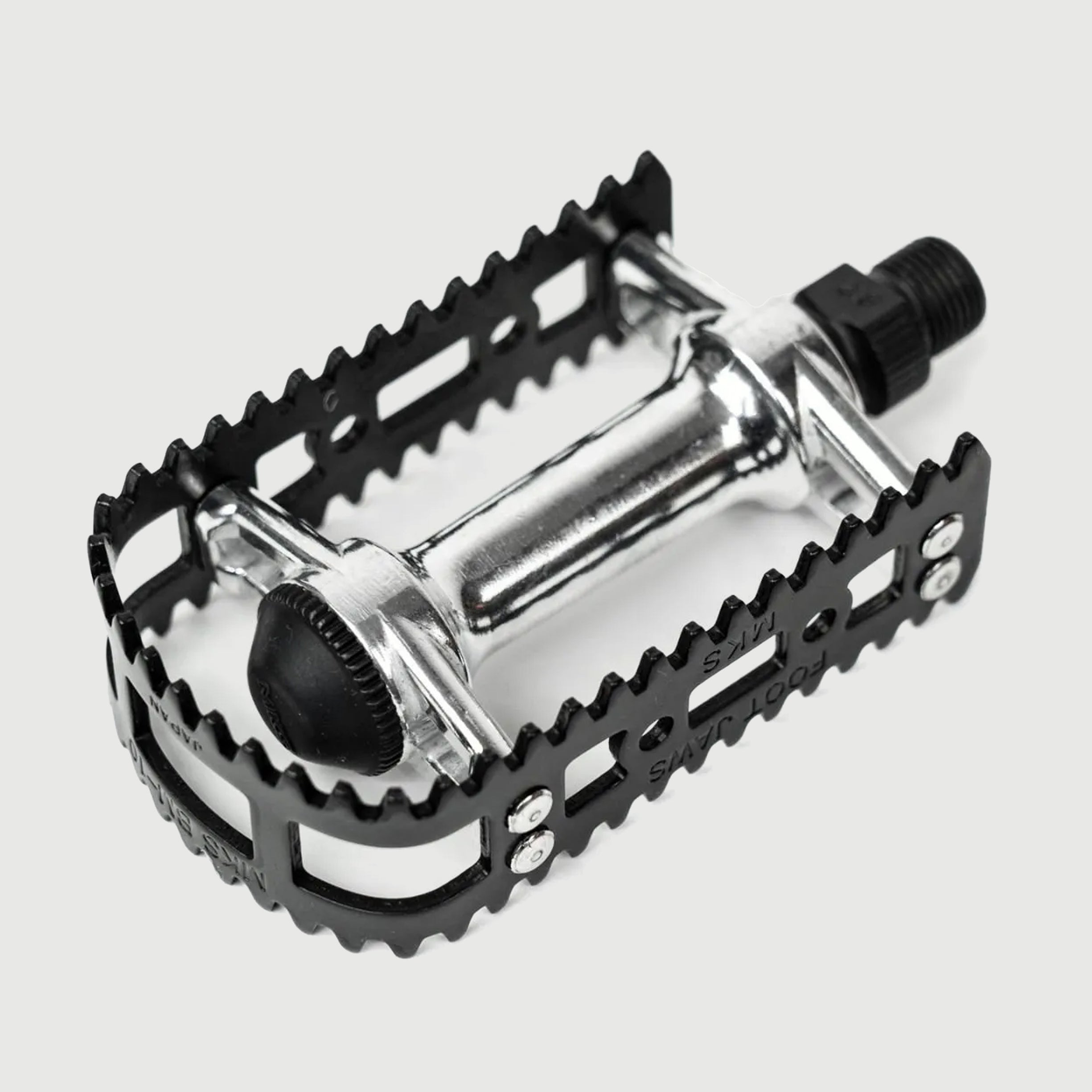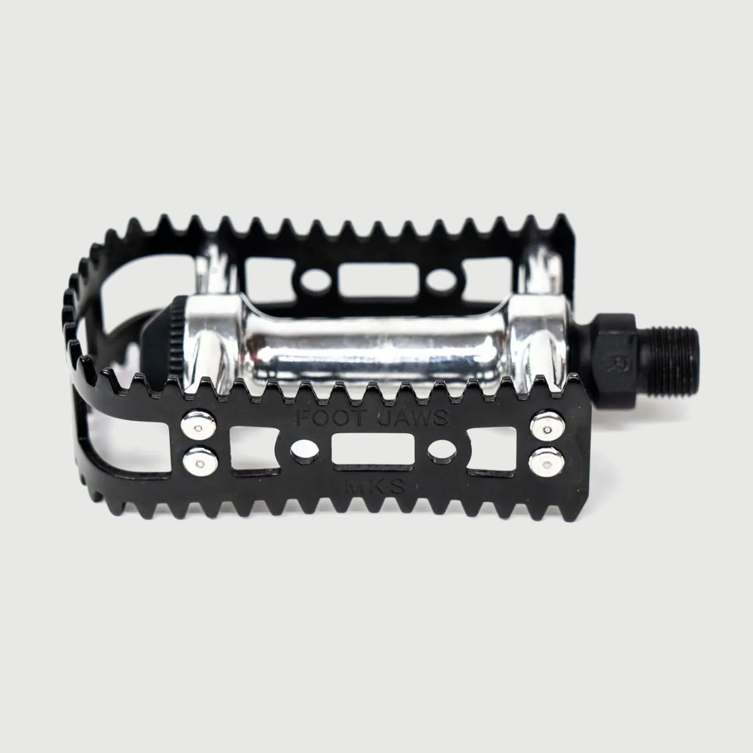 A revival of MKS’s iconic 1980–1991 BMX pedal, the "FOOT JAWS" returns after 33 years with its signature shark-tooth cage for unbeatable grip. Ideal for vintage MTBs, commuters, and more.