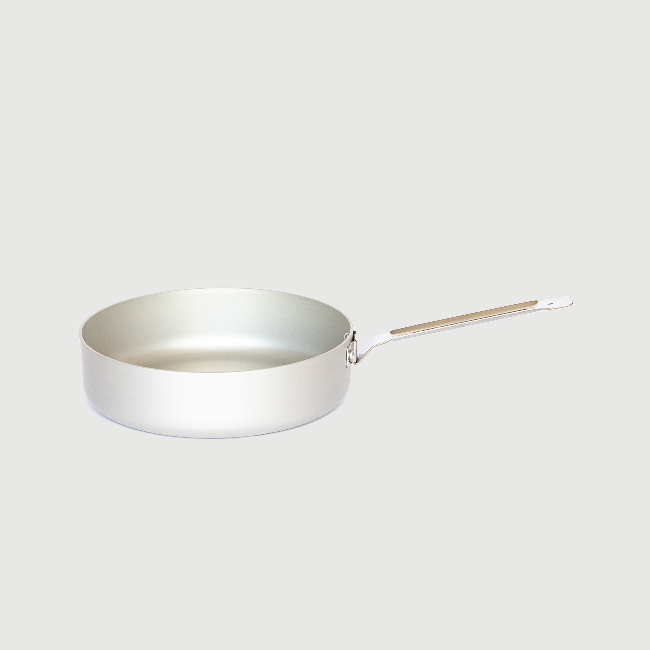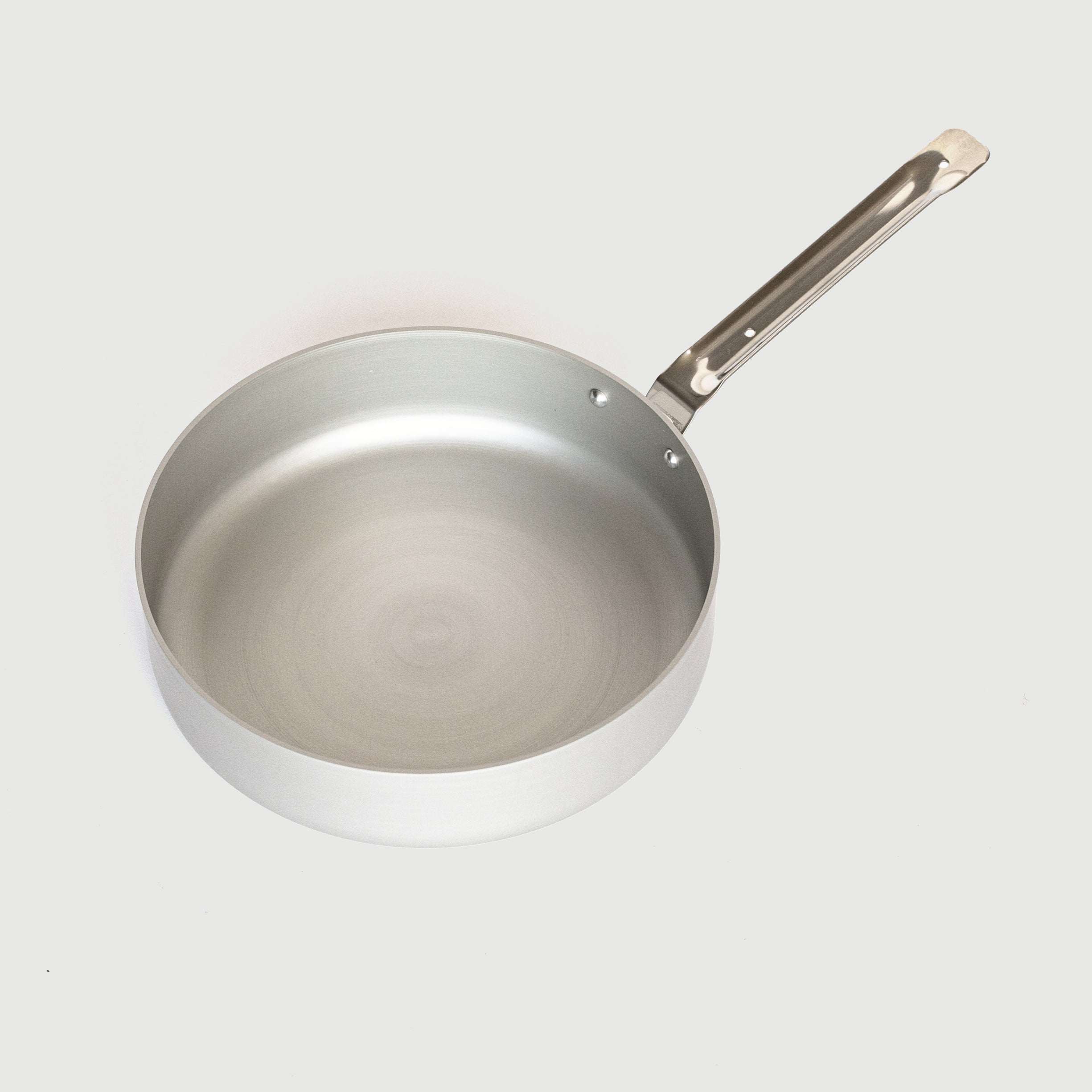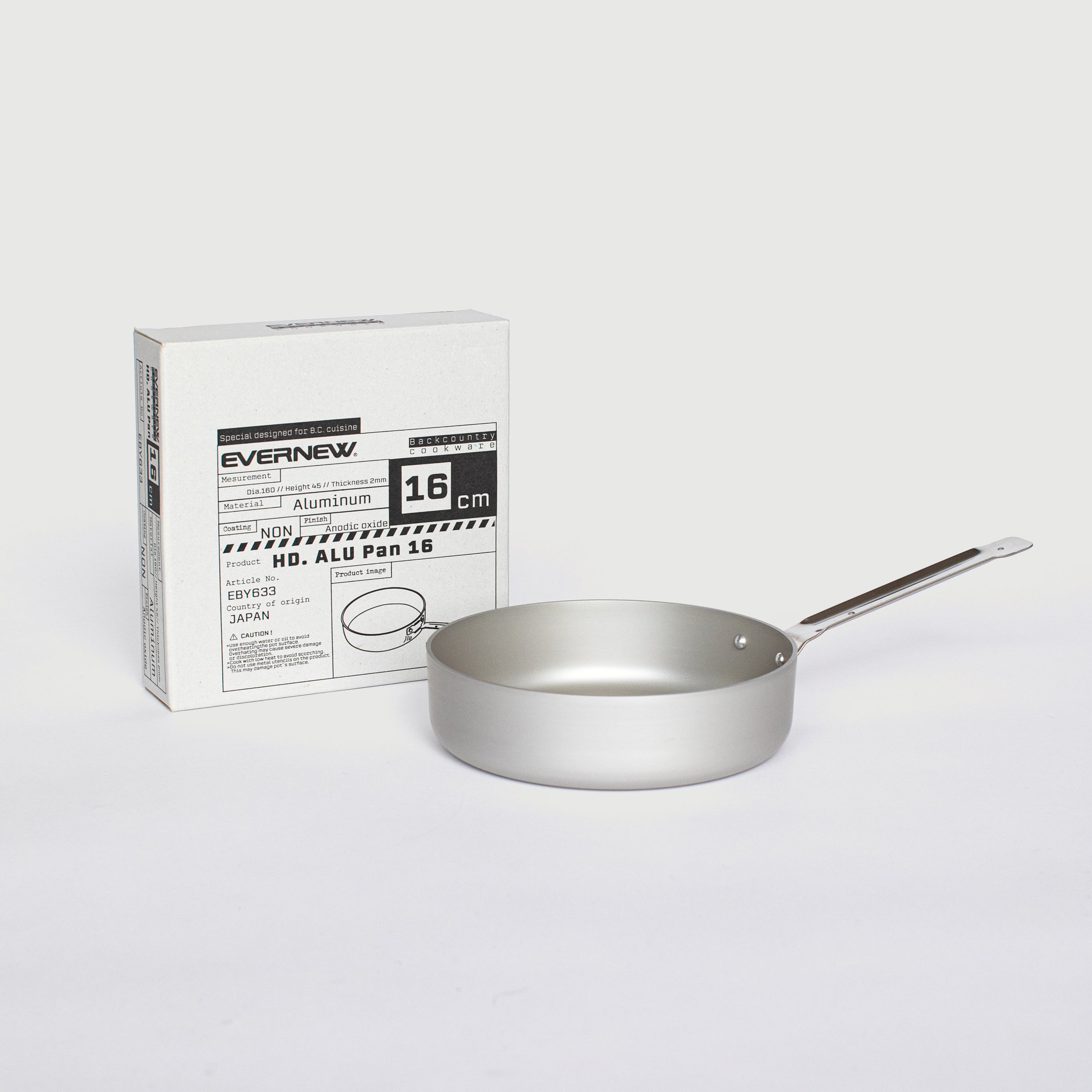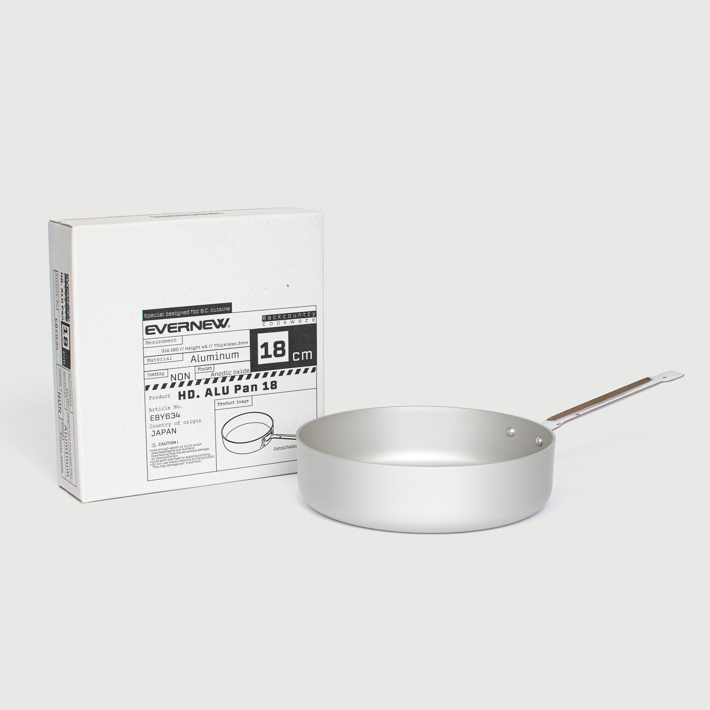 The Evernew HD. Alu Pan is a durable, handcrafted frying pan made from 2mm thick Japanese aluminium, offering excellent heat distribution for even cooking.