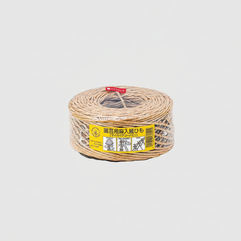 Sustainable gardening string, made from strong natural hemp wrapped with recycled paper.
