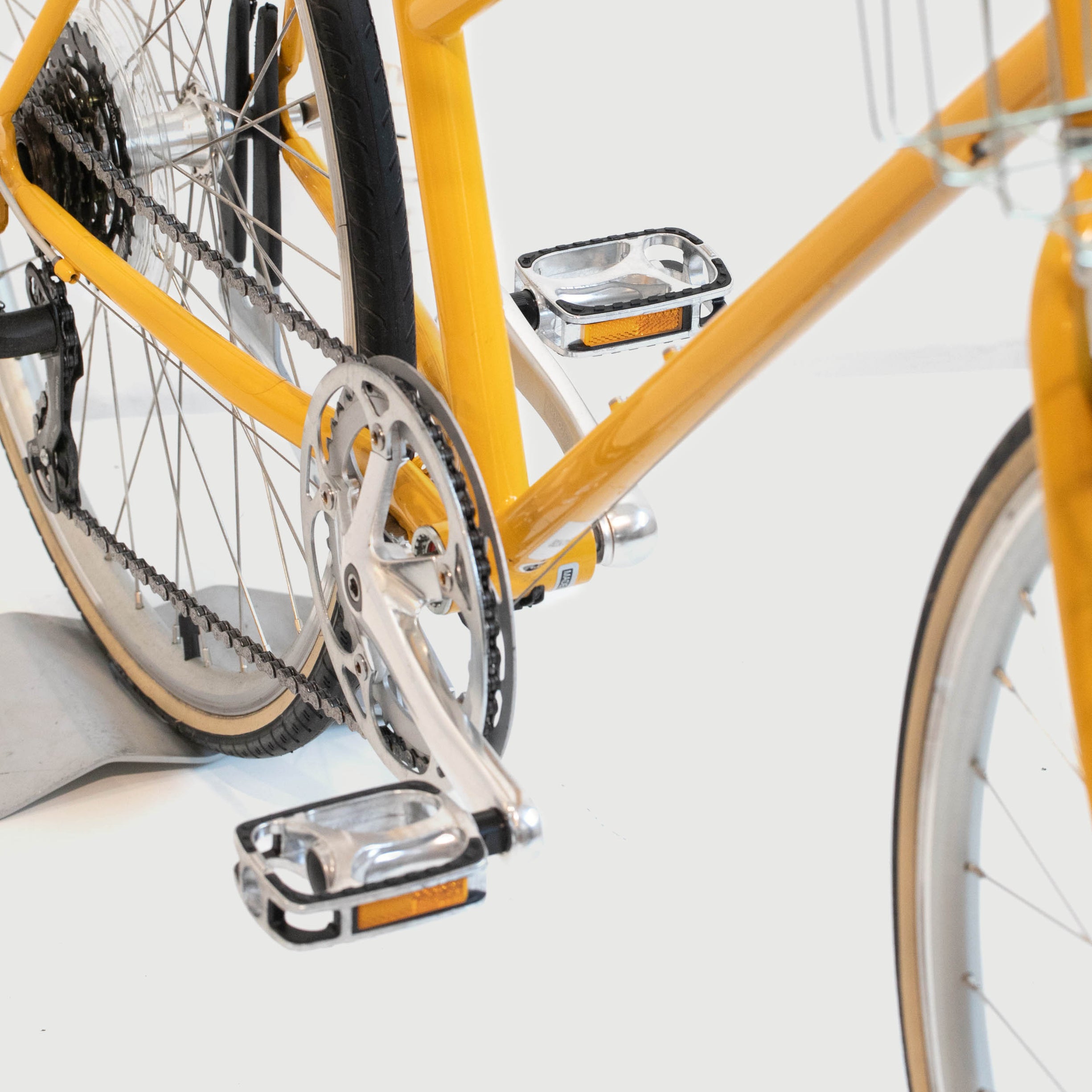 The highly polished aluminium Commuting Pedals come with rubber tread and integrated reflectors. The non-slip surface is great to grip flat, leather soled shoes.