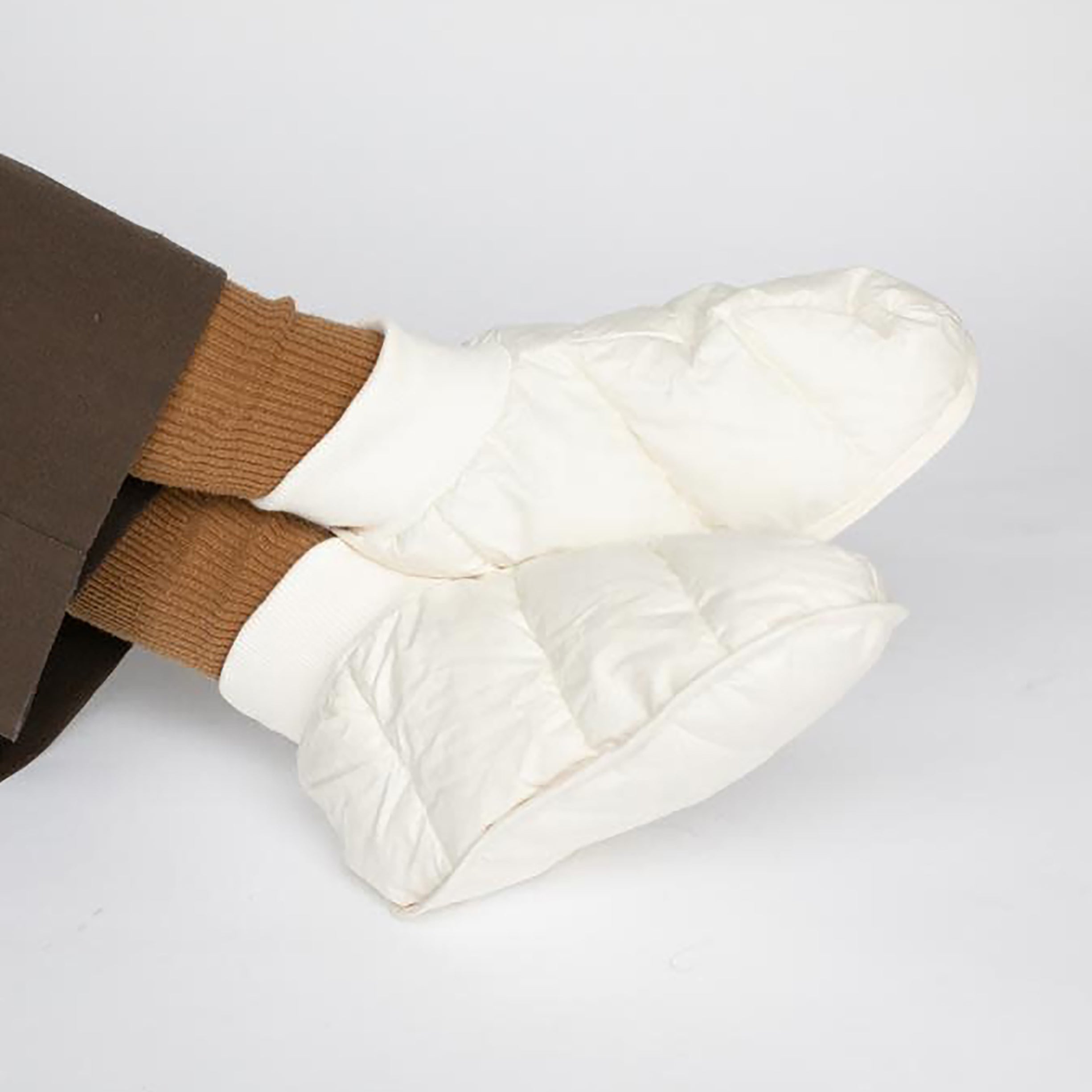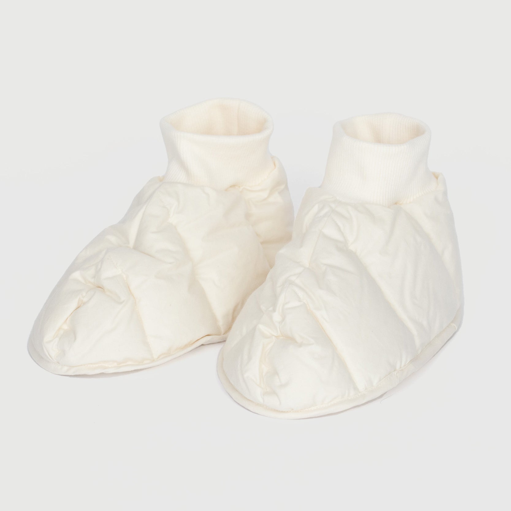 Bed socks made from duck down. Lightweight, super snug 'pillows' to keep your feet warm during the colder months.