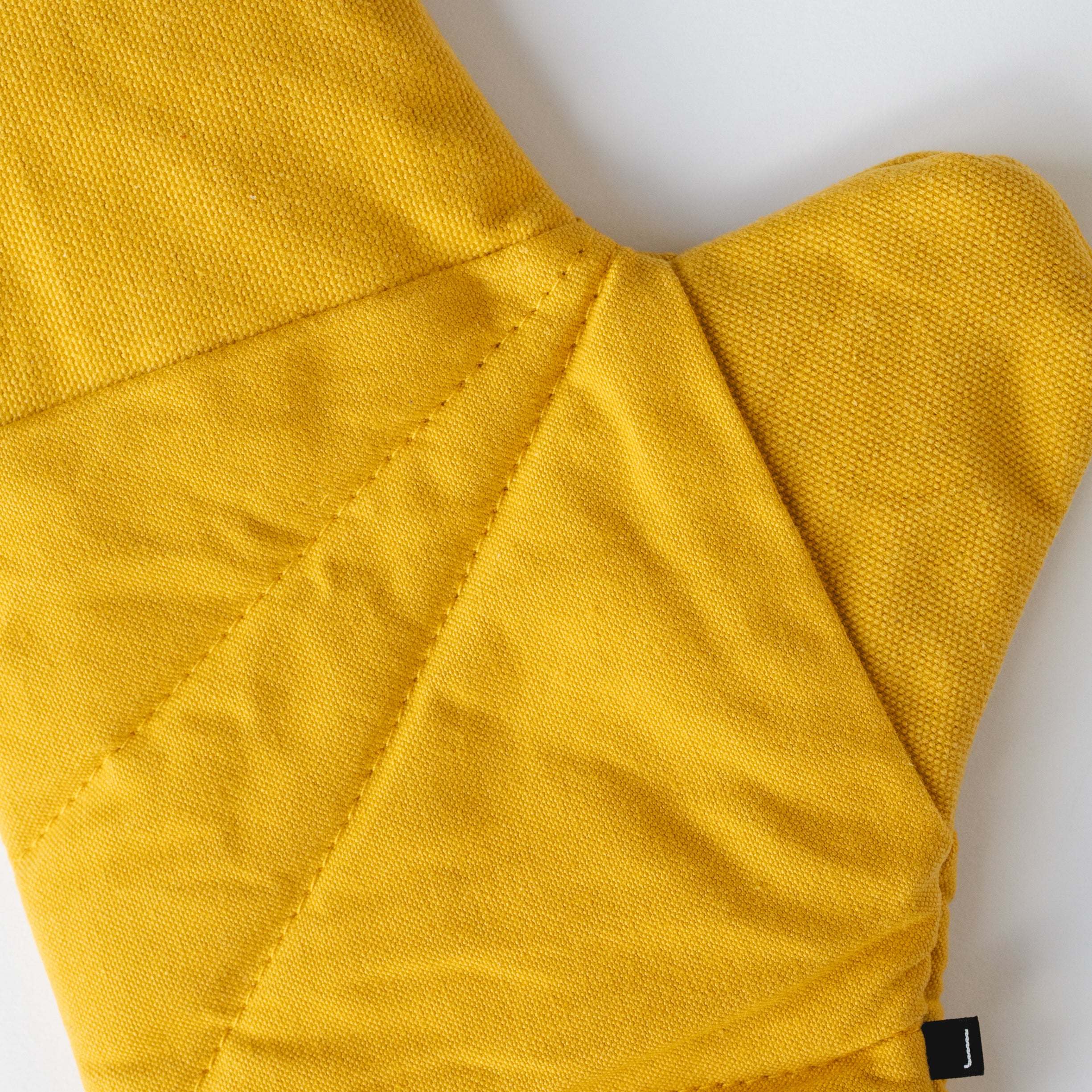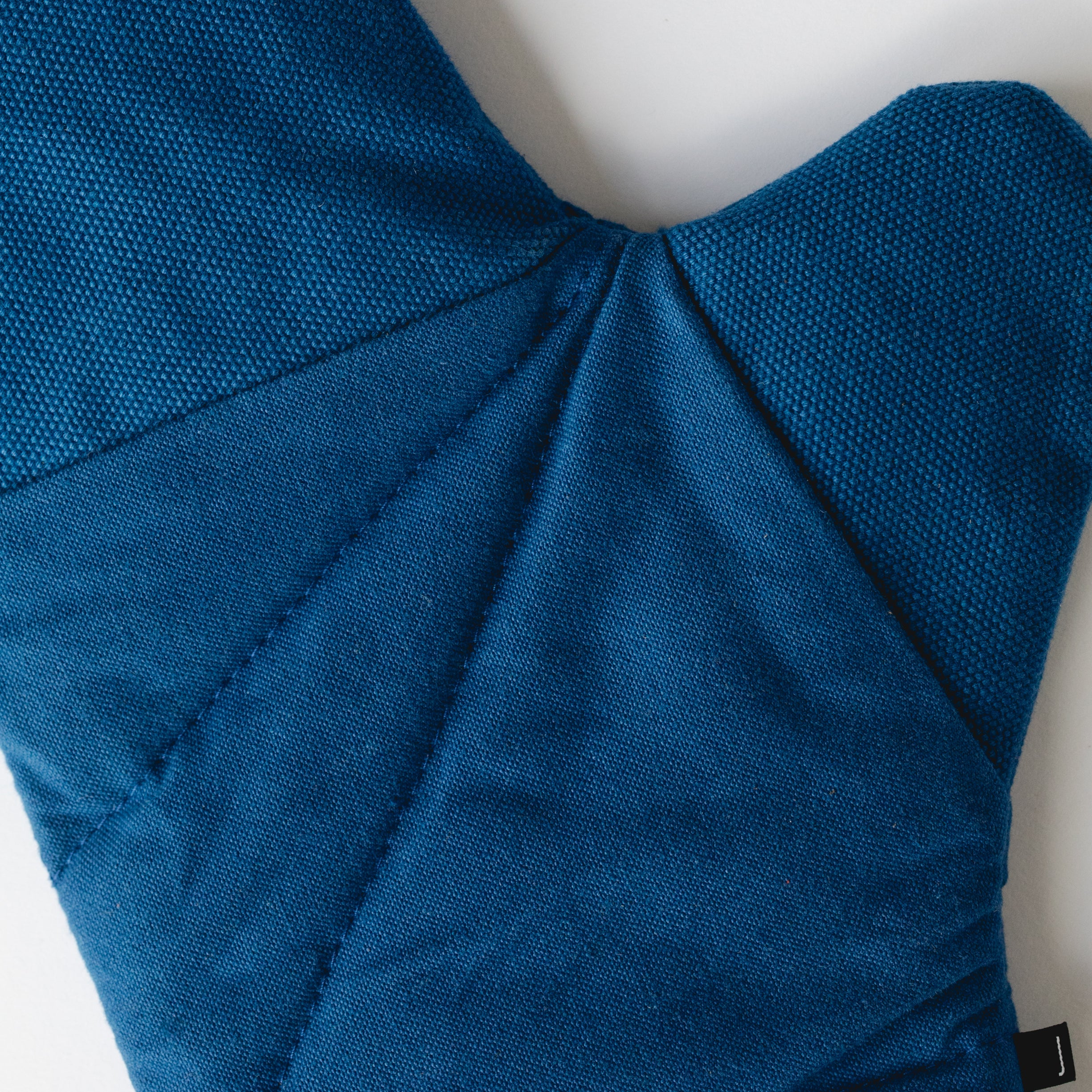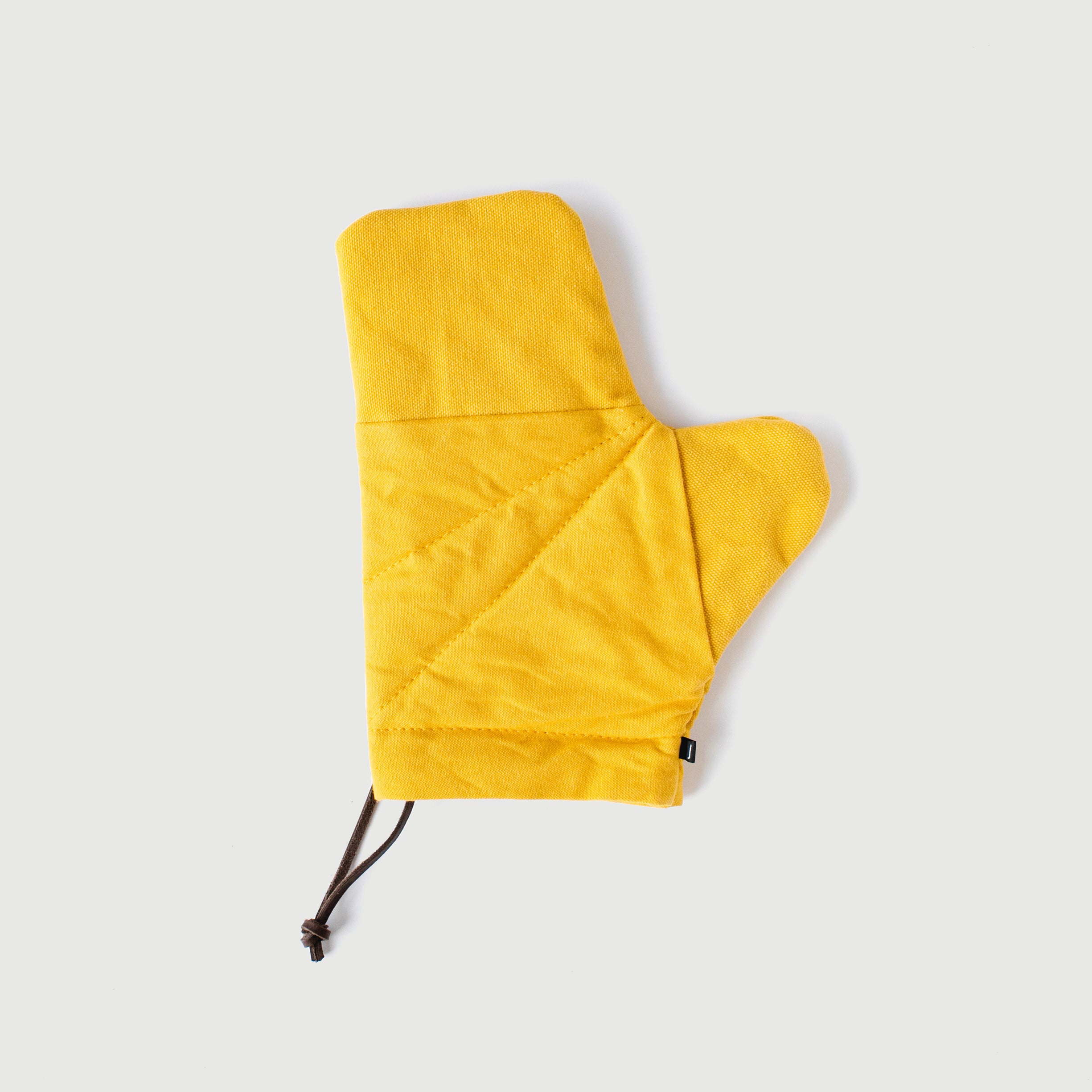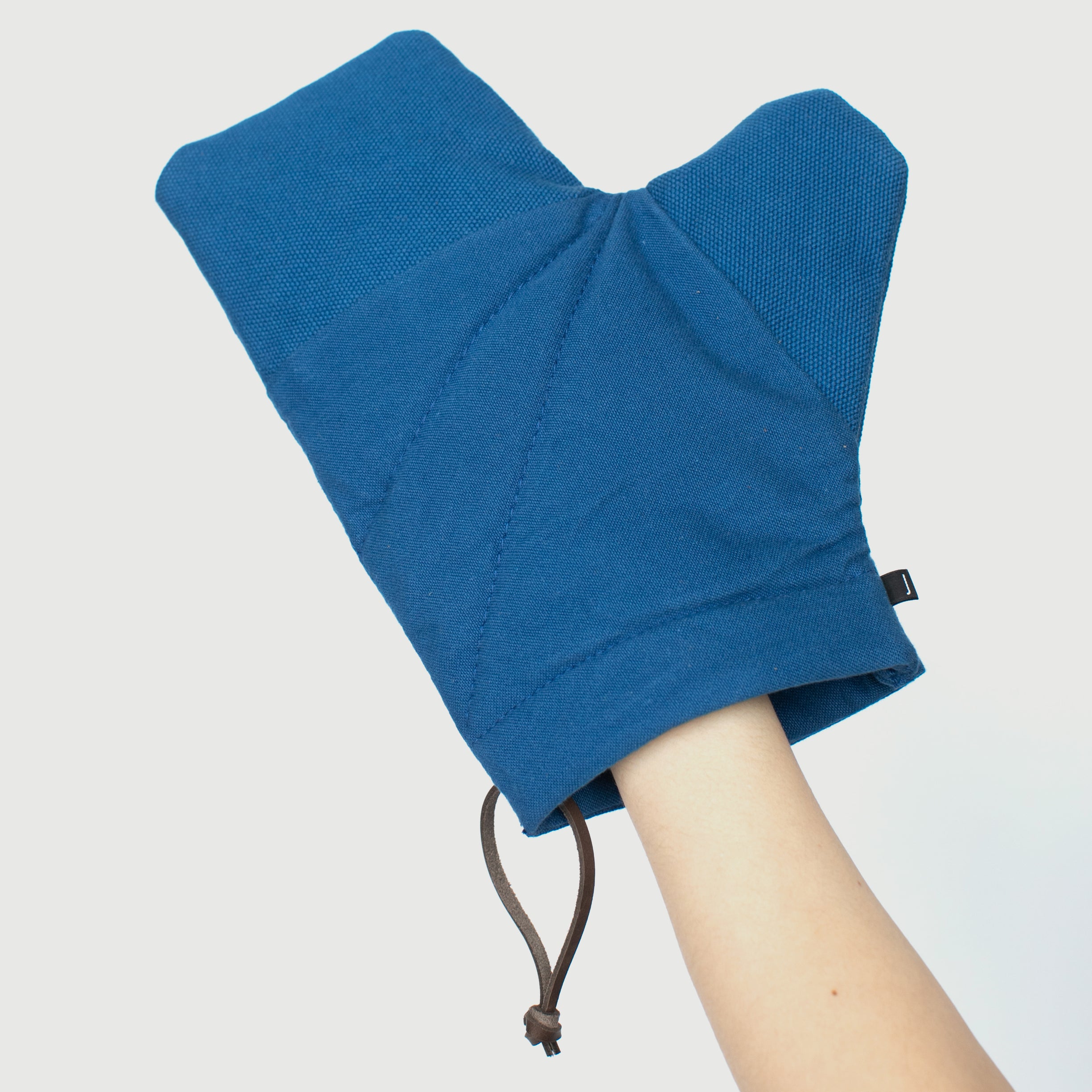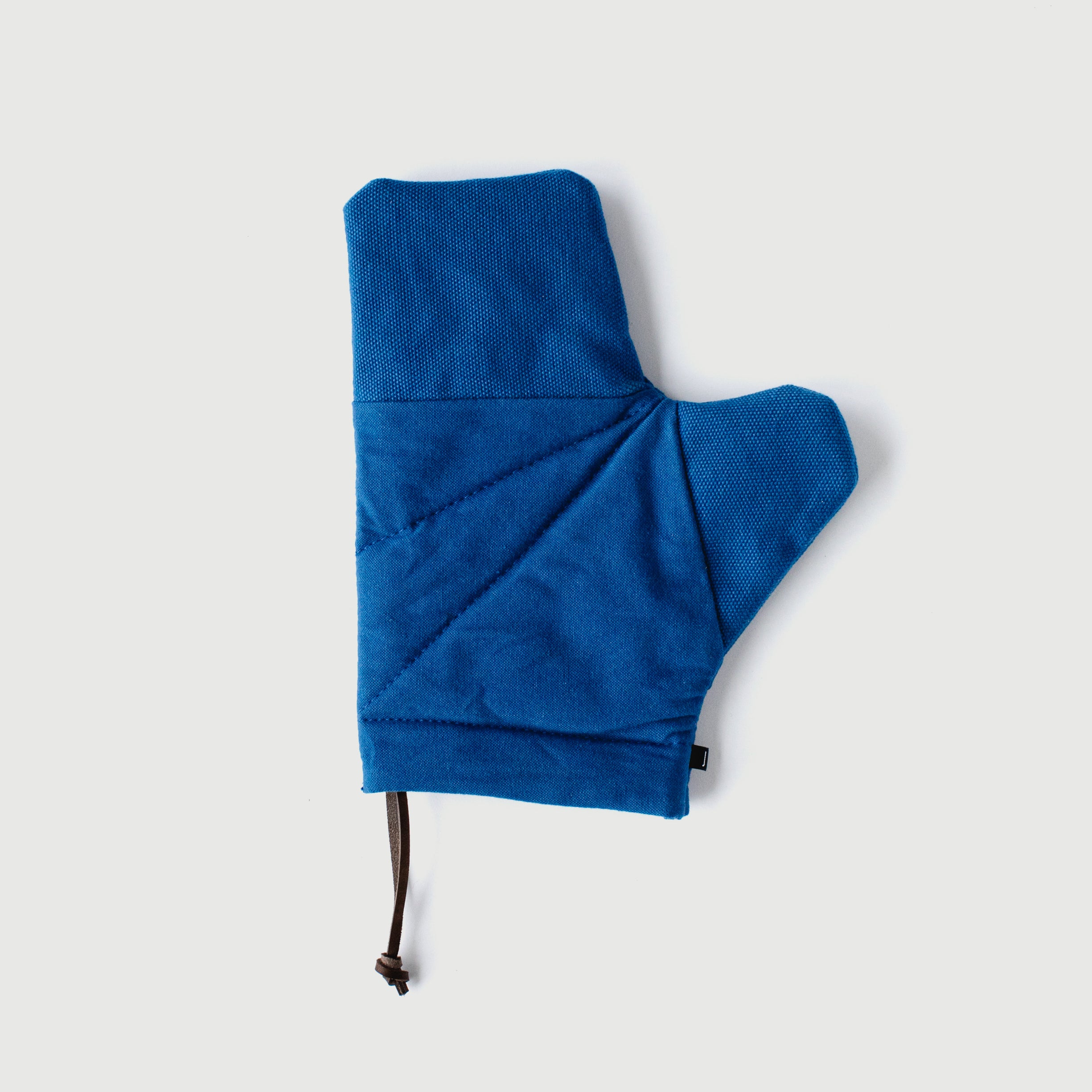 An oven mitt made from Kurashiki sailcloth* constructed with two different thicknesses of canvas. The thicker canvas protects the fingers and the more flexible one, your palm. The stitching is carefully designed to ensure a comfortable fit.