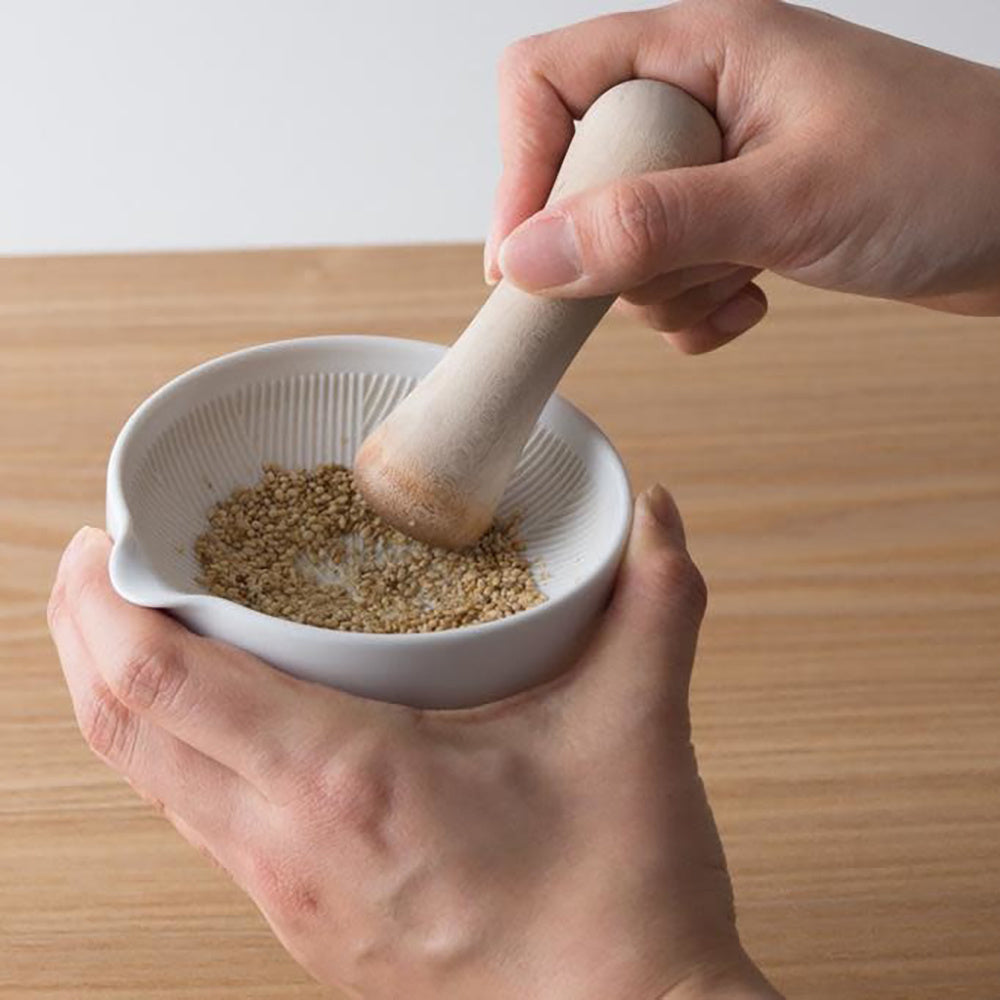 Fine and distinctively structured the Sitaku Pestle and Mortar Set is useful to grate small amounts when you need it. Created for Kihara by leading Japanese designer Makoto Koizumi, the Sitaku collection brings together a variety of kitchen tools in a modular, compact, stackable design.