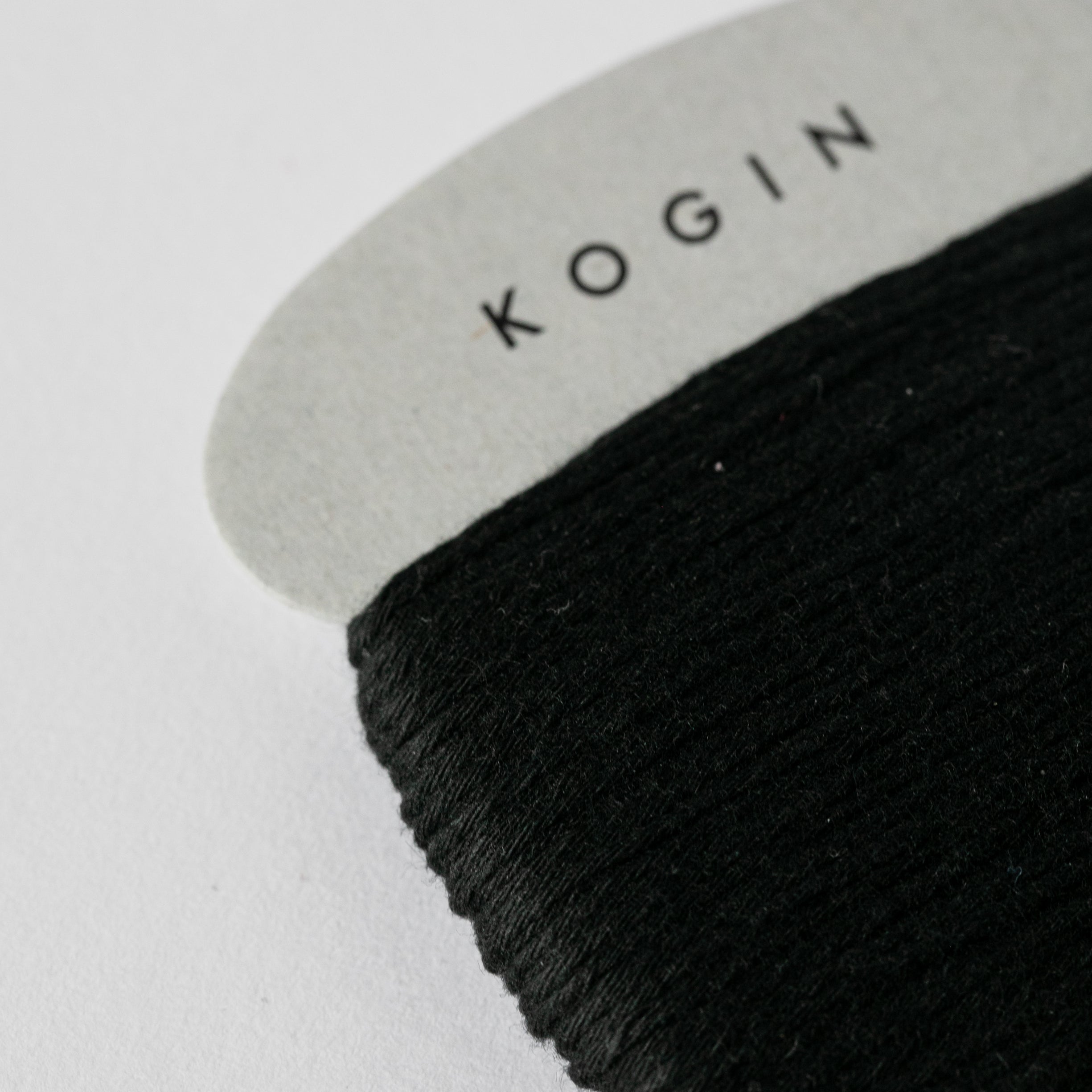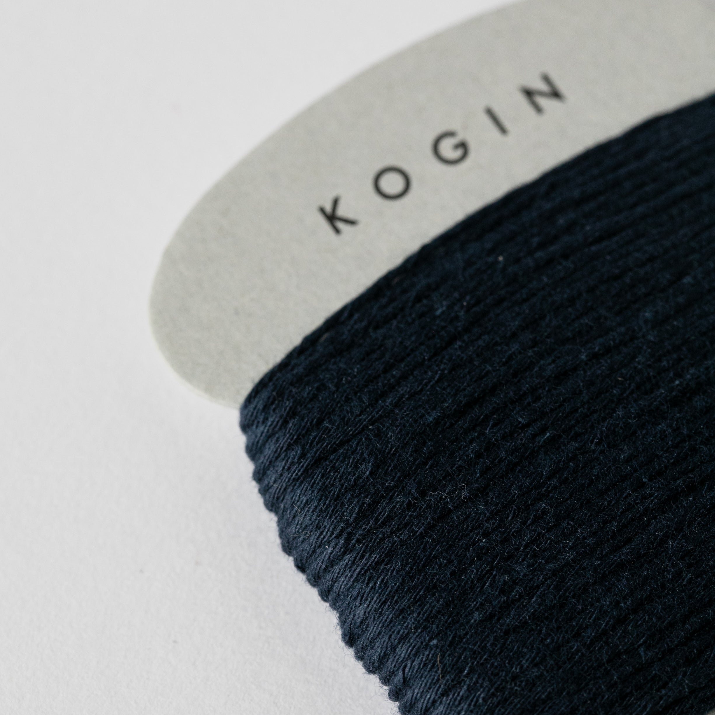 Kogin, originating from Aomori's Tsugaru area in the Edo era, is a technique for reinforcing fabric and retaining warmth. The thread is matte, and the stitches are soft and beautiful, crafted by adjusting thread composition and twisting time.
