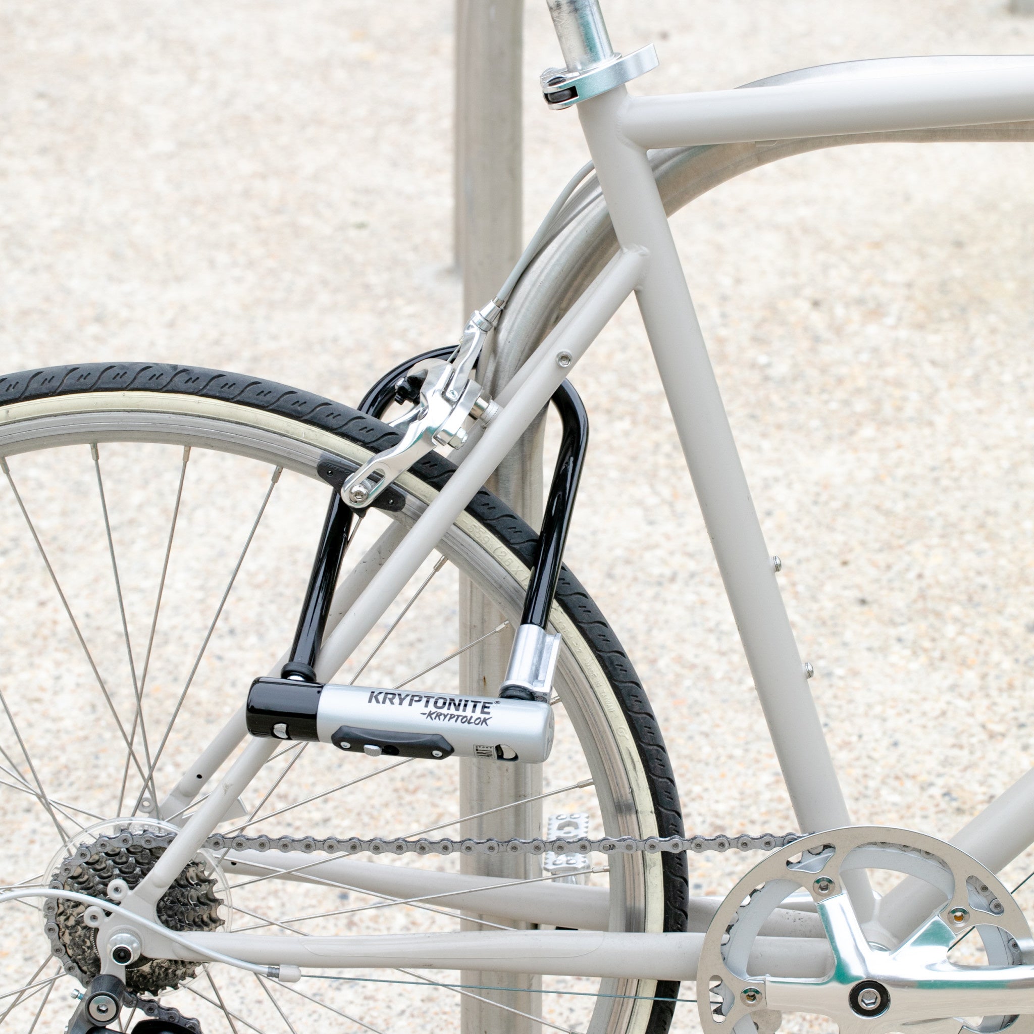 Our go-to D lock for good value Sold Secure Gold protection. Kryptonite’s Kryptolok Standard D-Lock with Flexframe Bracket boasts a 13mm high-performance, hardened steel shackle that resists cutting and leverage attacks. The new patent pending hardened double deadbolt design gives additional protection against twist attacks, while the high-security disc-style cylinder is pick and drill resistant. The lock is complete with anti-rattle bumpers to reduce noise when riding.