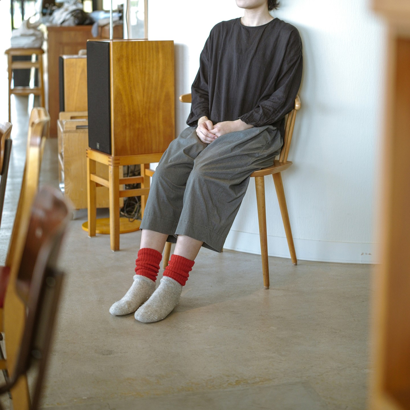 Finding machinery that could knit such thick yarn was a challenge but in Nara Prefecture, a centre for sock production in Japan, there are still old-fashioned, low gauge machines making it possible.