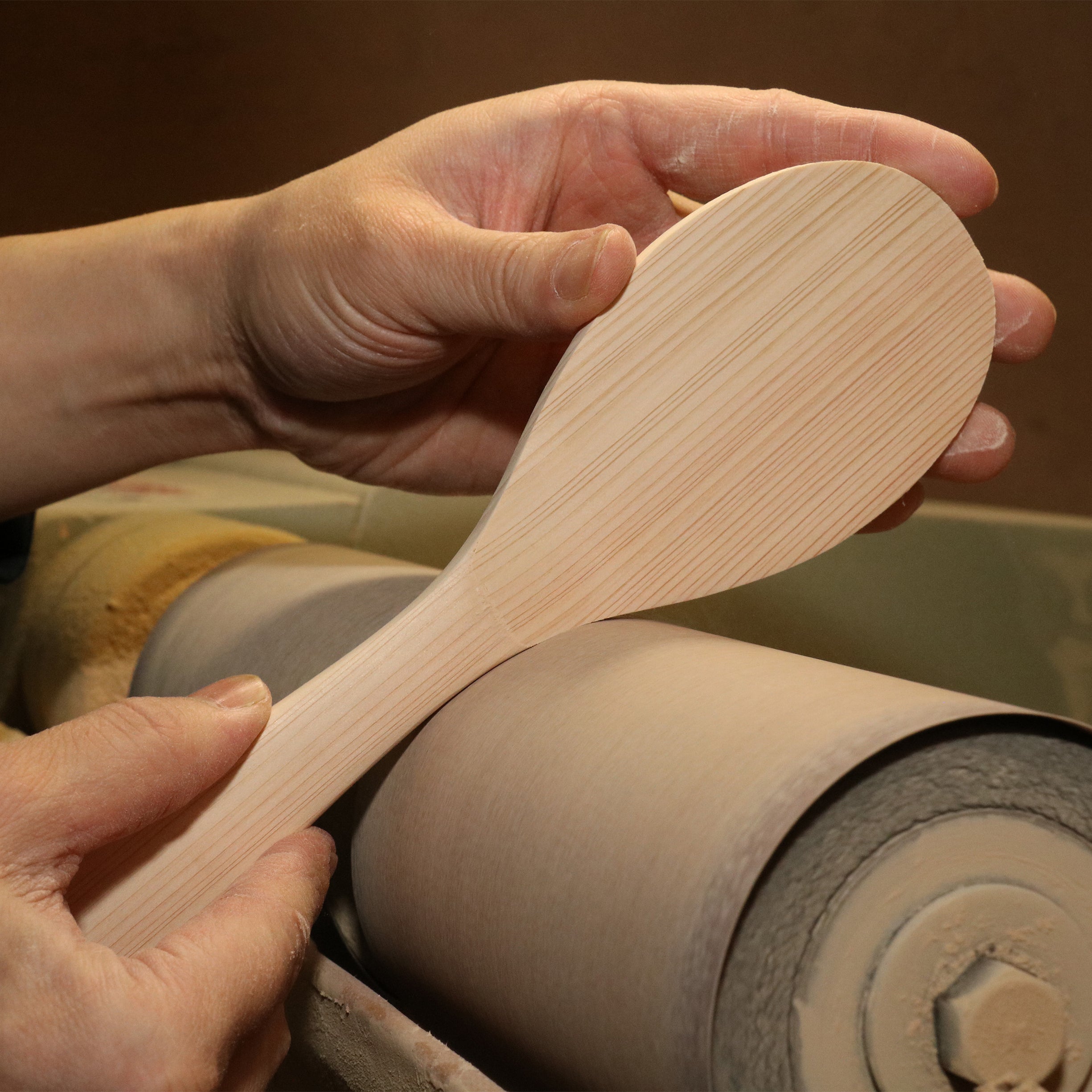 Handmade in Hiroshima prefecture, Japan, Miyajima Kougei Seisakusho produce beautiful, durable and functional kitchen tools. The raw material used is Yamazakura (Mountain Cherry Tree), a wood that’s abundant in the region and is both tough but flexible, so well suited to long-term use. Its also ages beautifully, gradually turning darker over time.