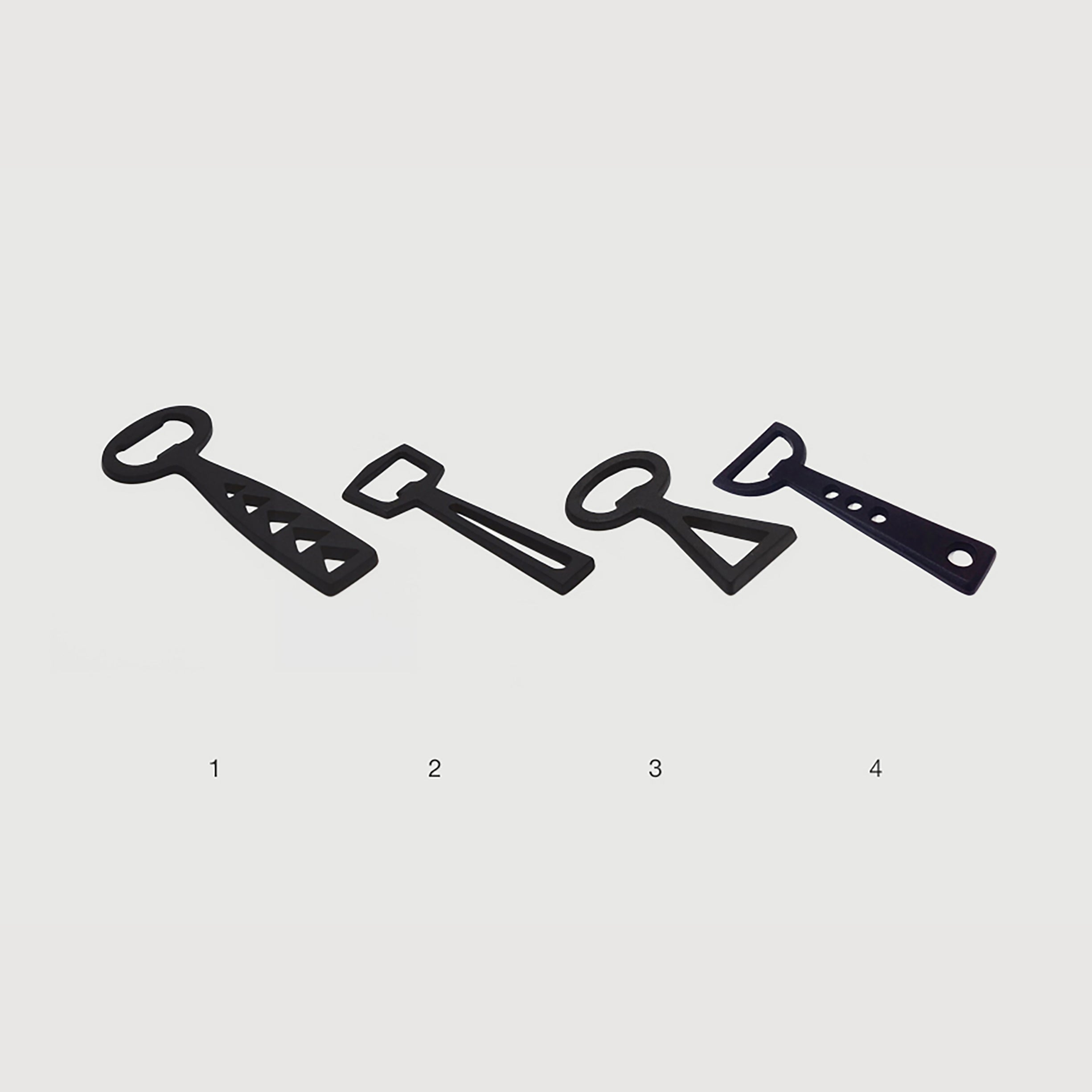 Simplicity, subtle decoration and excellent craftsmanship characterise all of Nobuho Miya's works. This series of openers cast in iron are finished with an urushi (Japanese lacquer) coat for a rich black that is resistant to rust.