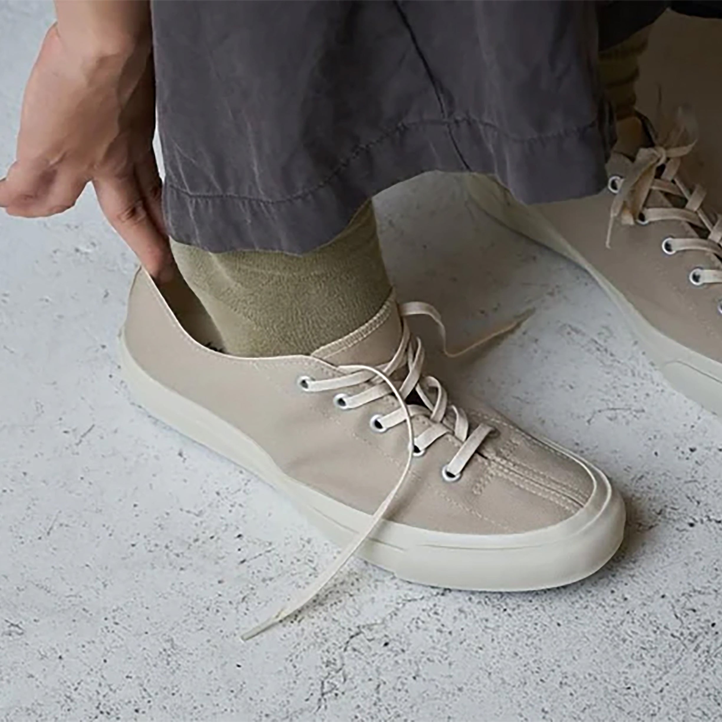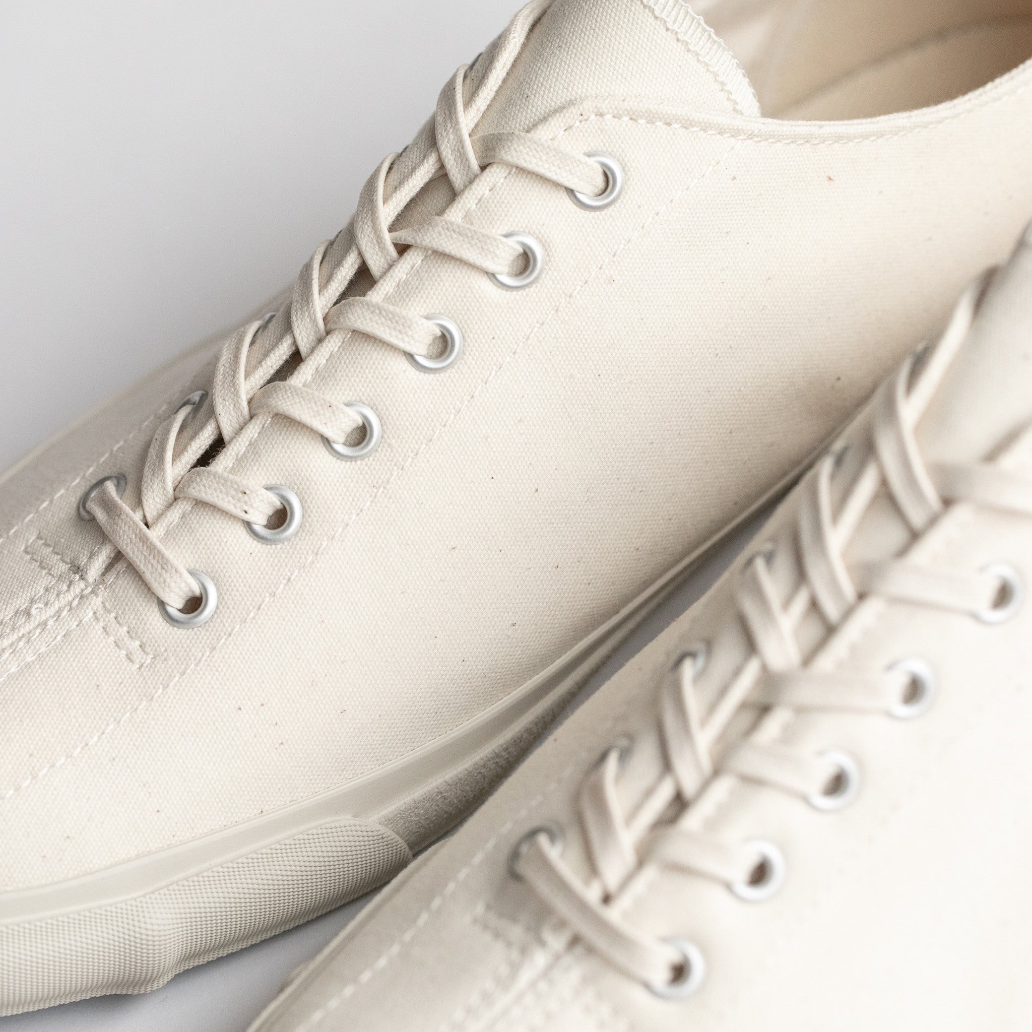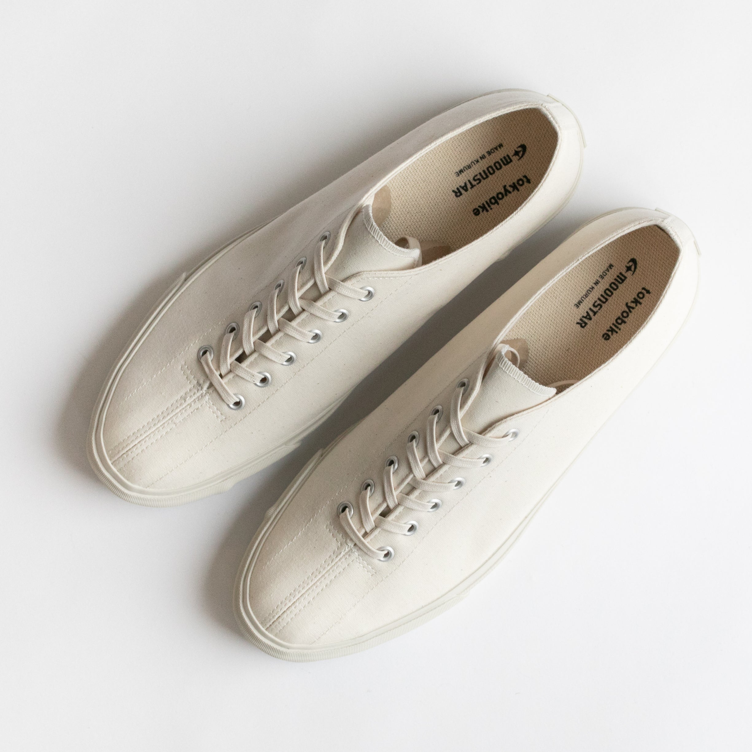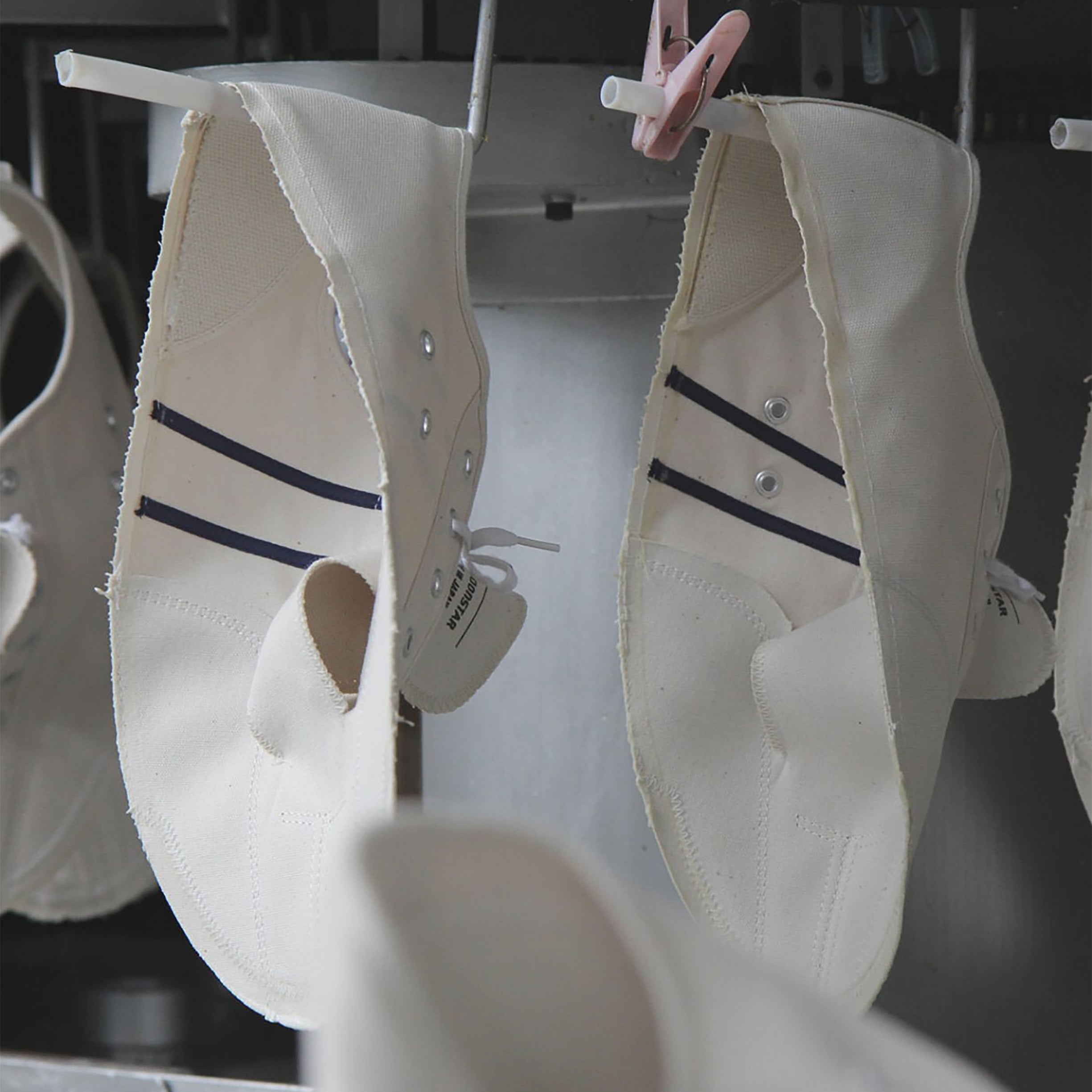 Founded in Kurume, Japan in 1873, MoonStar started out producing Tabi (sock-like footwear with a rubber sole for workers). They are better known today for their classic plimsolls produced under the brand ‘Shoes Like Pottery’ – a reference to the manufacturing process which has similarities to the way ceramics are produced. The soles are fired in a kiln for a smooth but tough finish while the canvas comes from Kurume cloth produced on hand looms that give a unique texture.
