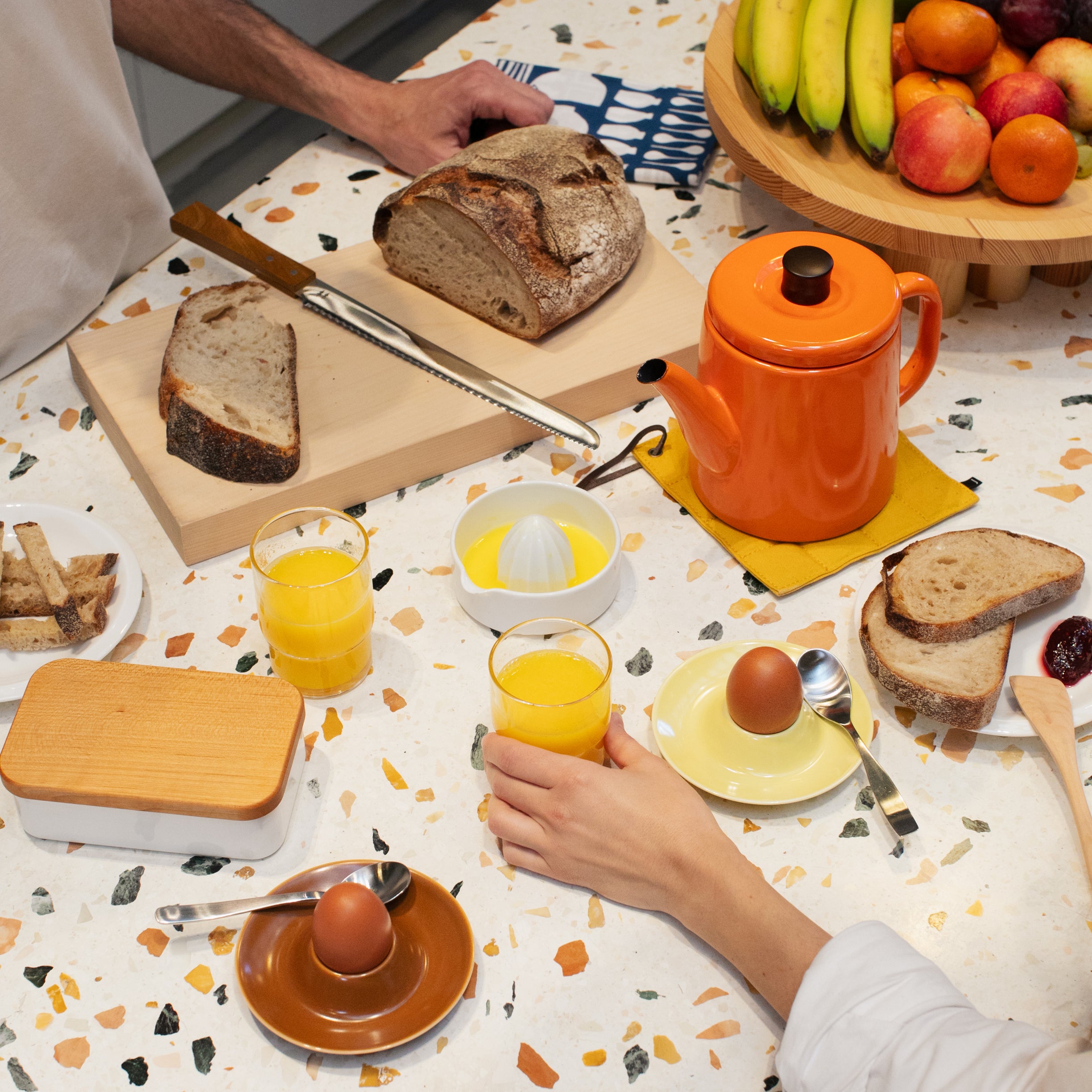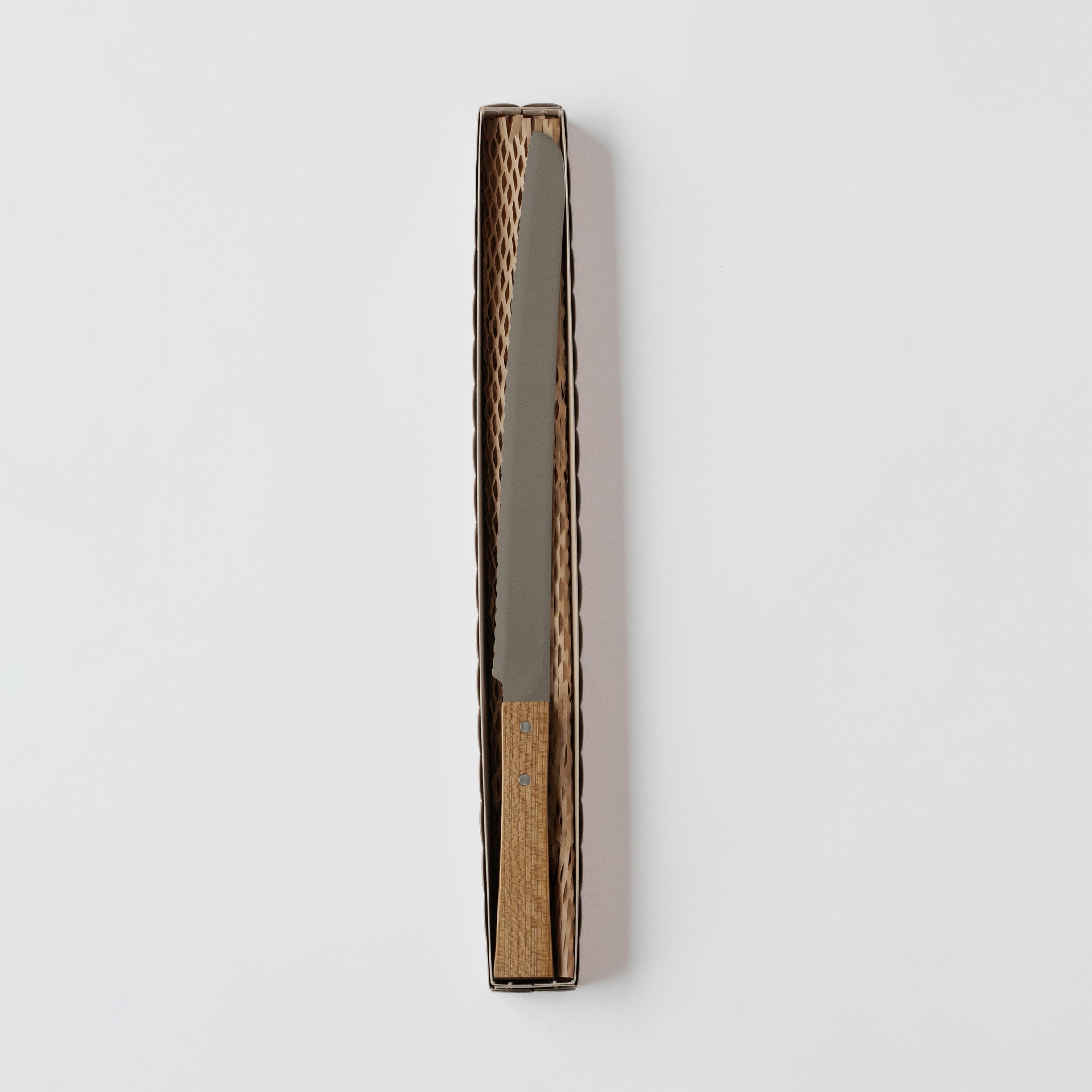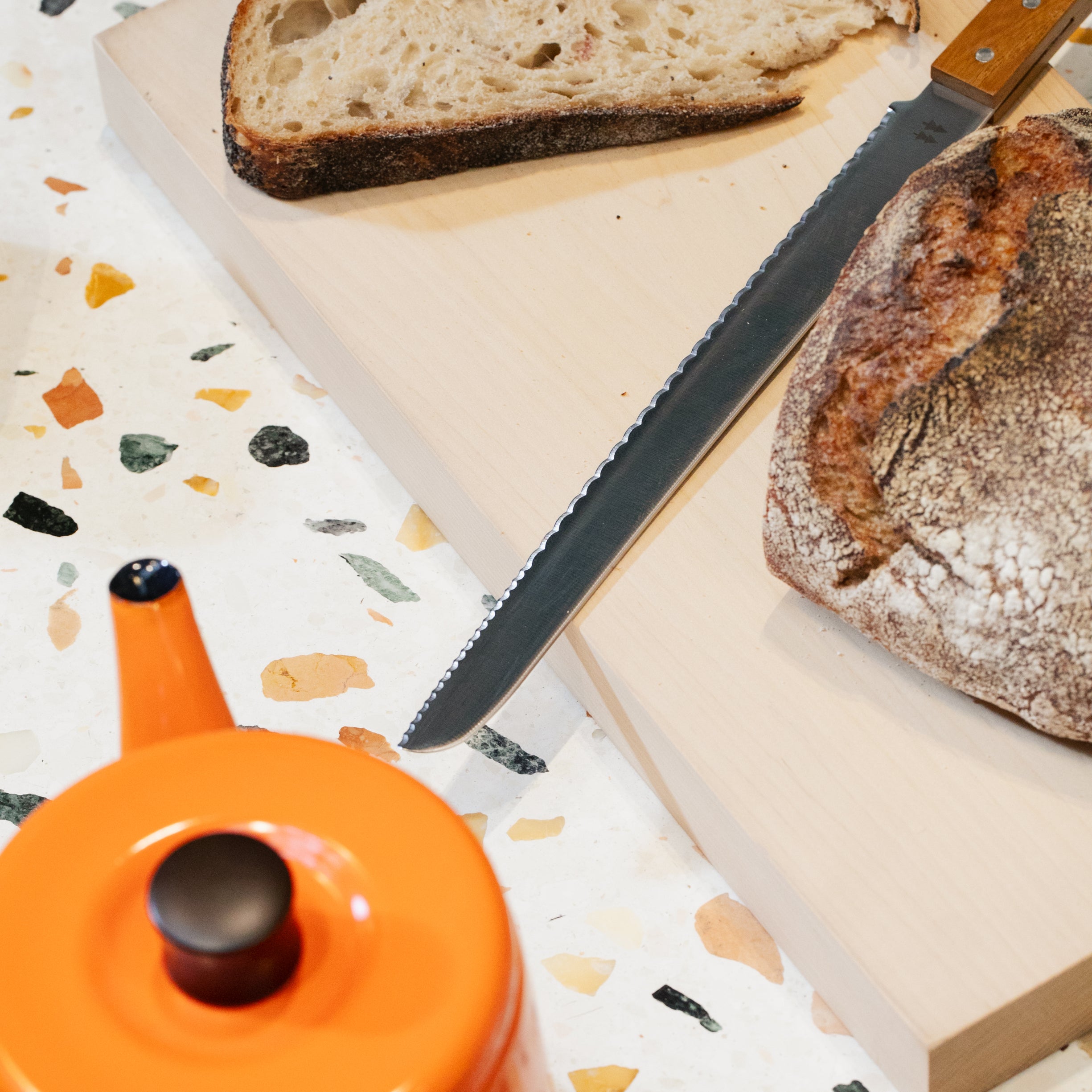 A bread knife that promises minimal crumbs! Made with two types of serrated edge, a fine sharp edge near the tip for cutting the surface of hard, crusty breads and a gentle curved edge for the soft centre, producing clean slices with less crumbs.