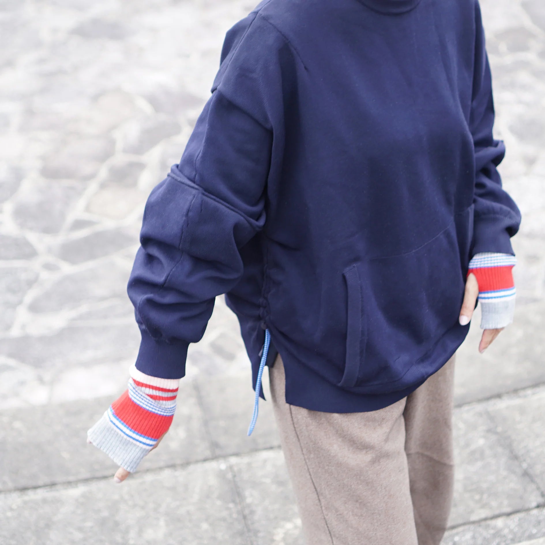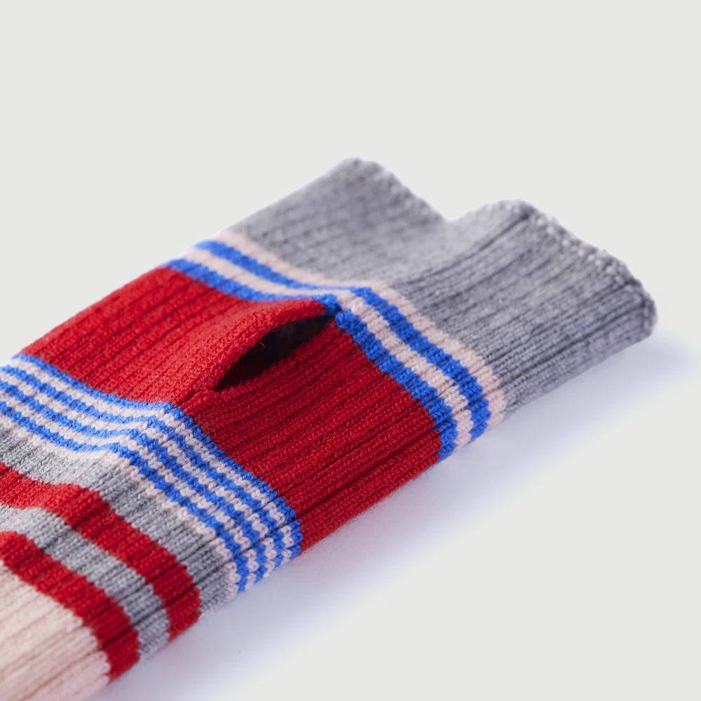 Colorful arm-cover gloves with a thumb hole, designed to keep your hands and wrists warm indoors and outdoors.
