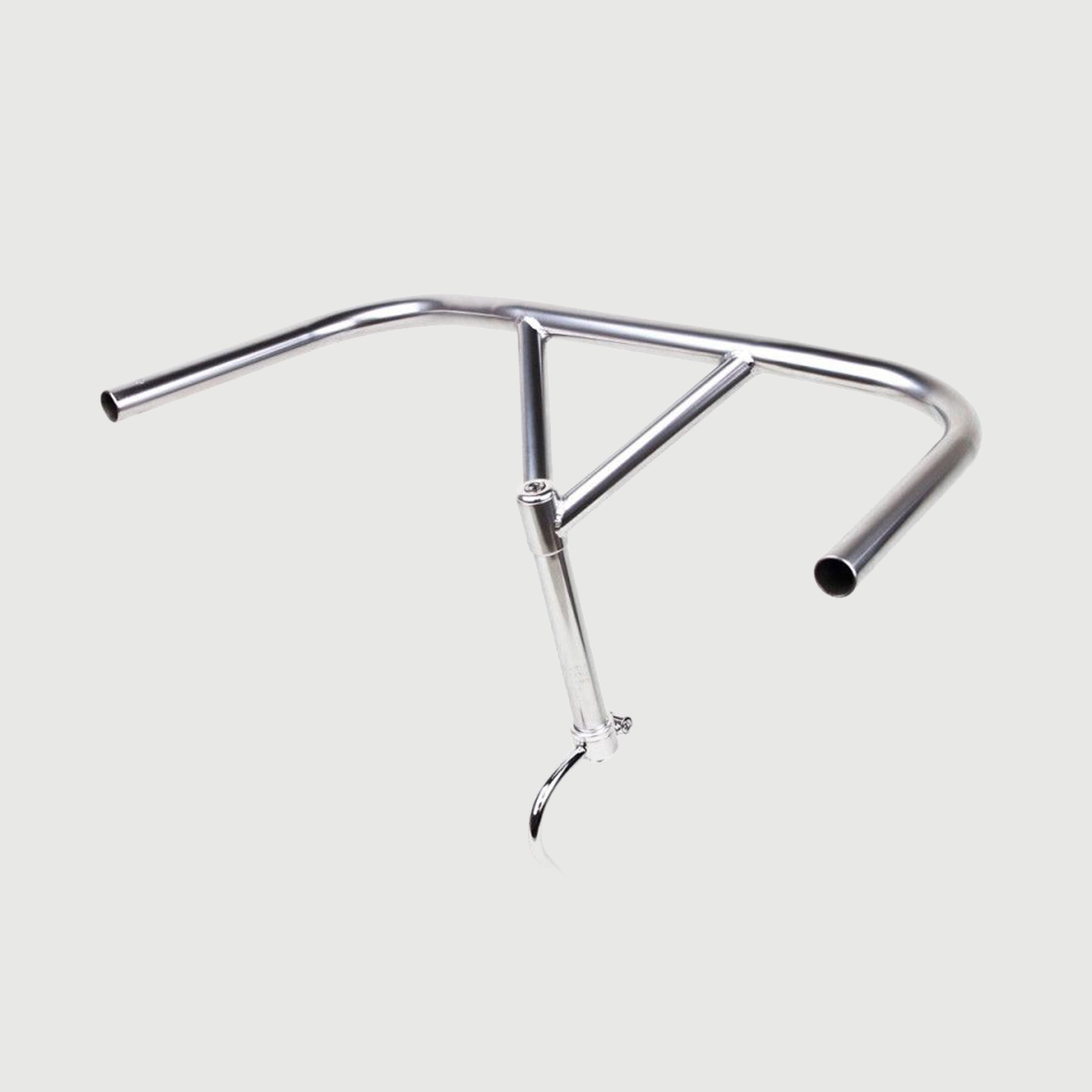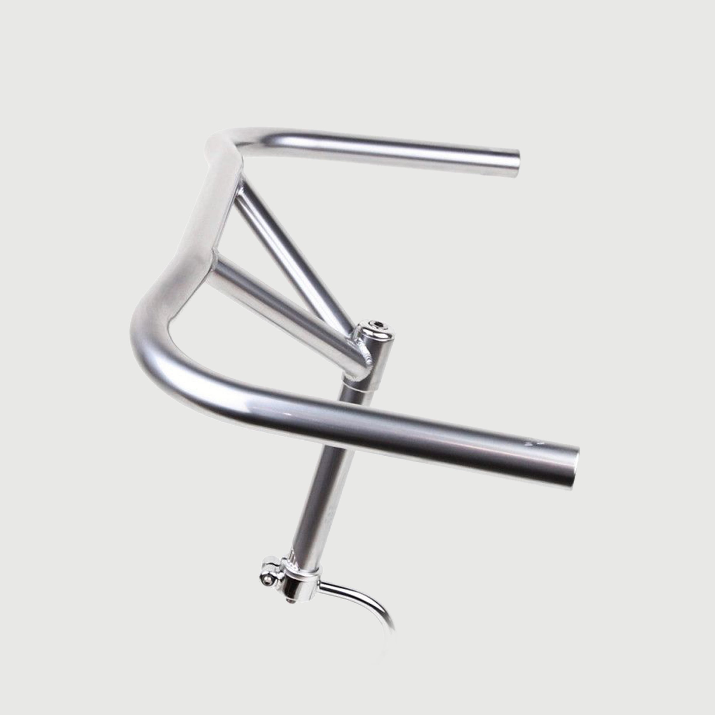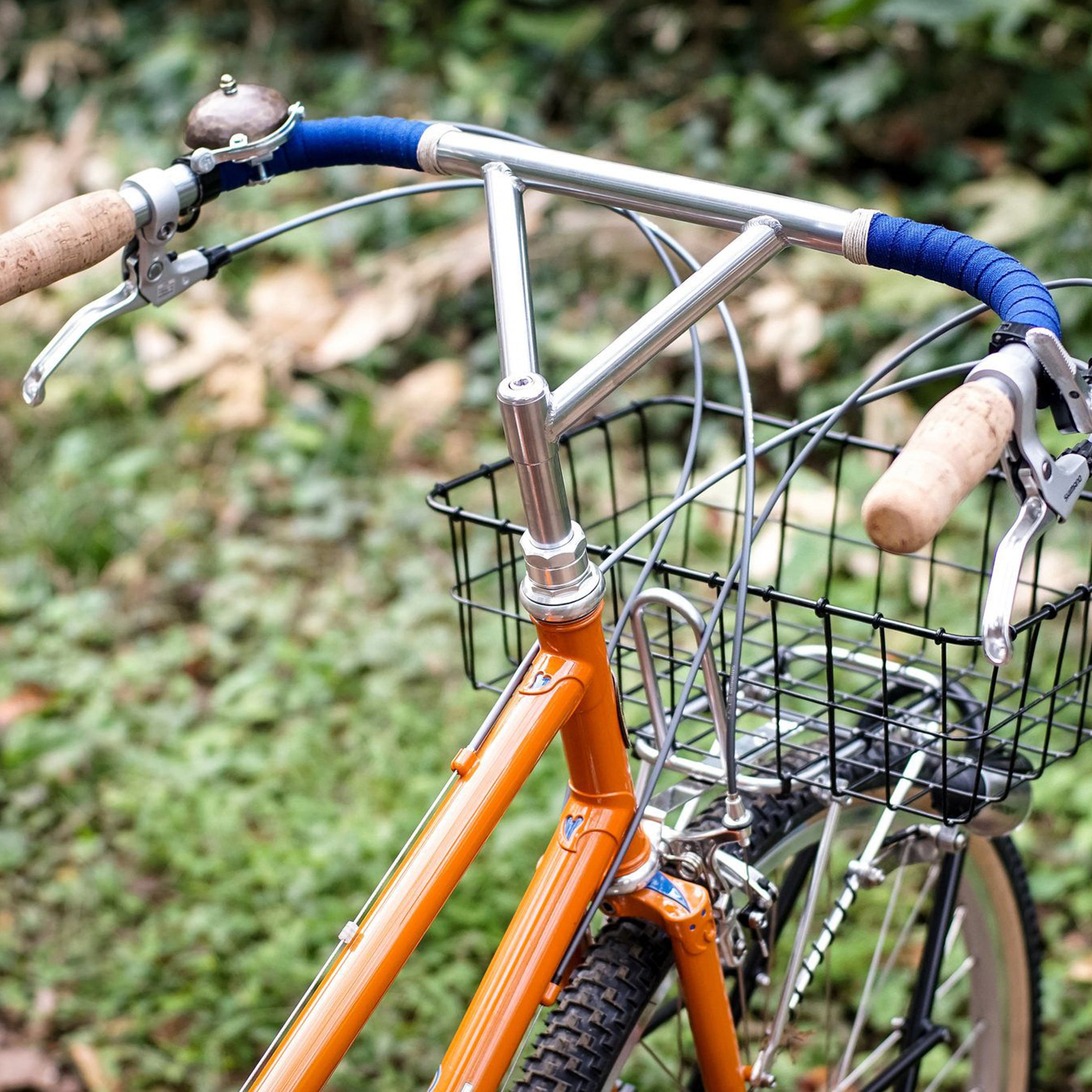 Introducing the Promenade Bar B357 CHOCO BAR - a sturdy, chromoly handlebar by NITTO with an integrated thread-type stem. Designed in a Bullmoose style, it provides a secure feeling and is perfect for old-school MTBs and commuter bikes.