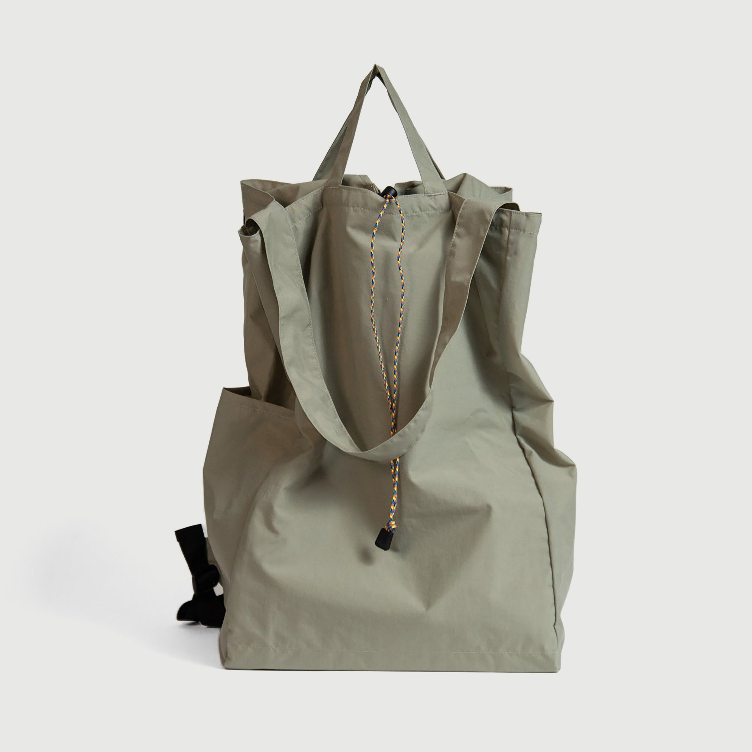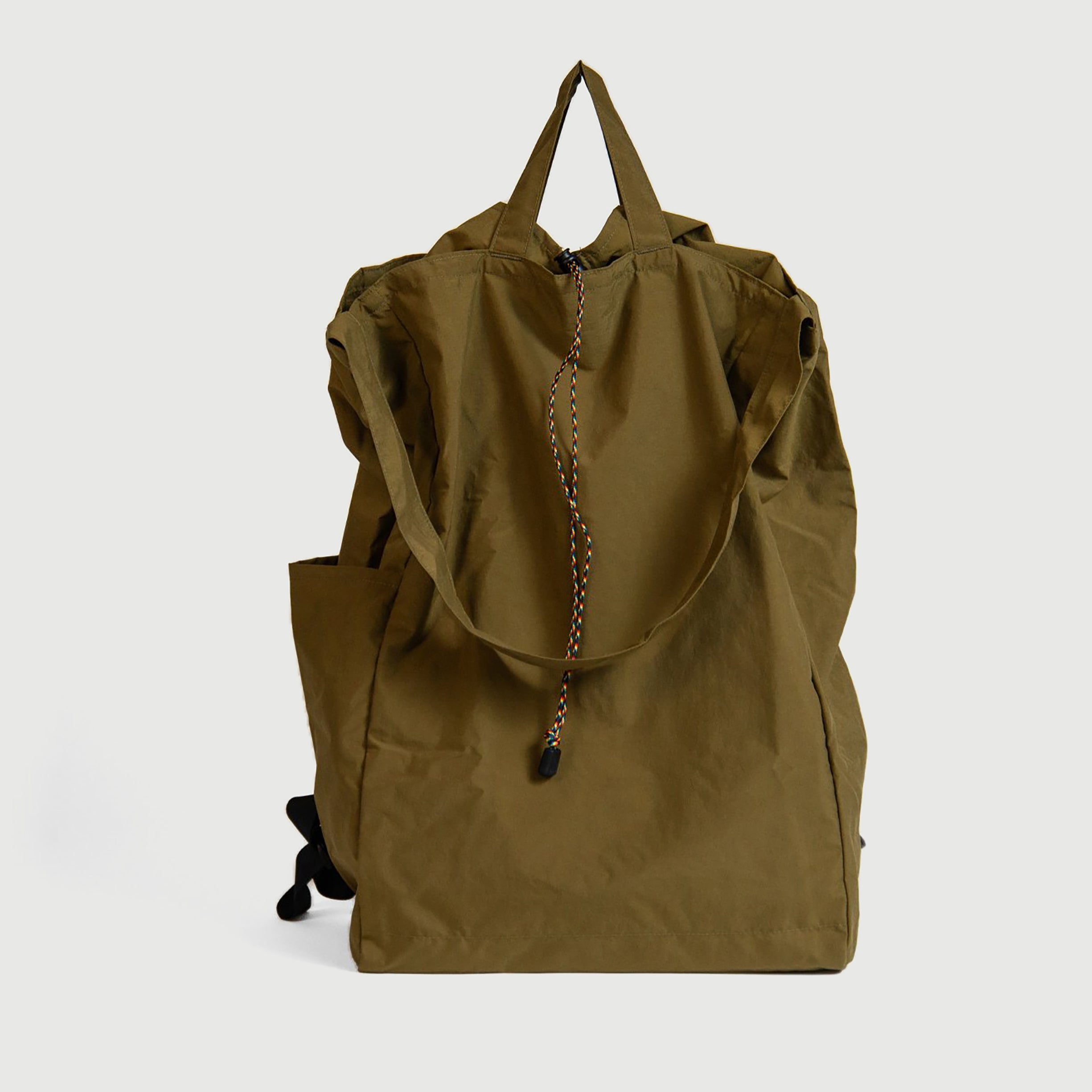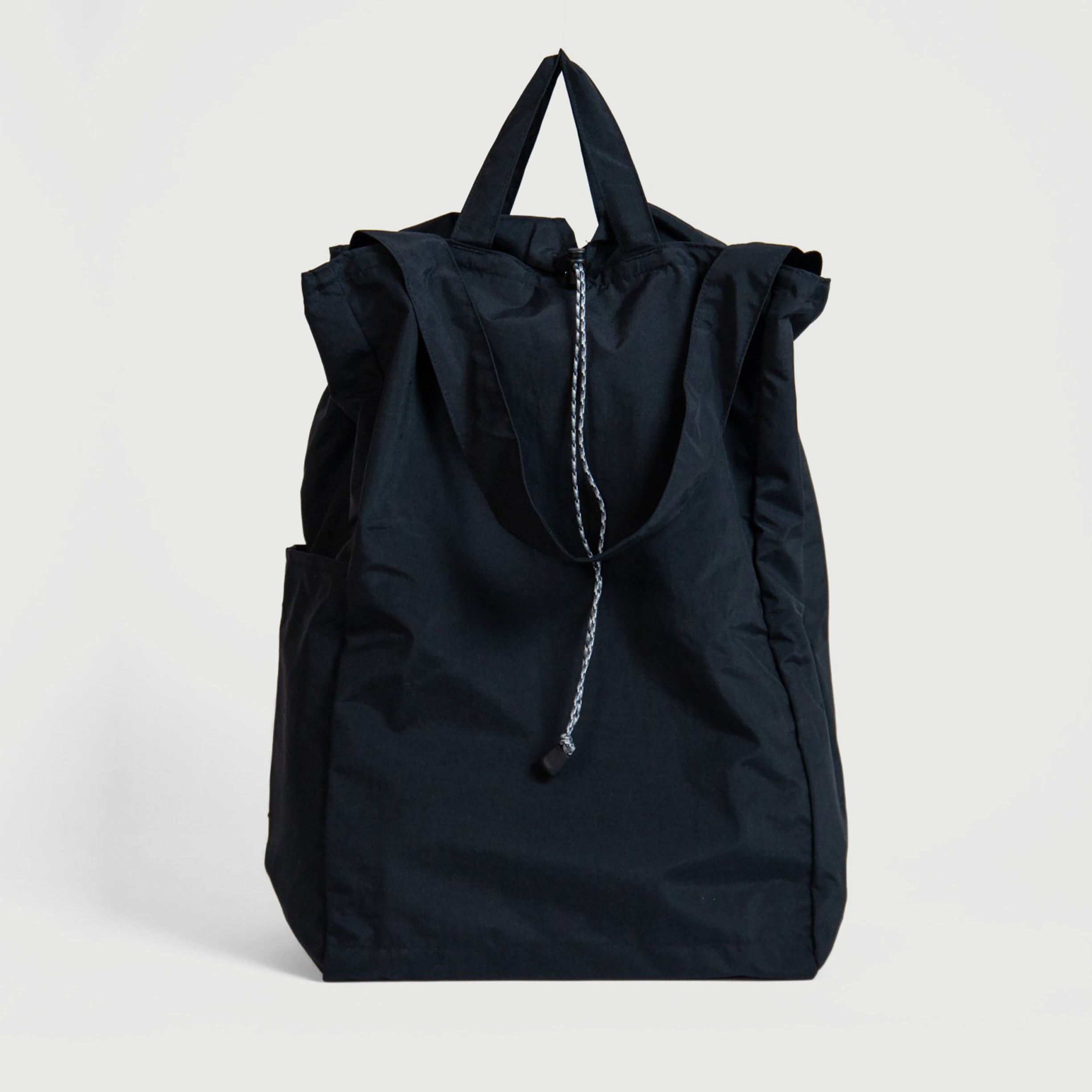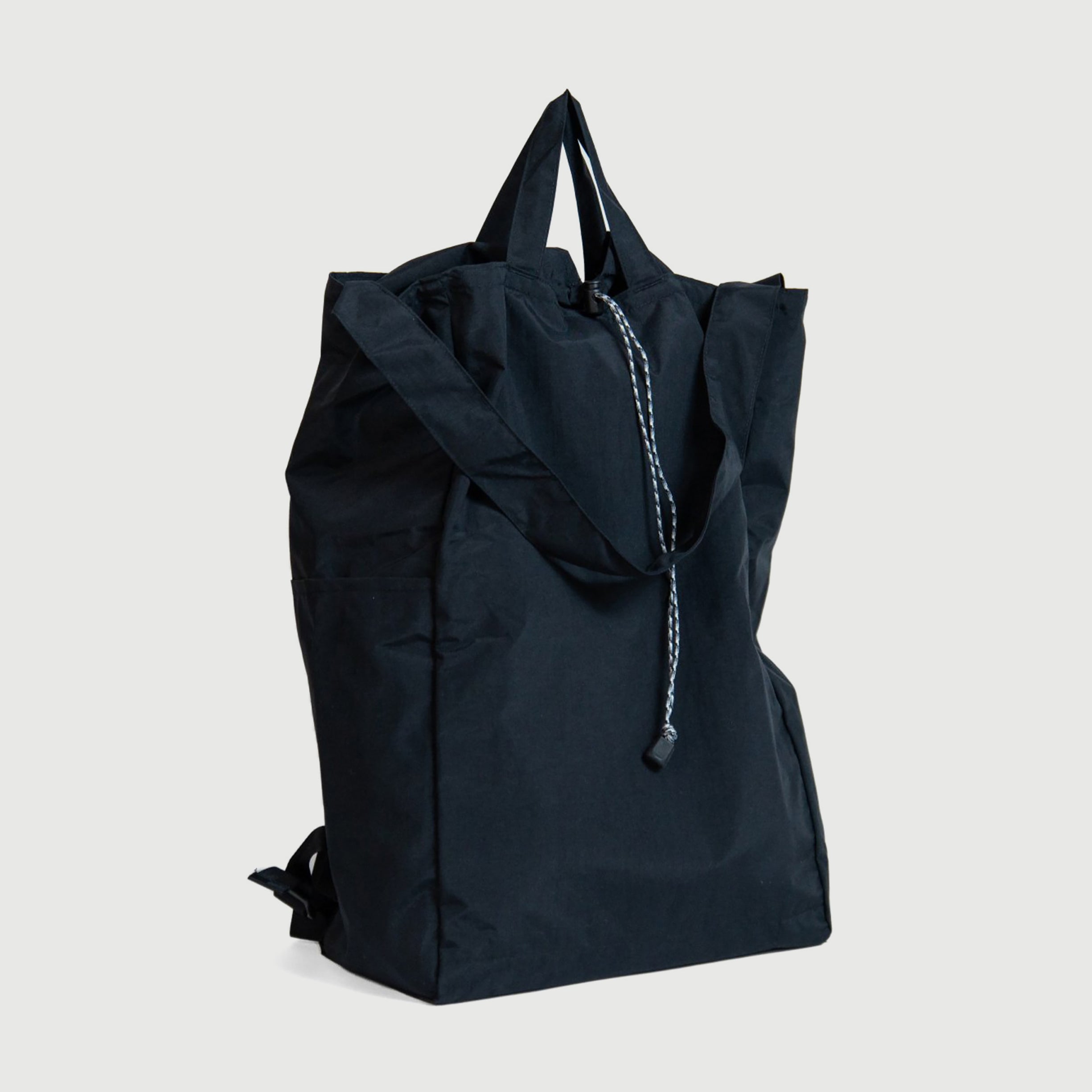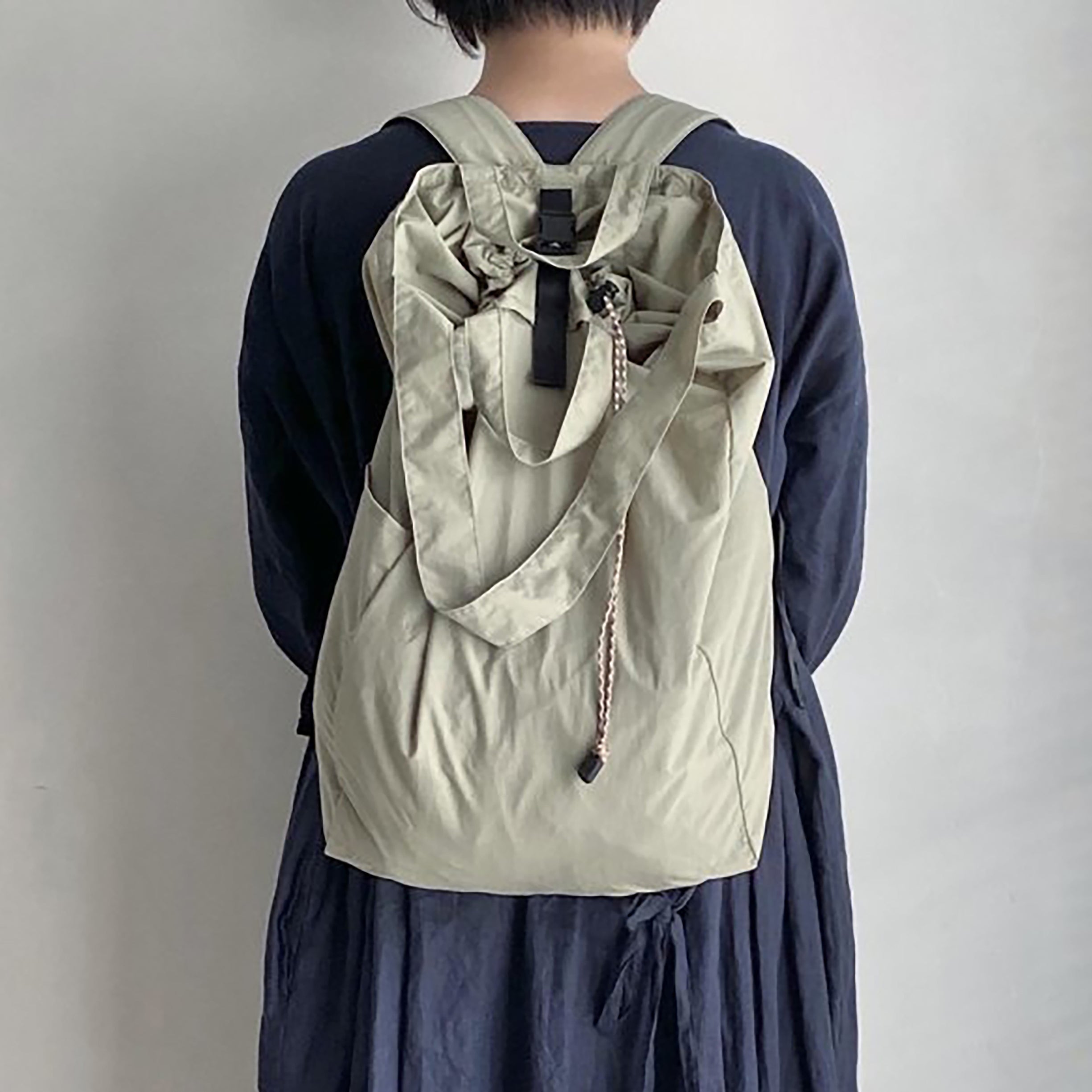 A super compact, lightweight, 3-way, packable bag - wear as a backpack, shoulder bag or carry with the handles. The fabric is made of nylon from Ishikawa Prefecture, and has been treated to be water repellent for use in light rain.