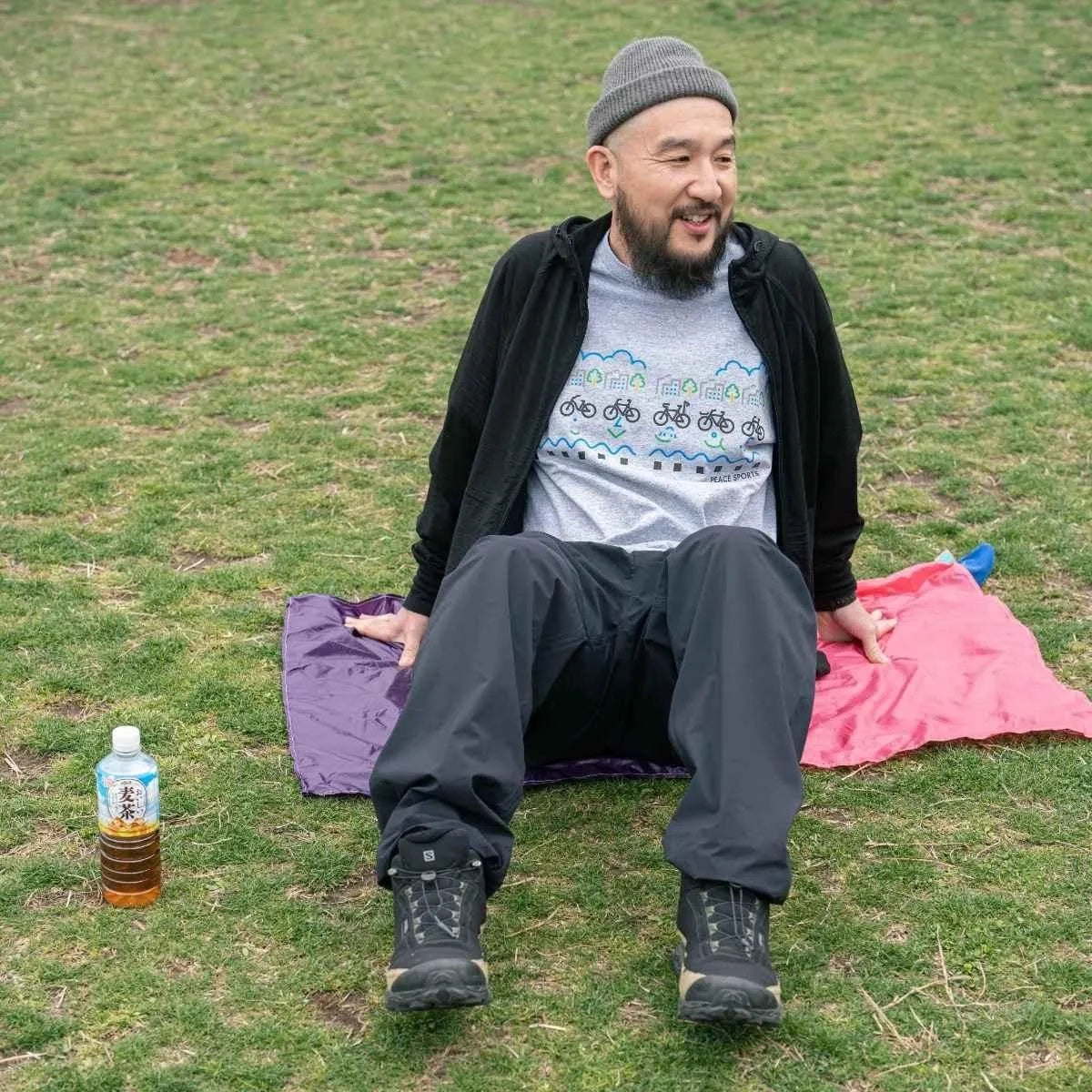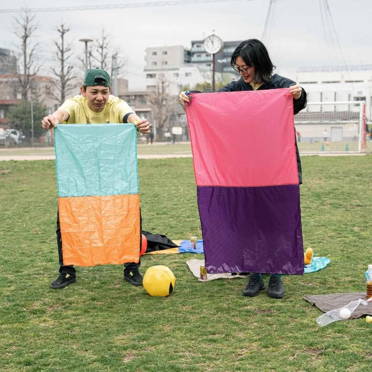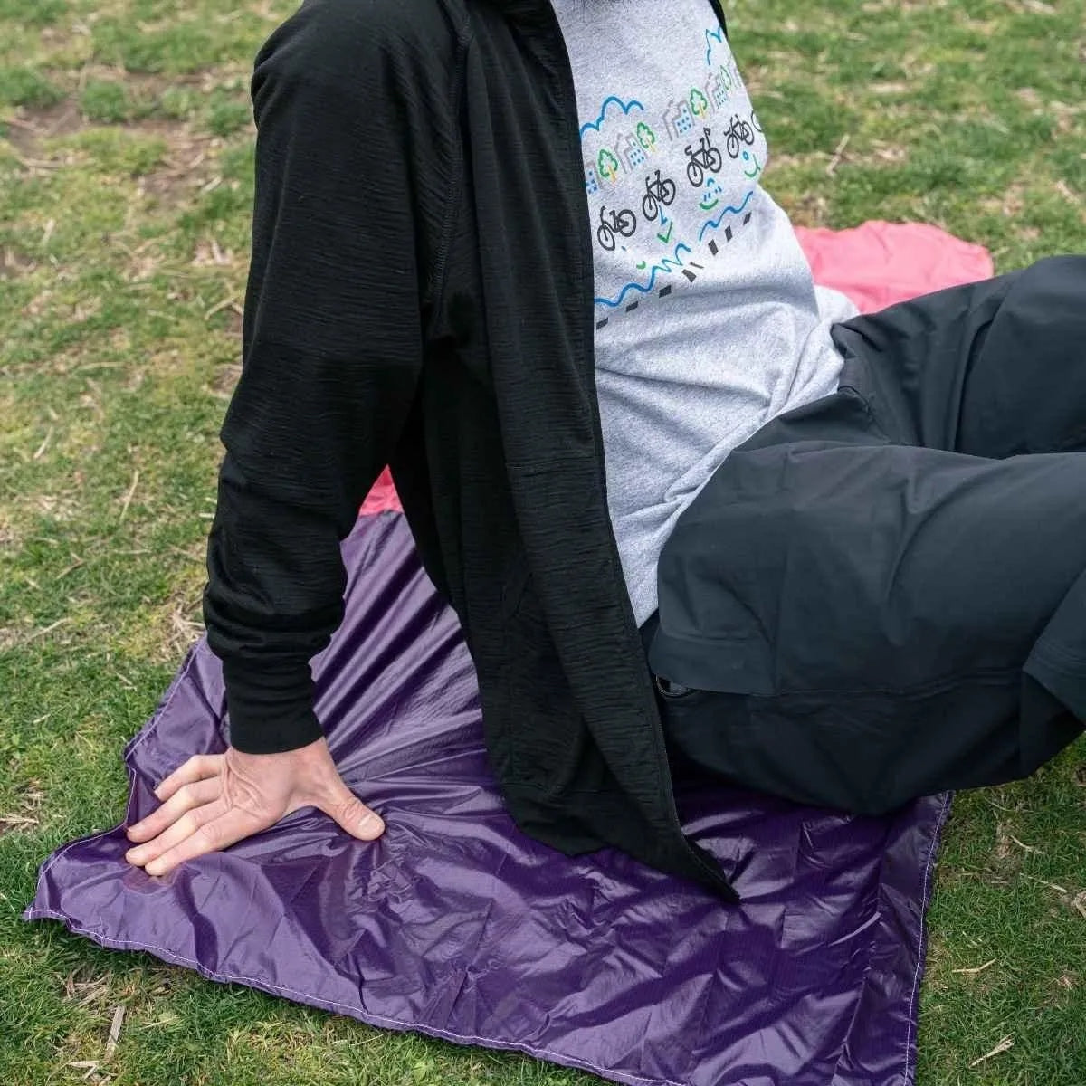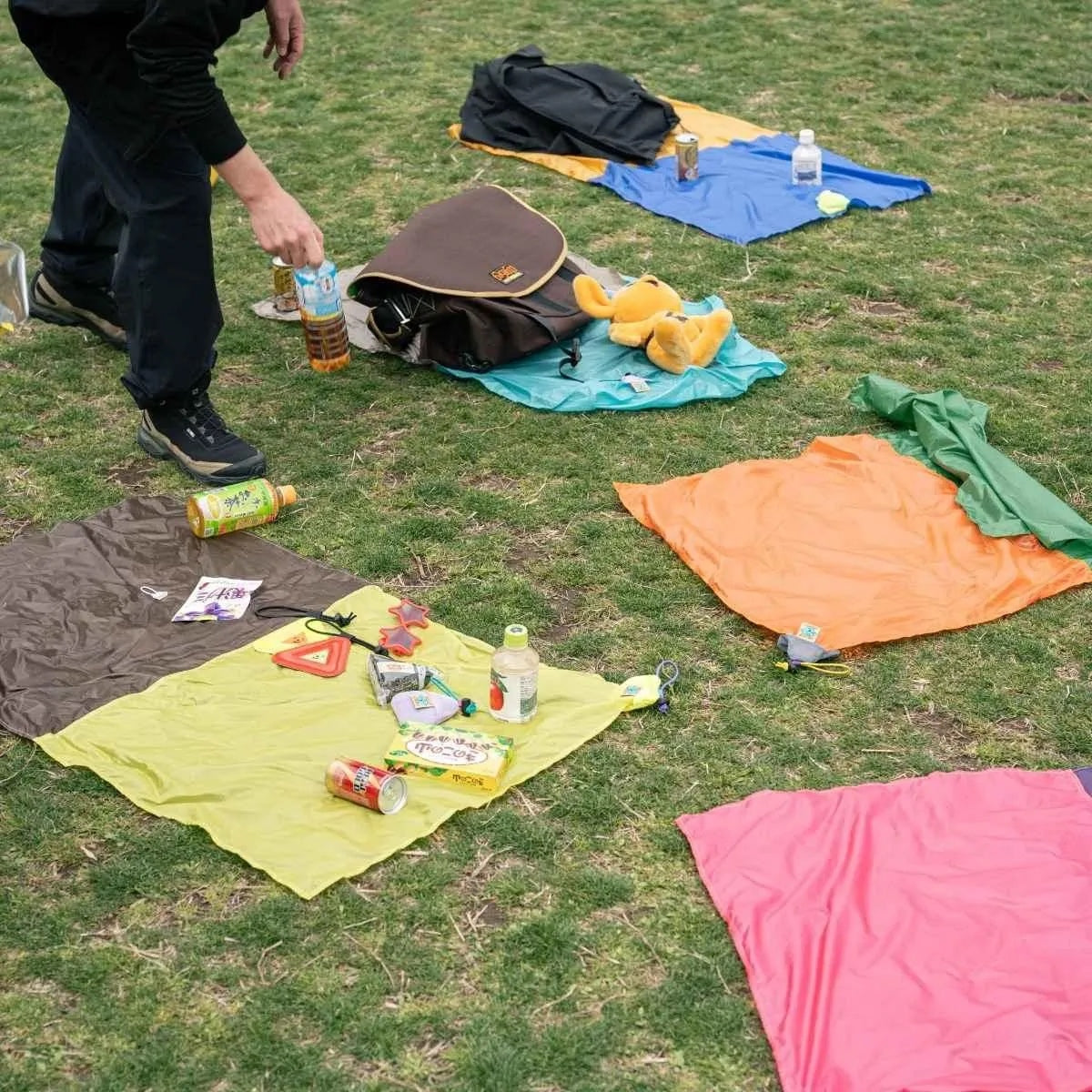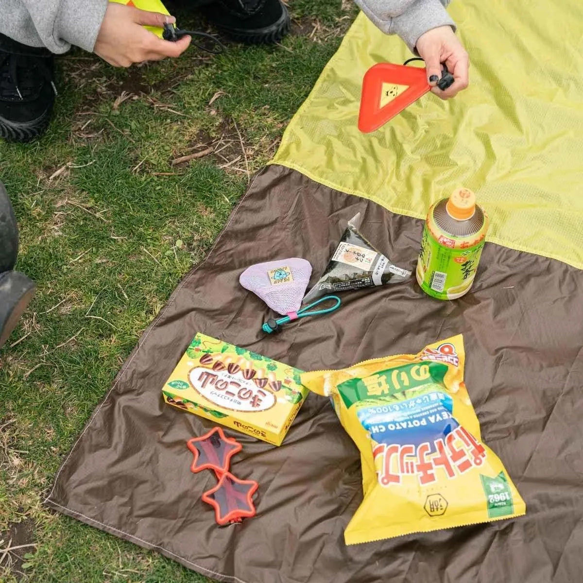 Super compact picnic sheet made of lightweight Airlight ripstop nylon. Fits two adult and stores easily in a stretchy onigiri-shaped pouch - the perfect, packable, picnic accessory! Essential kit for festivals or any impromtu rest stop on your travels.