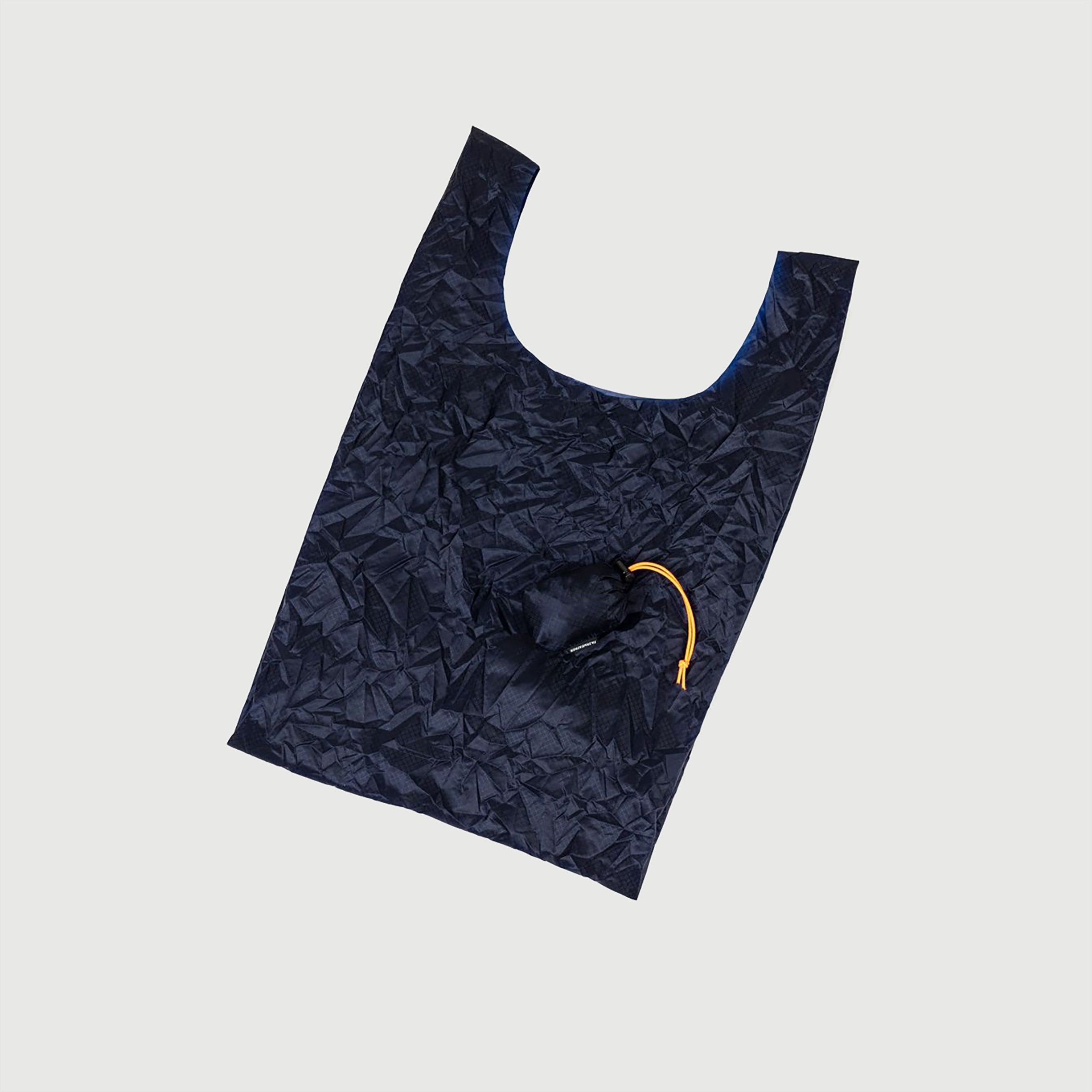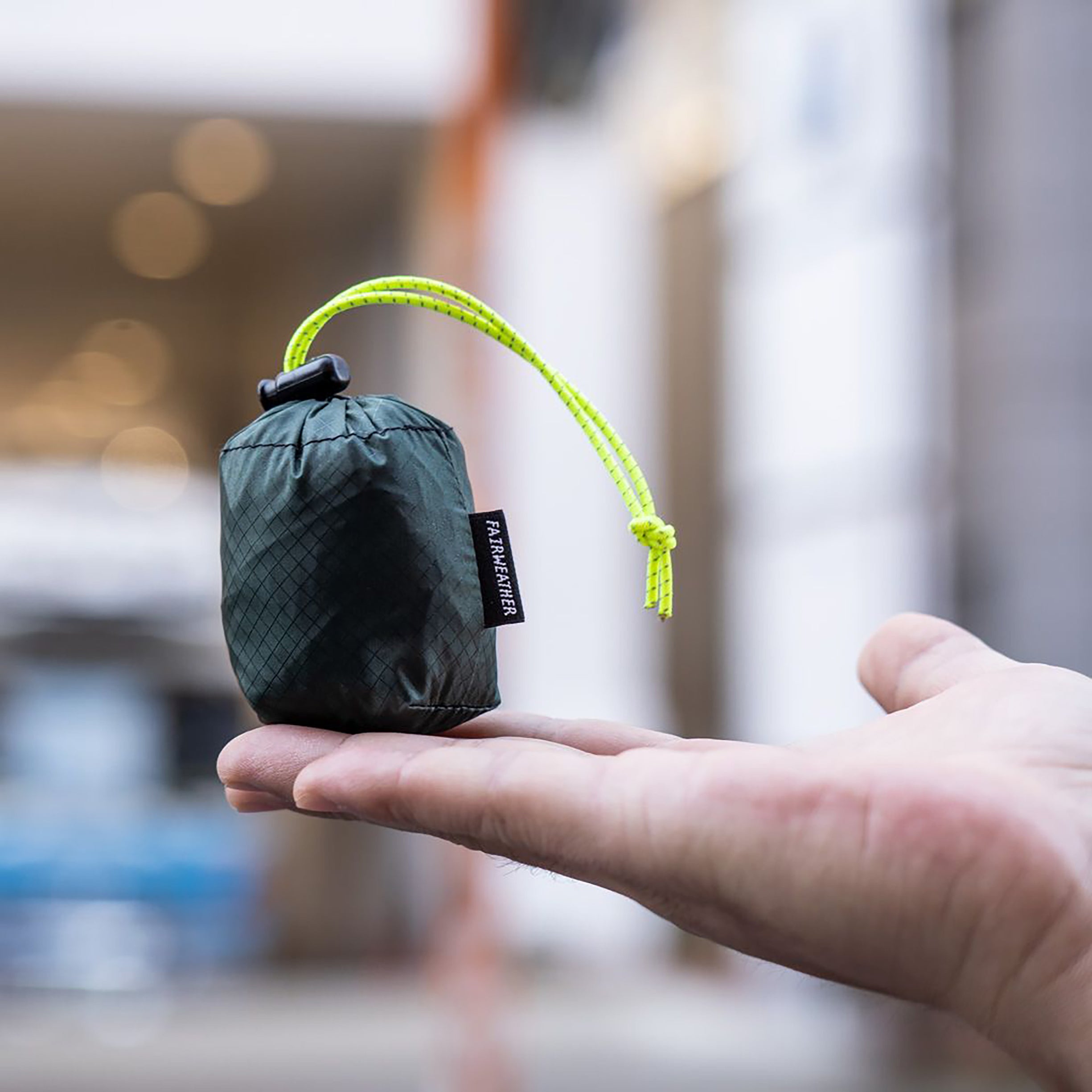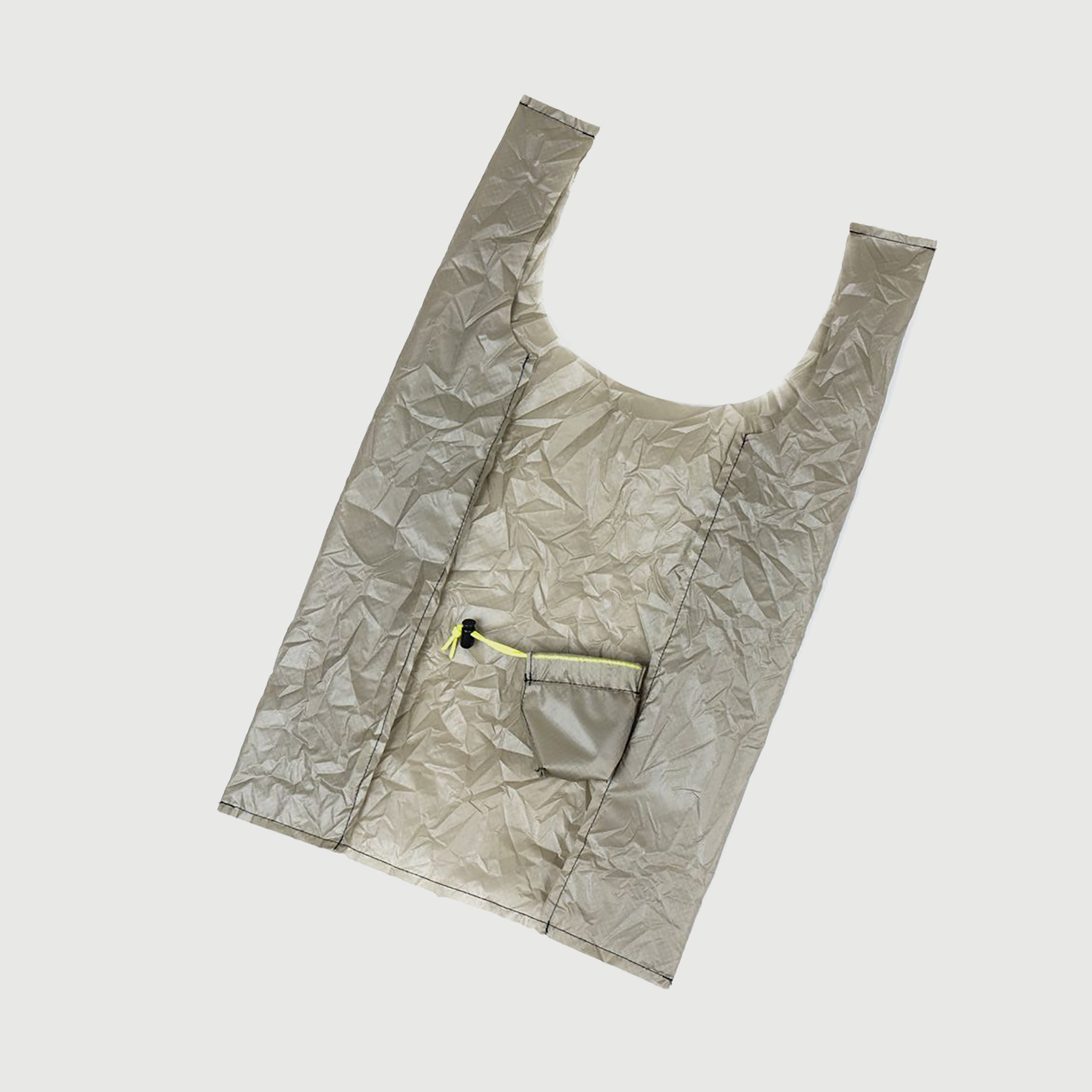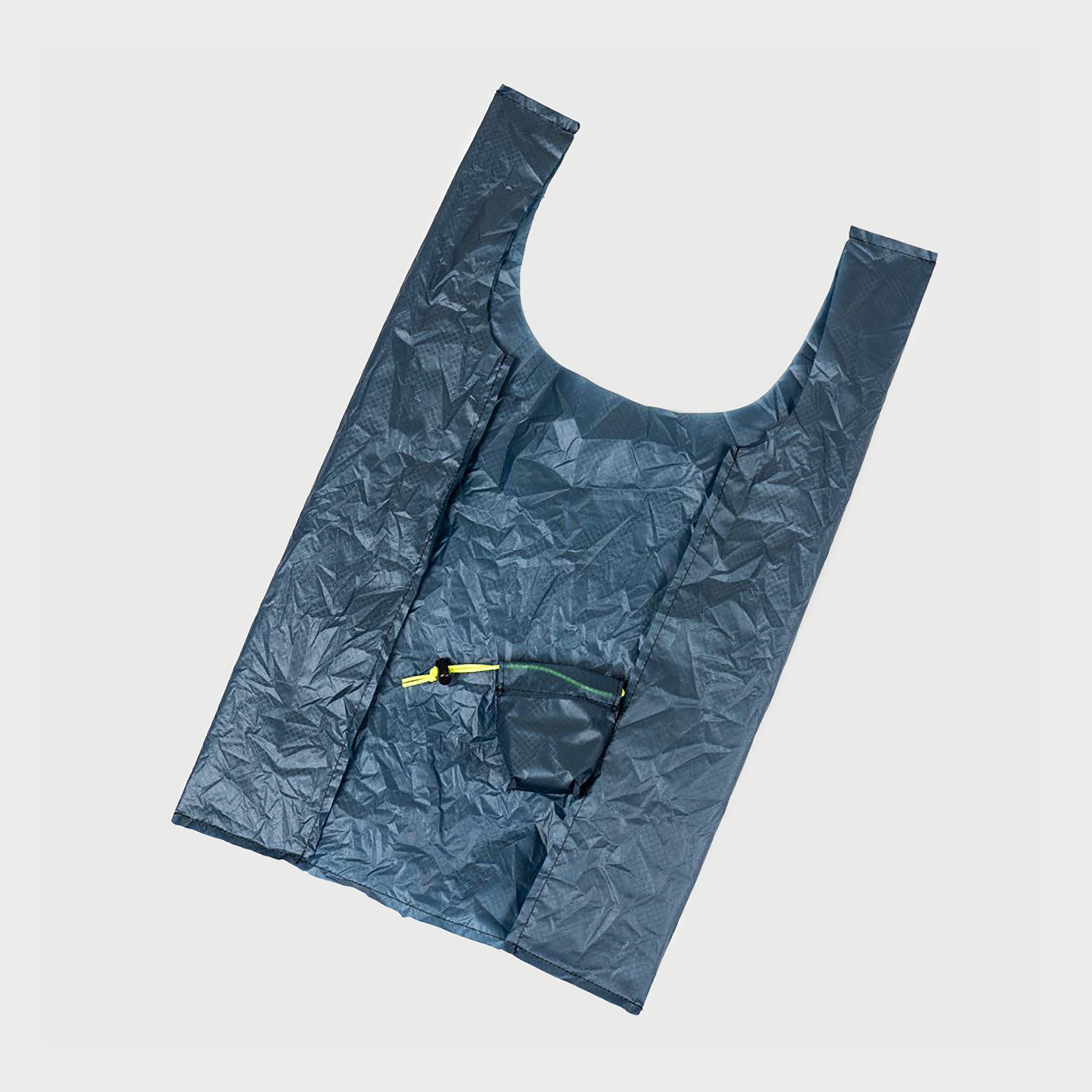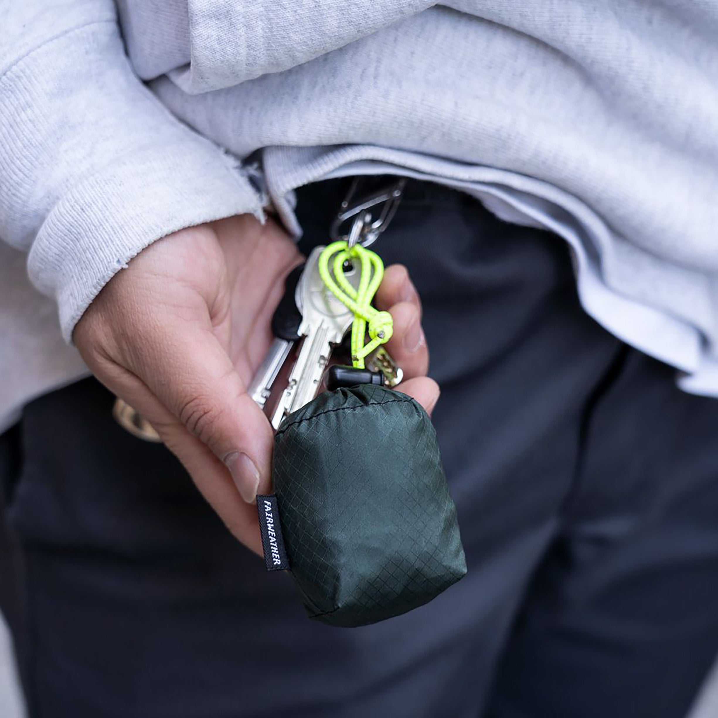 Ultra compact, packable bag, from Fairweather, Japan. So small and light it can fit on your keyring so you'll never again be grabbing groceries without a means to carry them home.